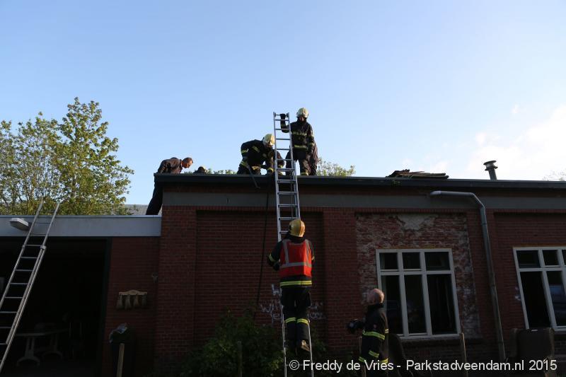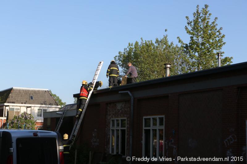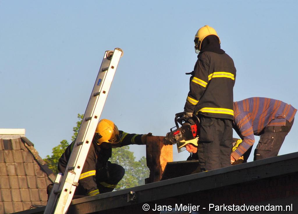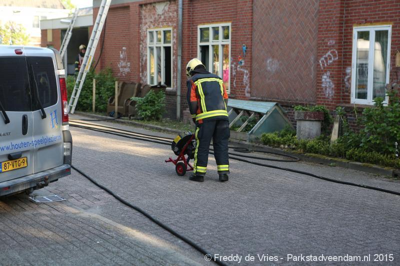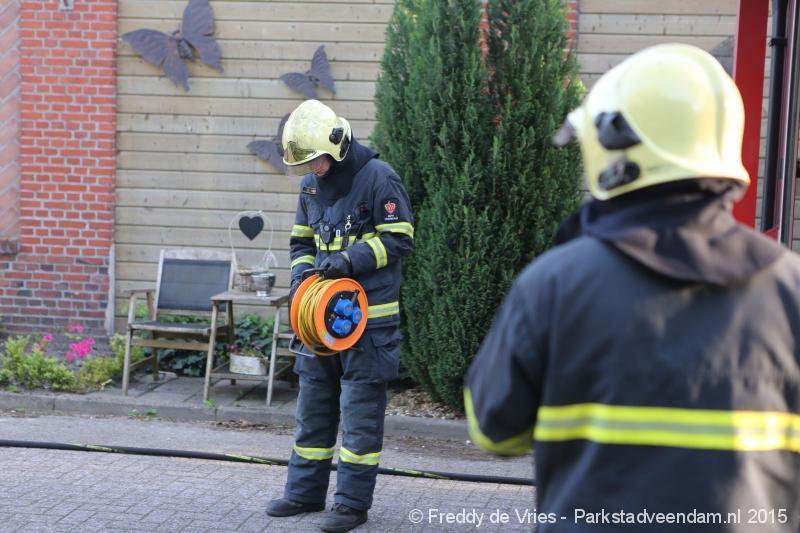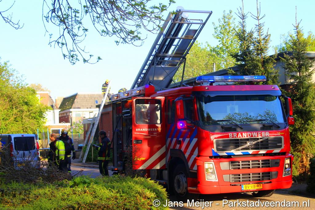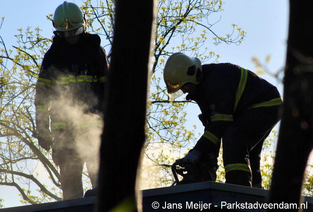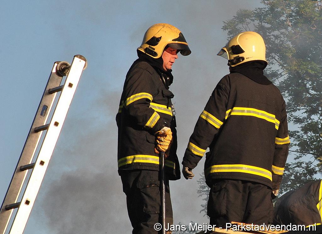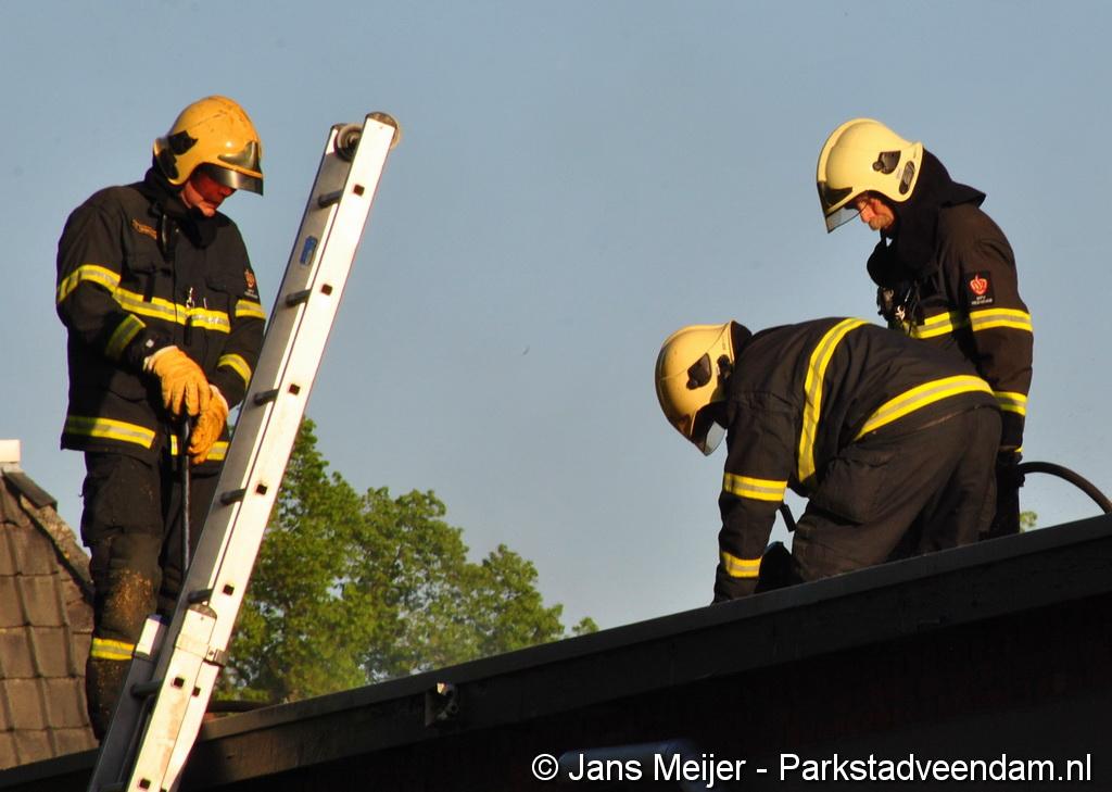 In Veendam zijn we brand meester. Rook is grotendeels achter woningen langs getrokken, we gaan verder kijken of er sprake is van asbest.