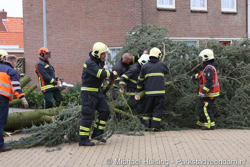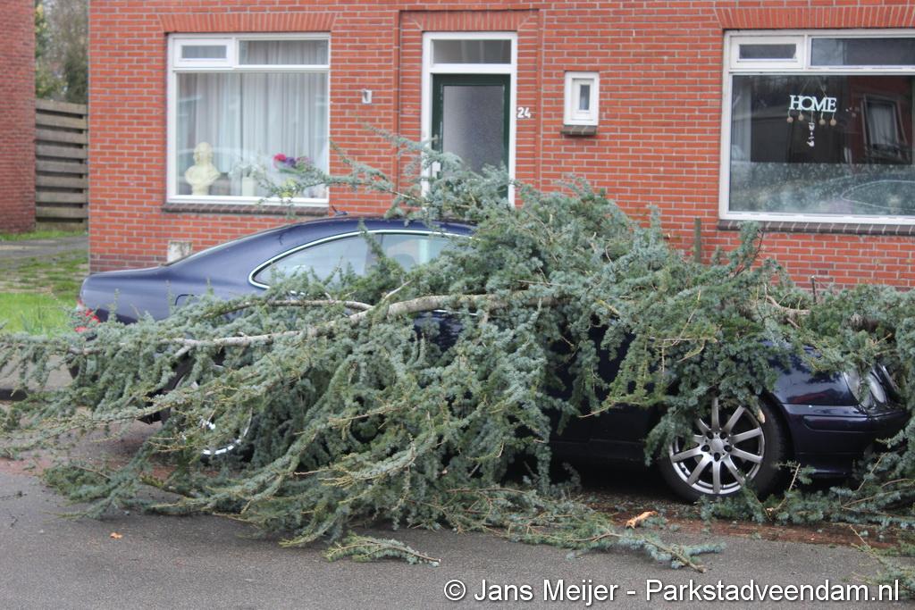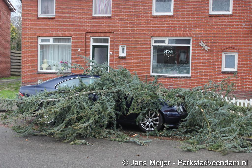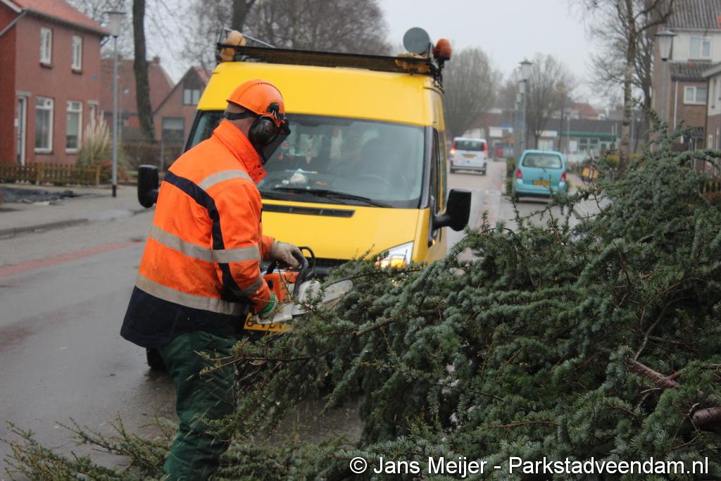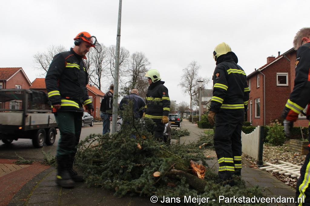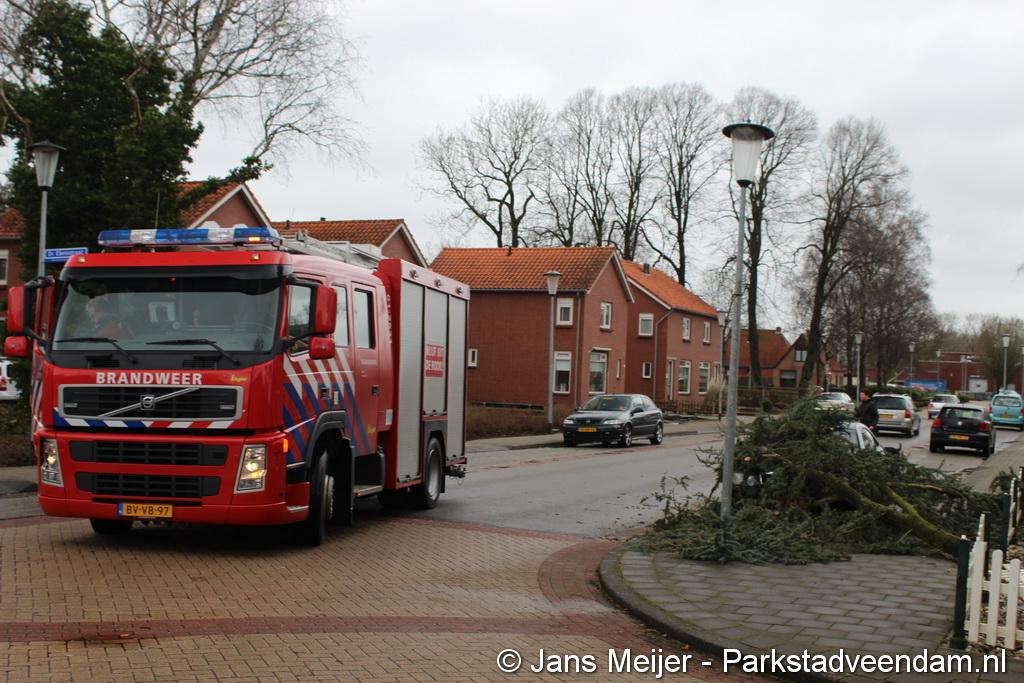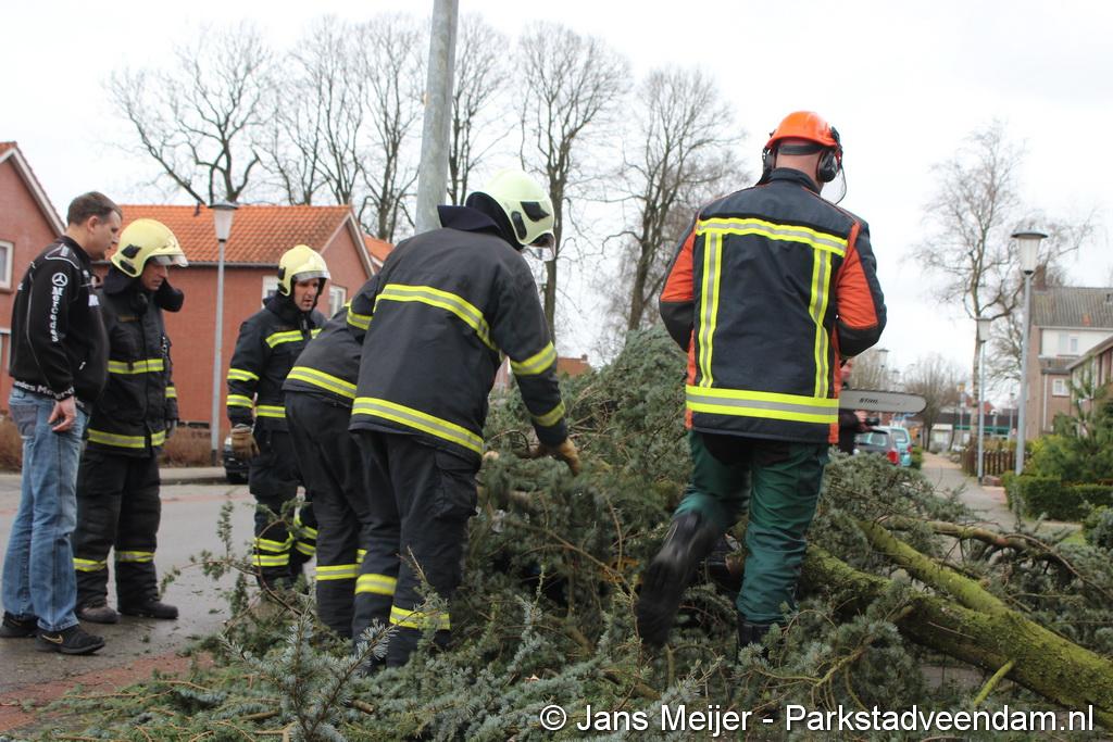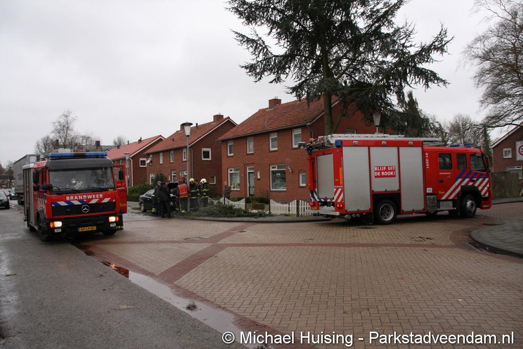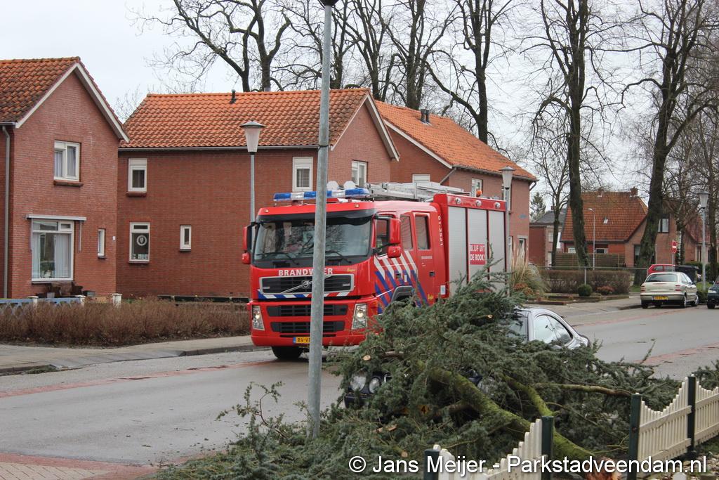 STORM - Brandweer Veendam is dinsdagmiddag nog twee keer opgeroepen voor stormschade. De eerste was een grote naaldboom naast een woning aan het Skagerrak. Deze boom was langs de woning gevallen en had nog net een paar hoekpannen meegenomen. Omdat de boom naast de woning lag en geen doorgaande paden of wegen versperde en er geen verder gevaar was is de brandweer onverrichter zake retour gegaan.