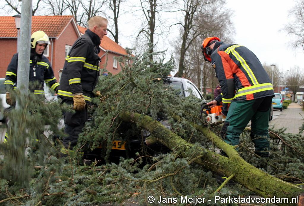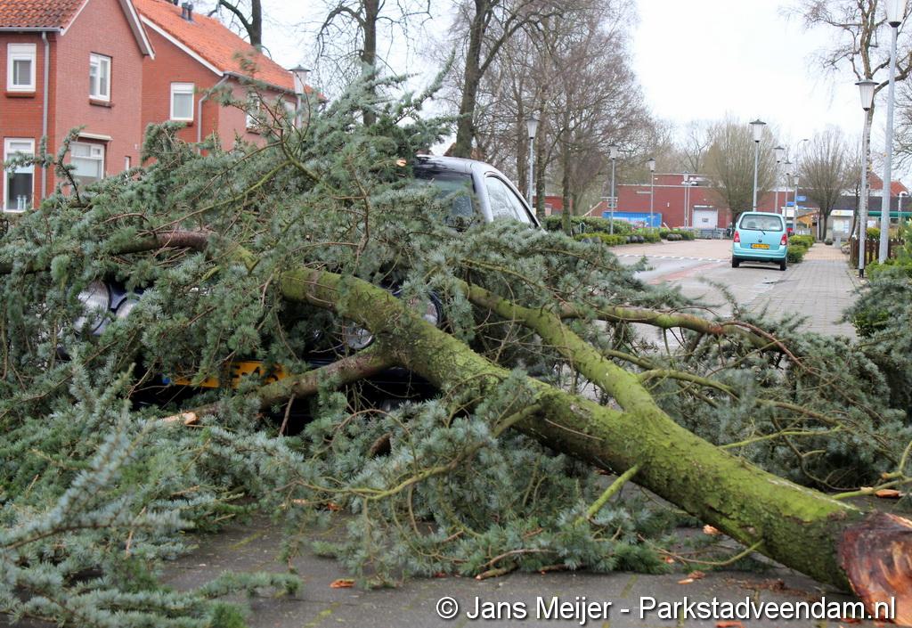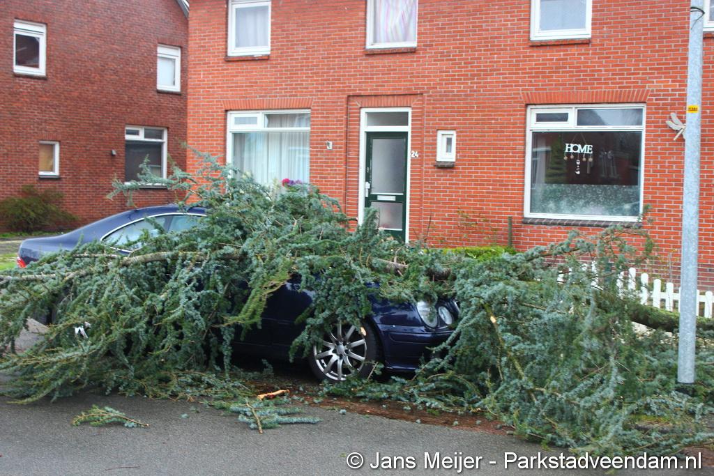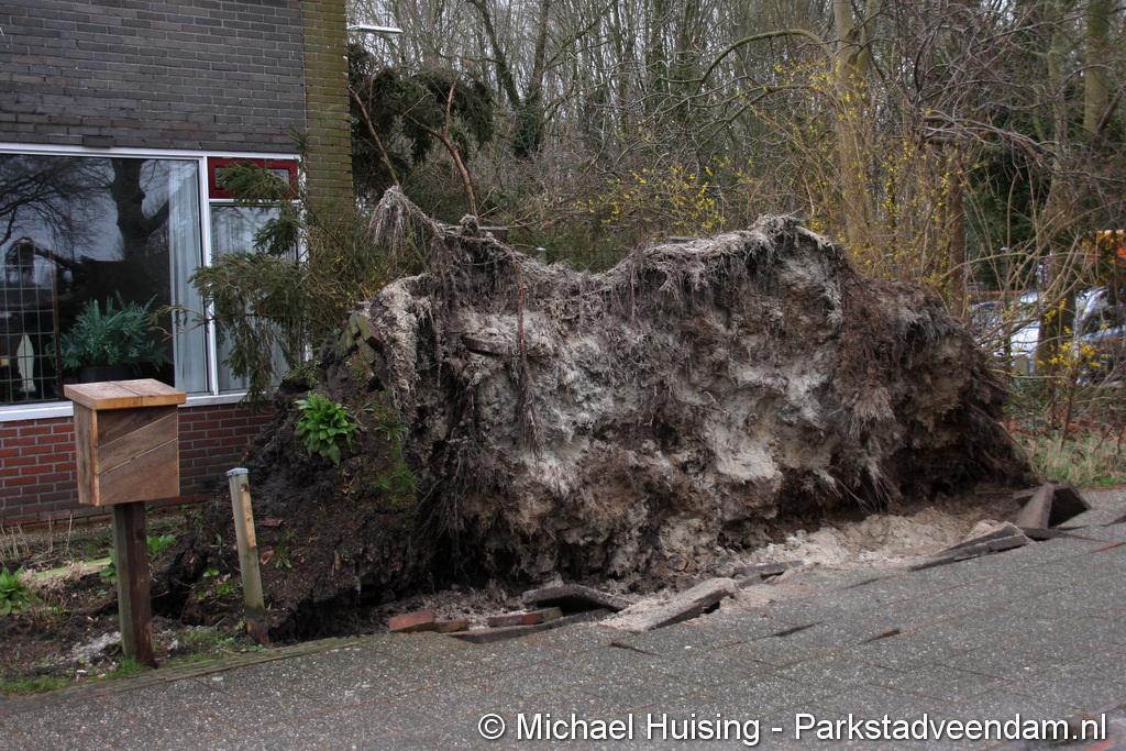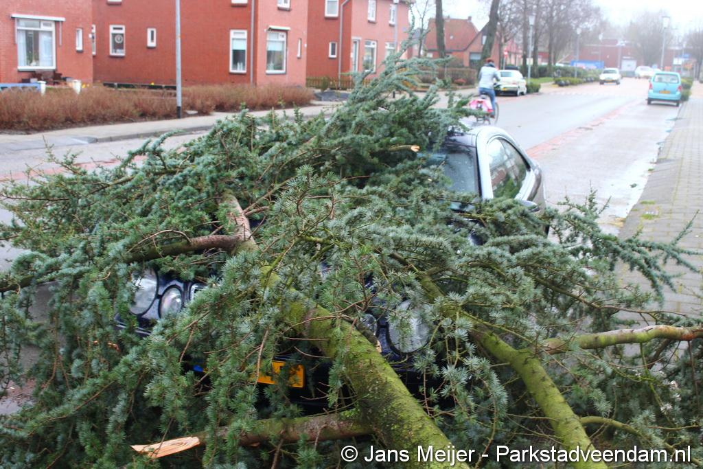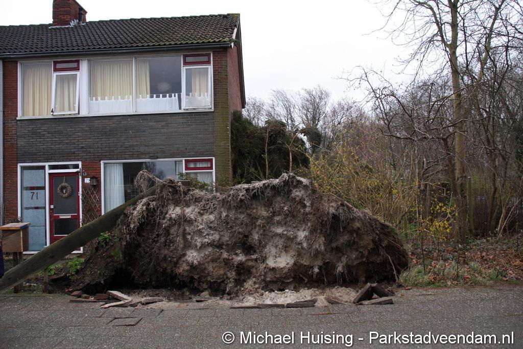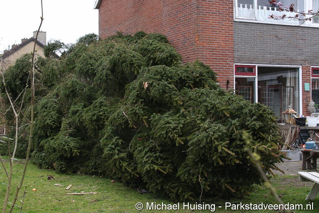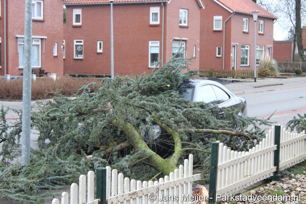 STORM - Brandweer Veendam is dinsdagmiddag nog twee keer opgeroepen voor stormschade. De eerste was een grote naaldboom naast een woning aan het Skagerrak. Deze boom was langs de woning gevallen en had nog net een paar hoekpannen meegenomen. Omdat de boom naast de woning lag en geen doorgaande paden of wegen versperde en er geen verder gevaar was is de brandweer onverrichter zake retour gegaan.