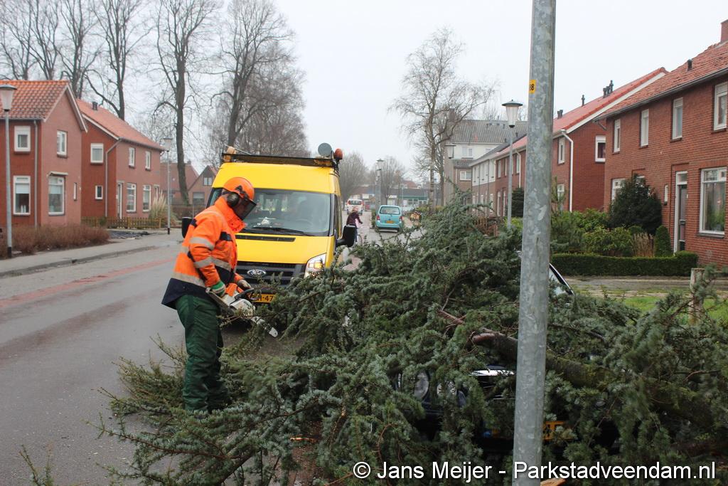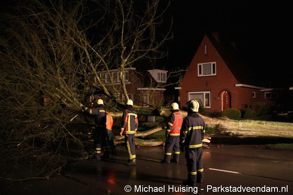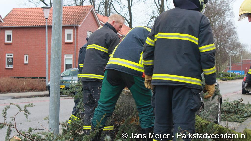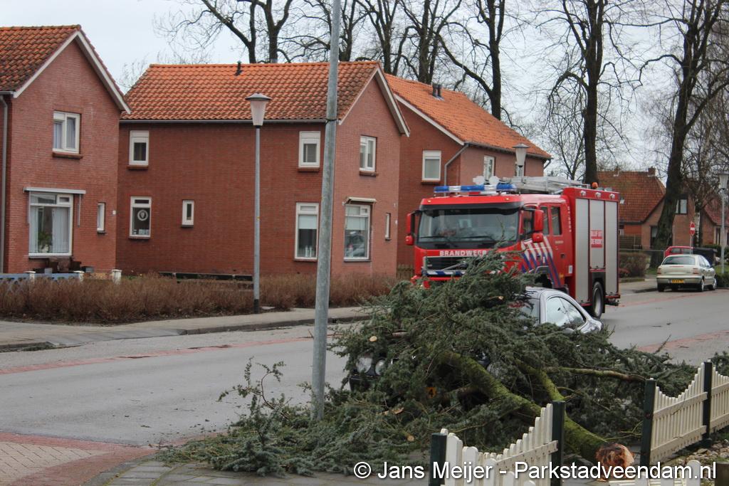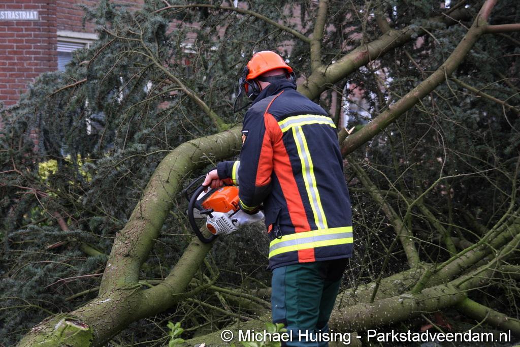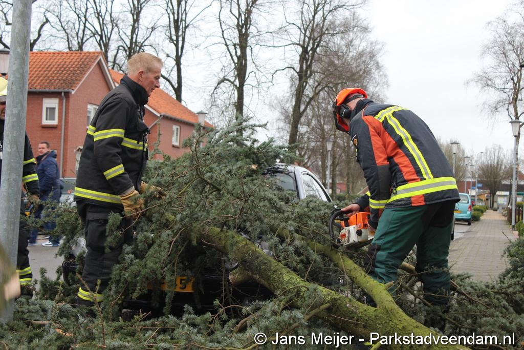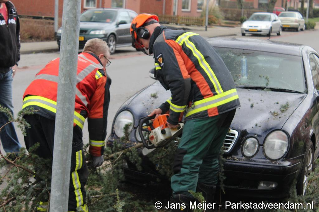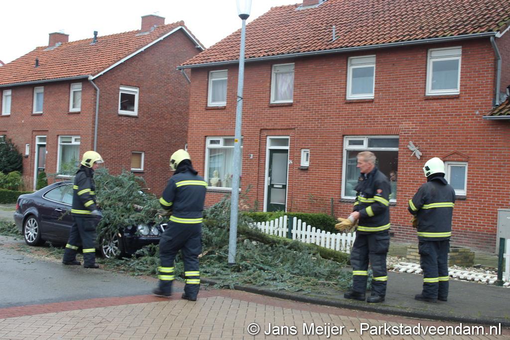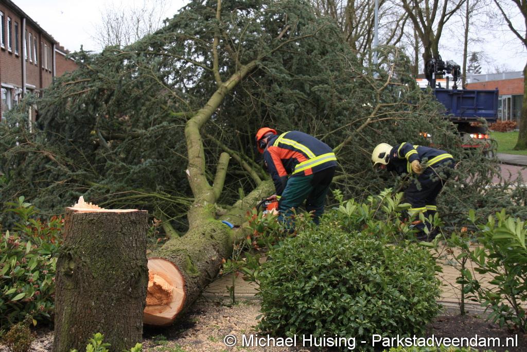 STORM - Brandweer Veendam is dinsdagmiddag nog twee keer opgeroepen voor stormschade. De eerste was een grote naaldboom naast een woning aan het Skagerrak. Deze boom was langs de woning gevallen en had nog net een paar hoekpannen meegenomen. Omdat de boom naast de woning lag en geen doorgaande paden of wegen versperde en er geen verder gevaar was is de brandweer onverrichter zake retour gegaan.
