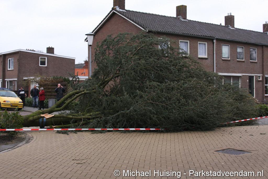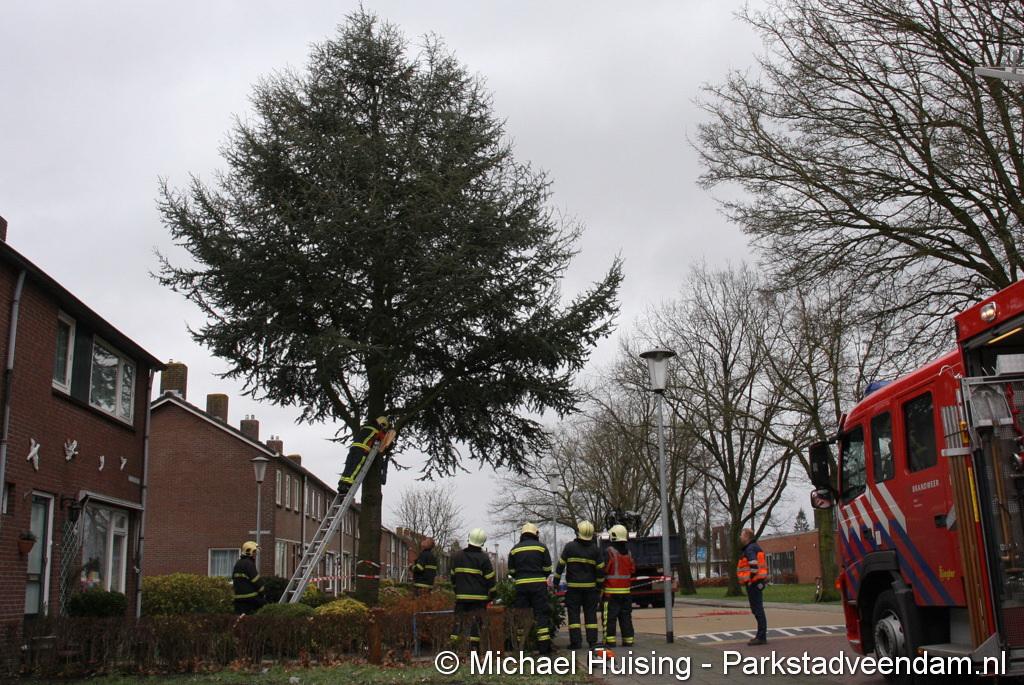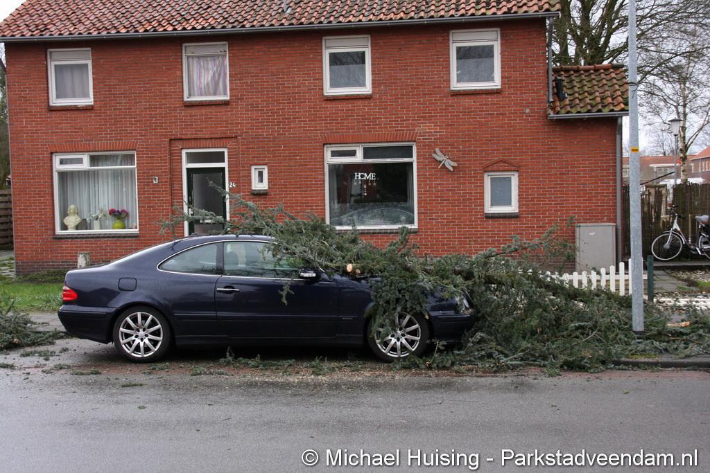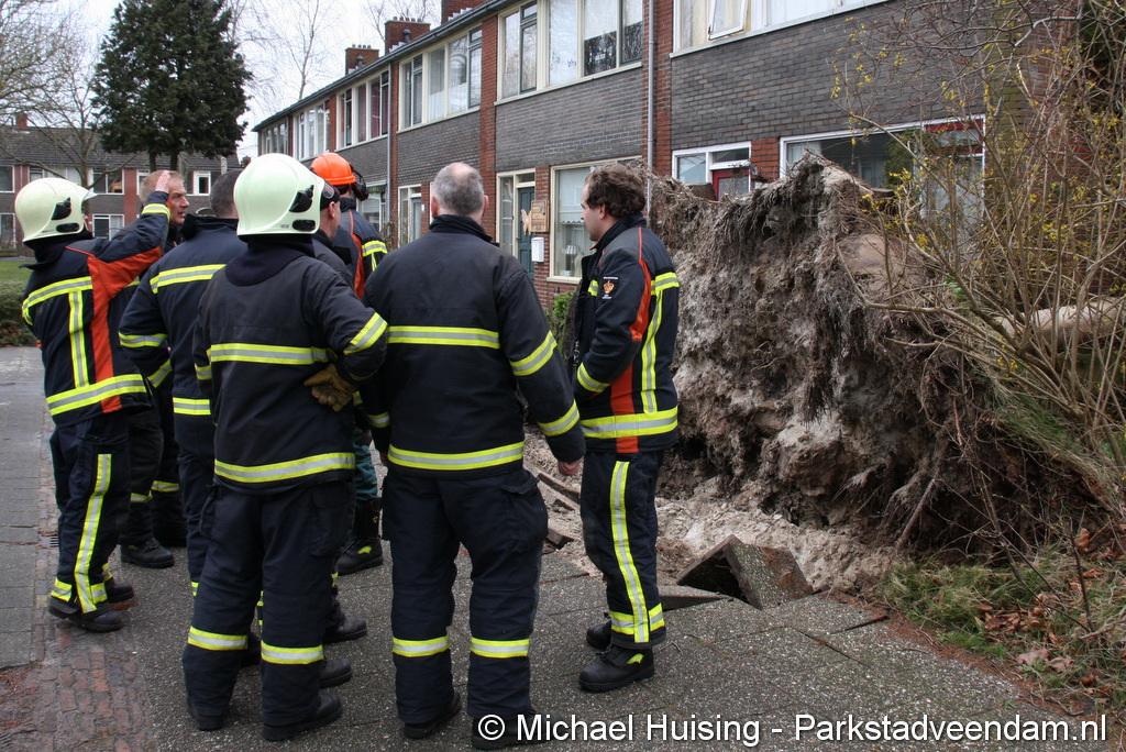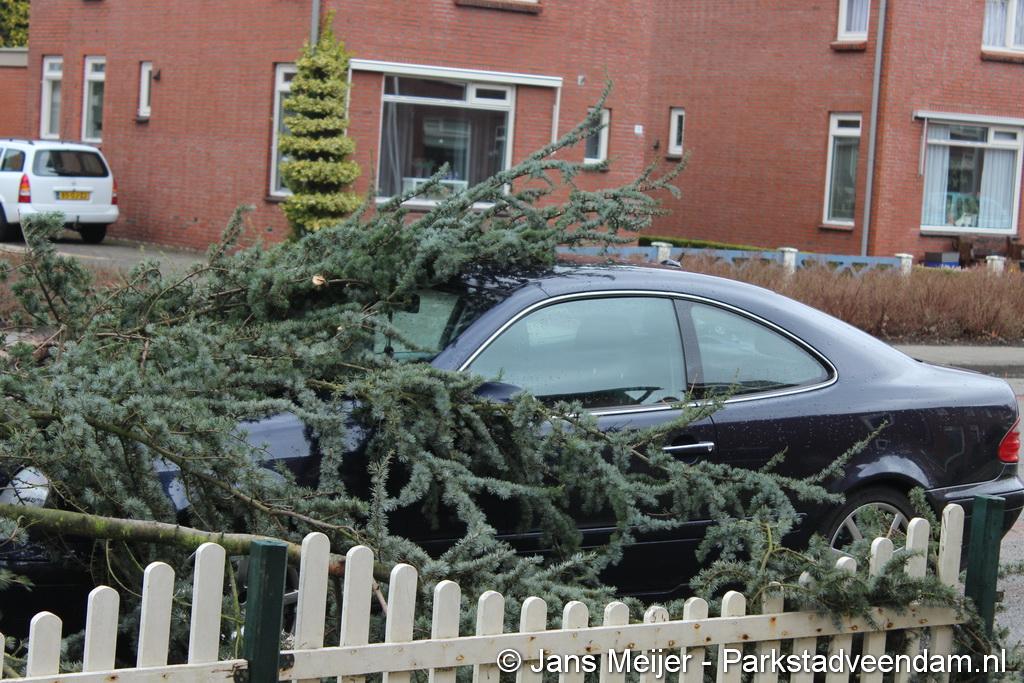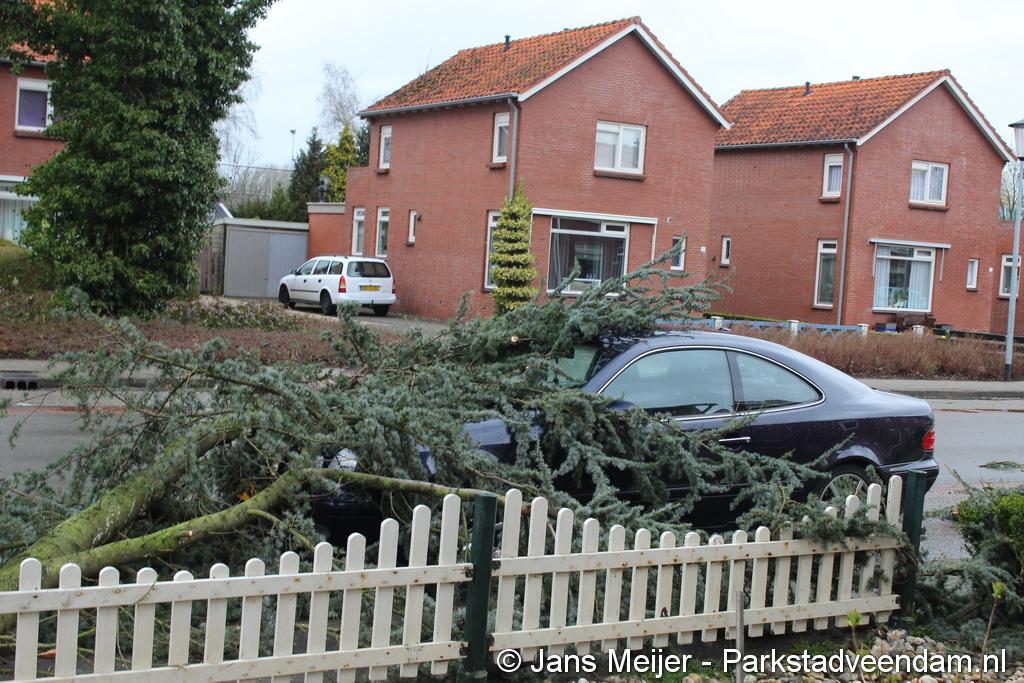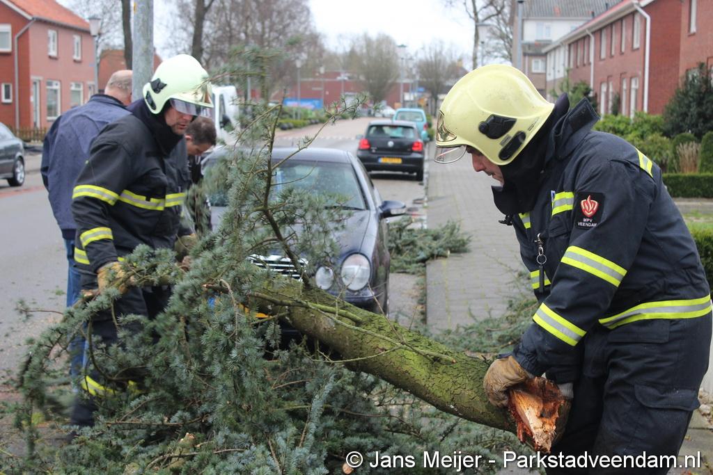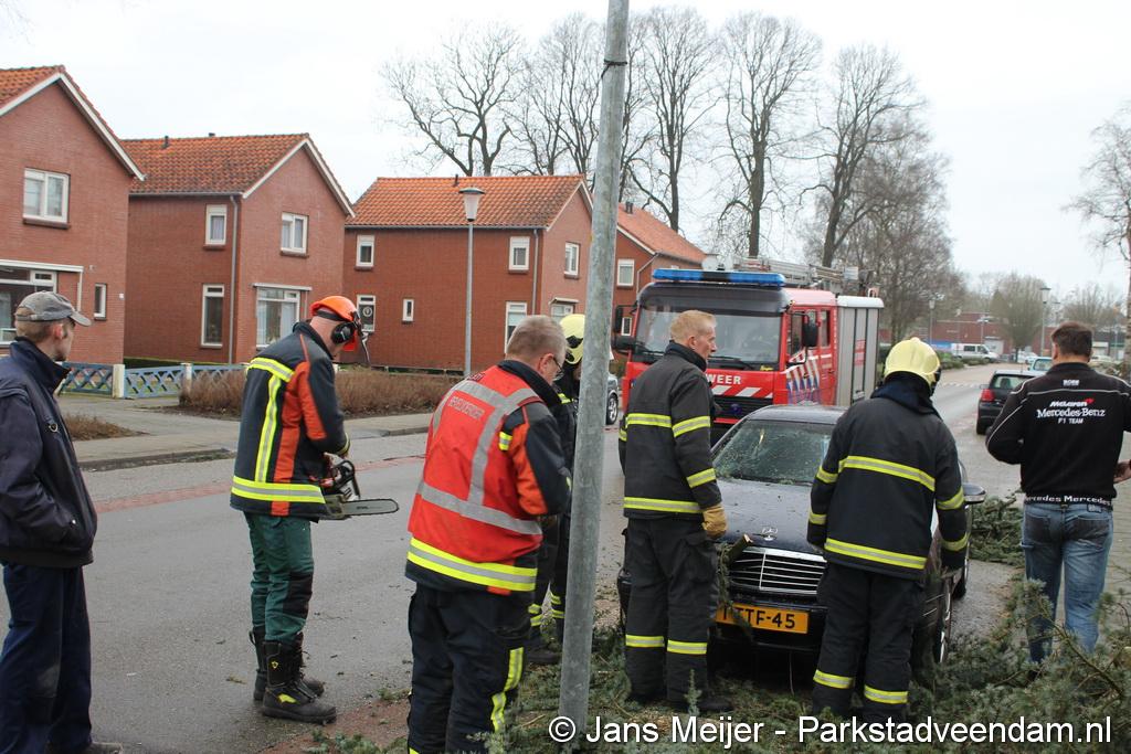 STORM - Brandweer Veendam is dinsdagmiddag nog twee keer opgeroepen voor stormschade. De eerste was een grote naaldboom naast een woning aan het Skagerrak. Deze boom was langs de woning gevallen en had nog net een paar hoekpannen meegenomen. Omdat de boom naast de woning lag en geen doorgaande paden of wegen versperde en er geen verder gevaar was is de brandweer onverrichter zake retour gegaan.