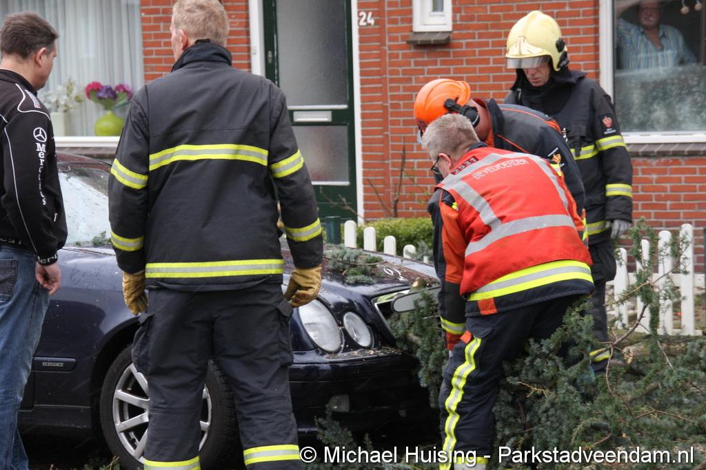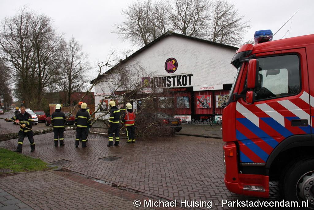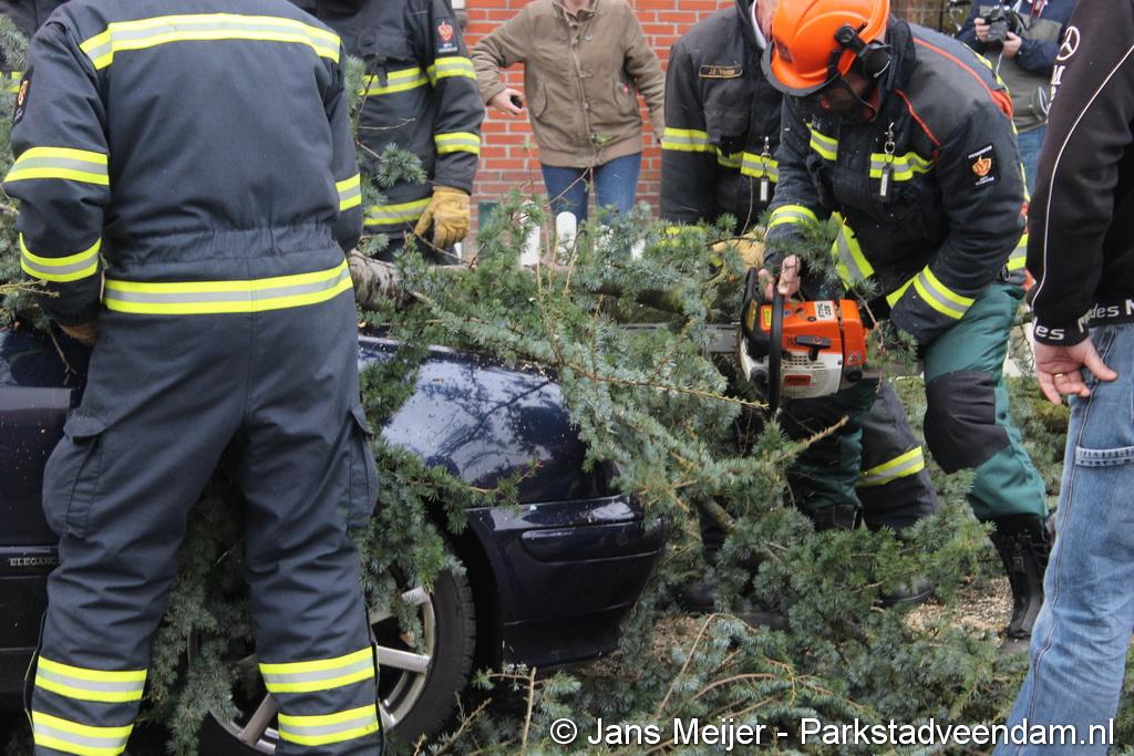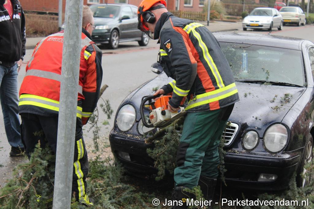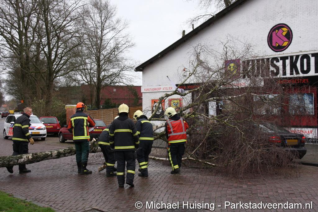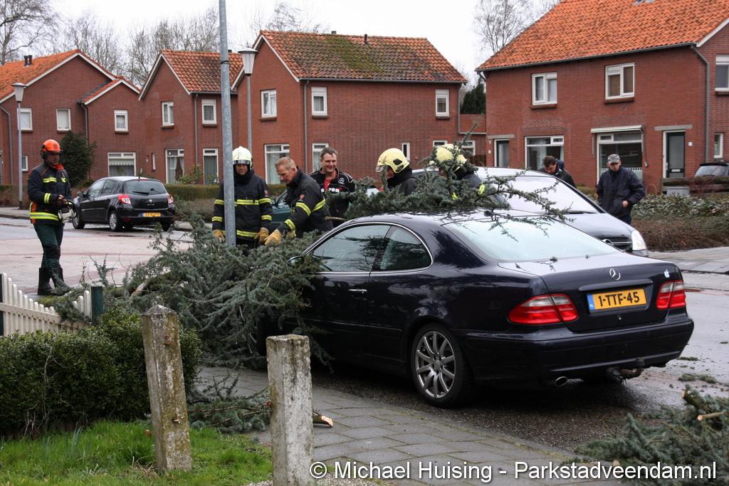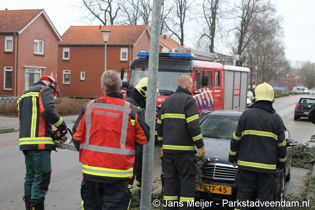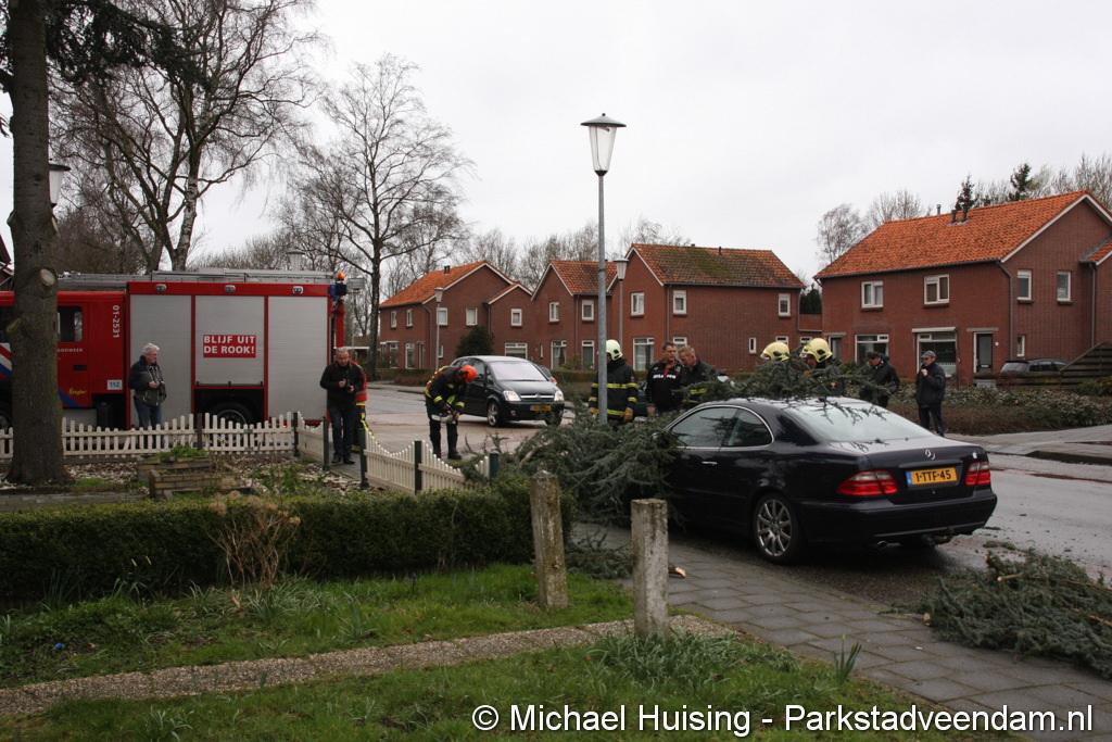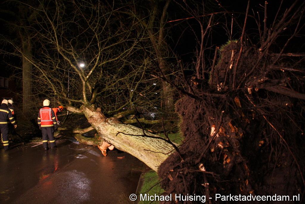 STORM - Brandweer Veendam is dinsdagmiddag nog twee keer opgeroepen voor stormschade. De eerste was een grote naaldboom naast een woning aan het Skagerrak. Deze boom was langs de woning gevallen en had nog net een paar hoekpannen meegenomen. Omdat de boom naast de woning lag en geen doorgaande paden of wegen versperde en er geen verder gevaar was is de brandweer onverrichter zake retour gegaan.