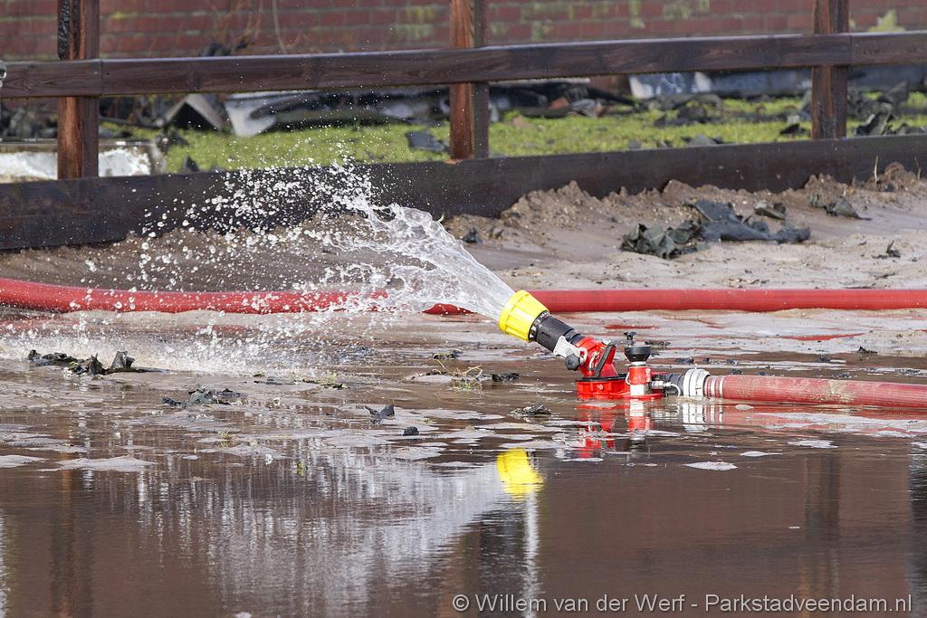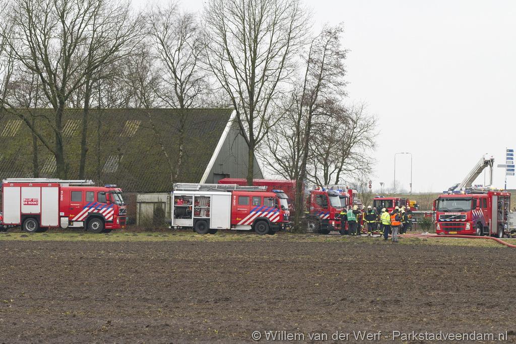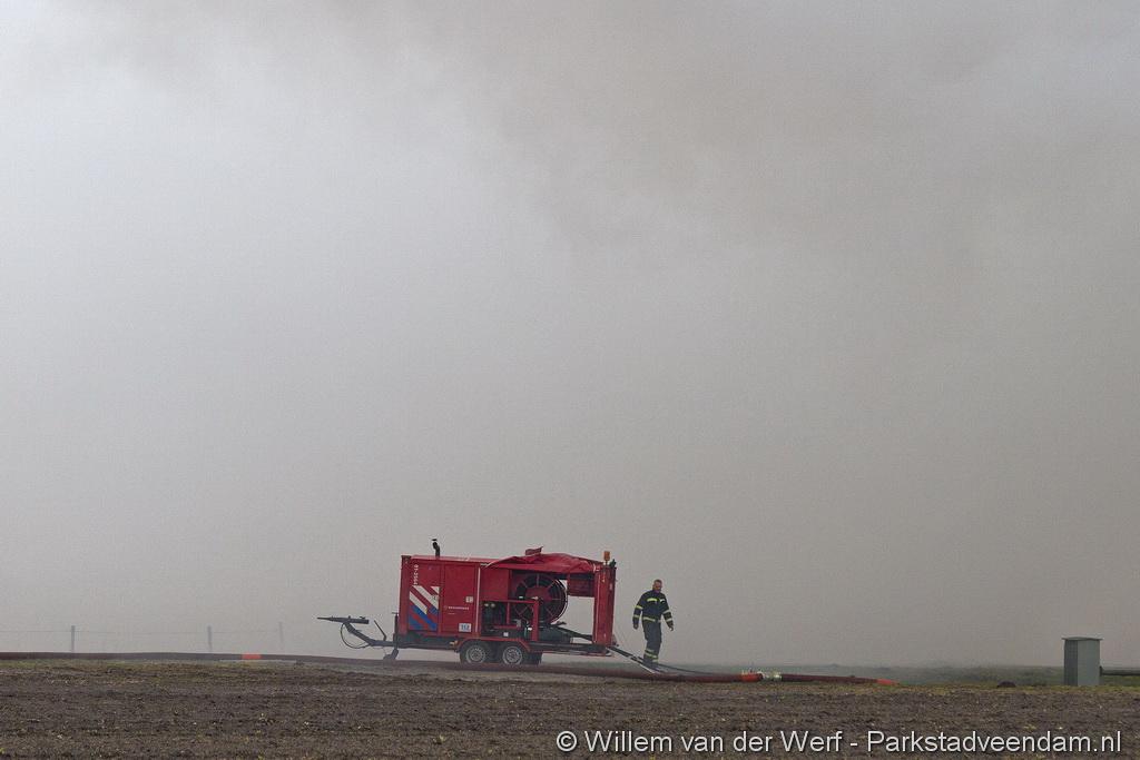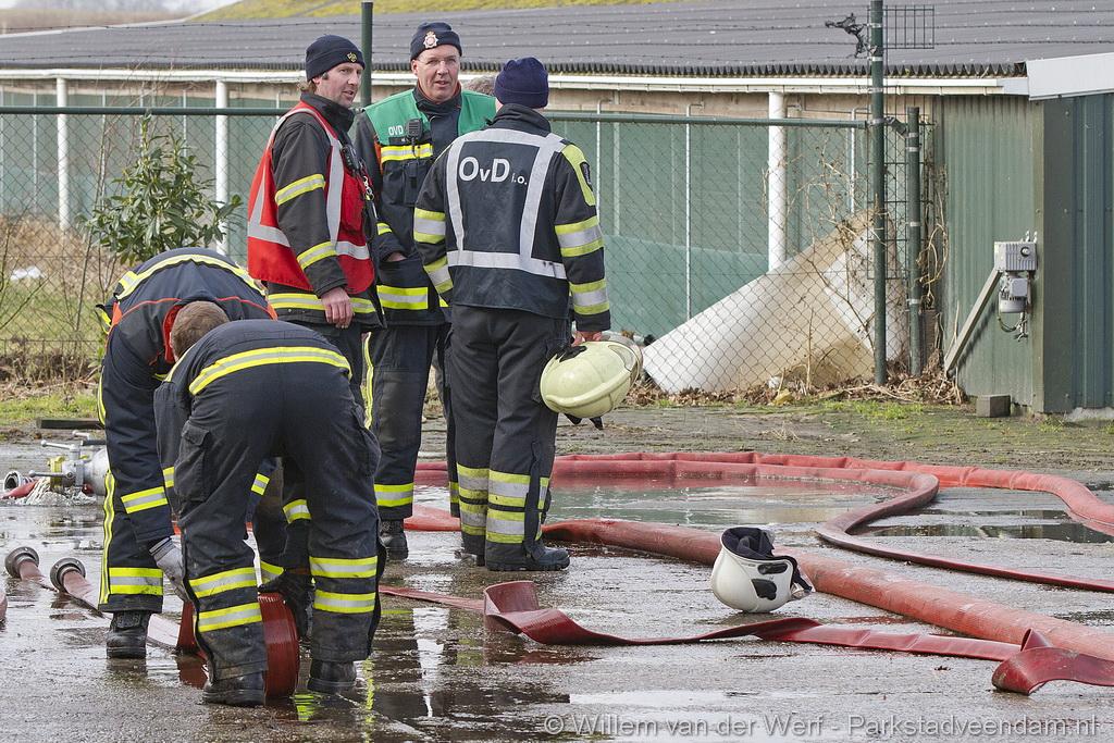 Gezien het tekort aan bluswater is besloten om een dompelpomp vanuit Veendam te laten komen. Deze unit heeft voor voldoende water gezorgd om de loods te blussen.