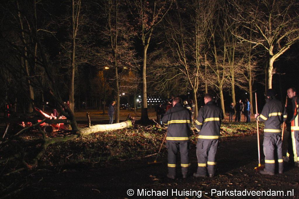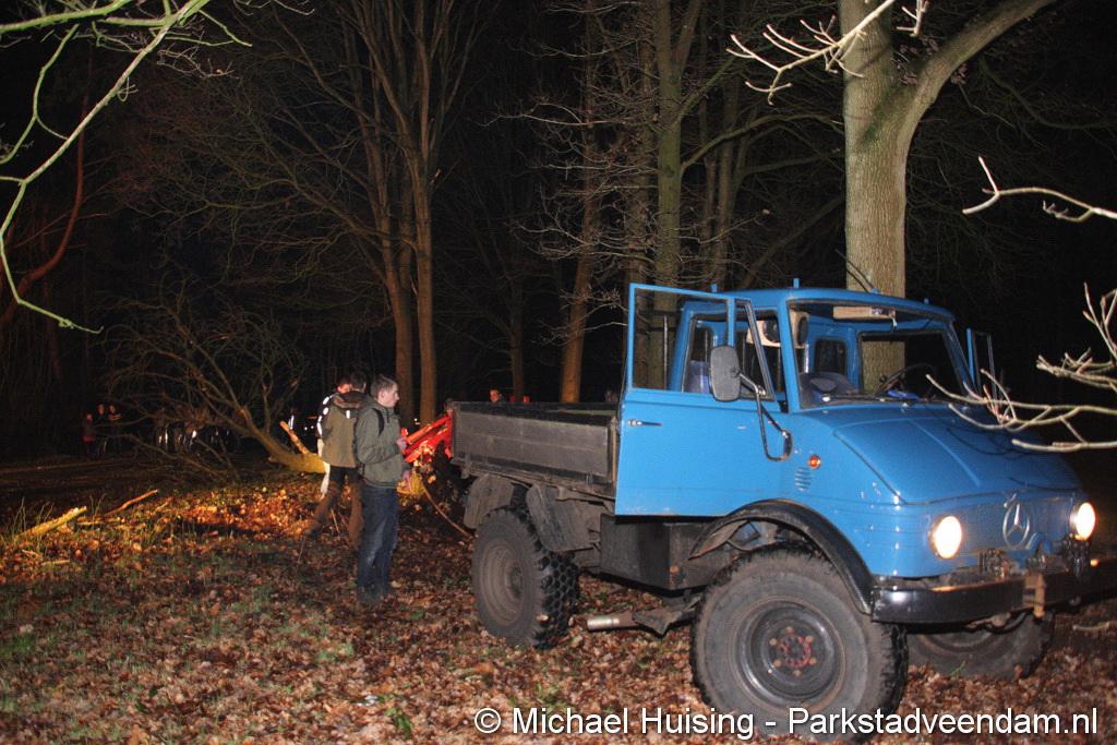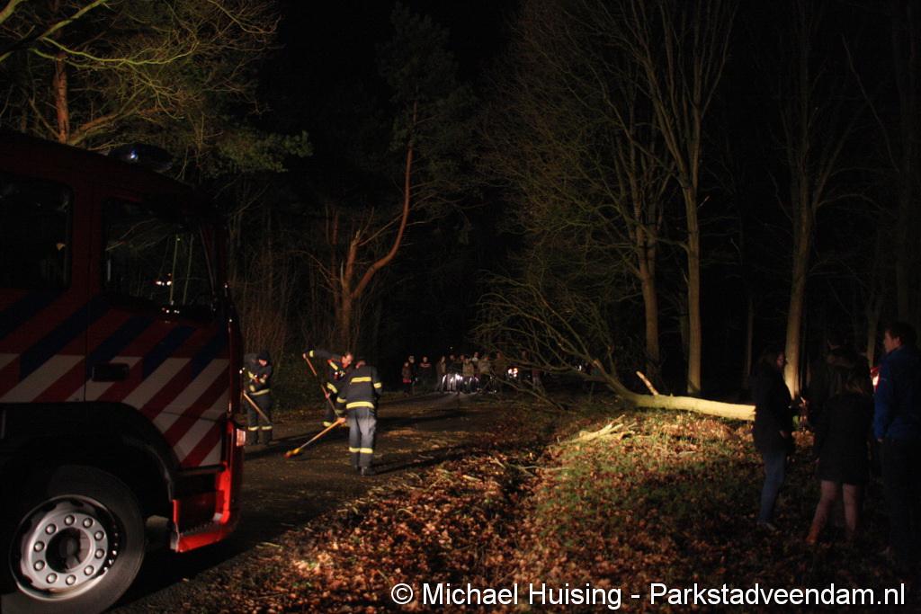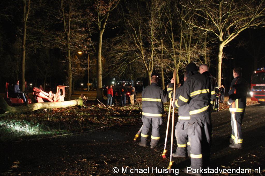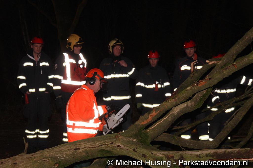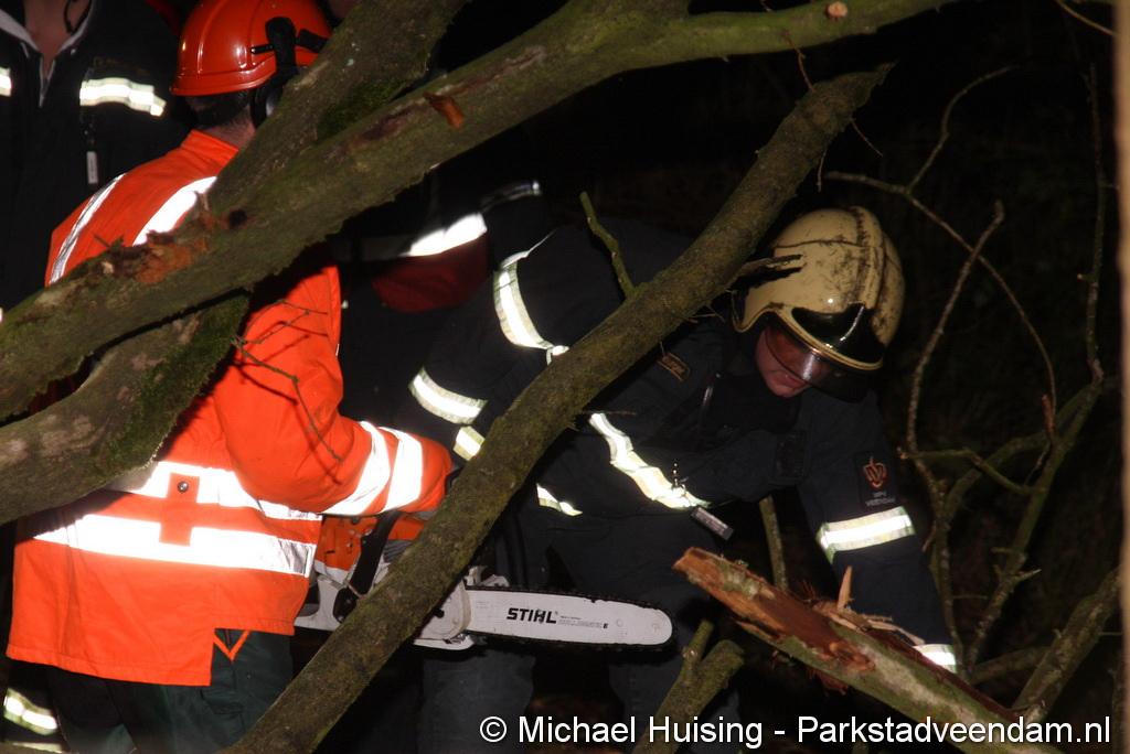 BORGERSWOLD - Zaterdagavond is een boom in Borgerswold over de Woldlaan gevallen. Auto’s konden niet meer van en naar het scoutinggebouw rijden, waardoor zowaar een kleine file in het Borgerswold ontstond. De brandweer werd rond 20.45 uur opgeroepen om de weg weer vrij te maken. In afwachting van de brandweer waren leden van de scouting al begonnen met het verwijderen van de boom. Ondanks zwaar geschut wilde dit niet helemaal lukken. waardoor de brandweer alsnog de kettingzaag ter hand moest nemen. Na een half uurtje was de weg weer vrij. Vermoedelijk is de boom door rotheid en de wind van de afgelopen dagen omgevallen.