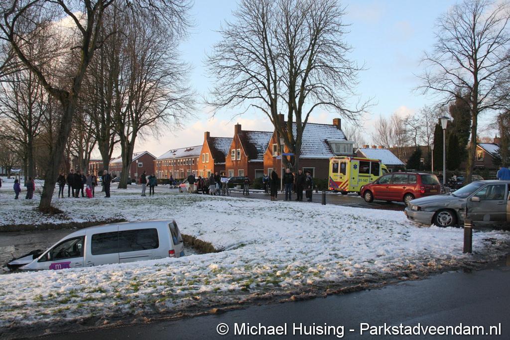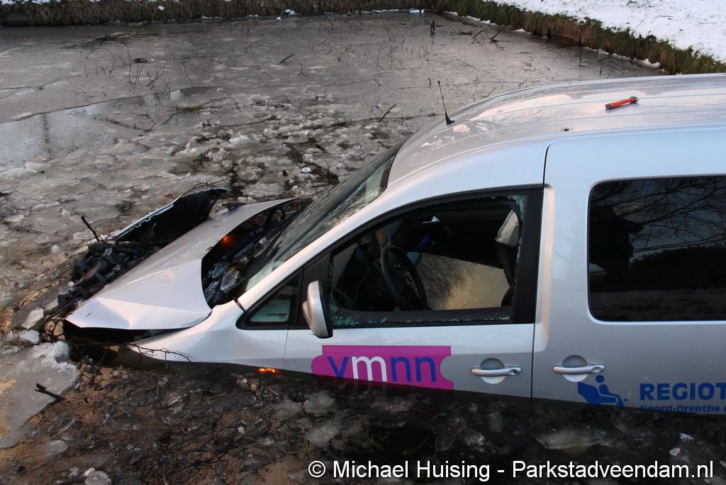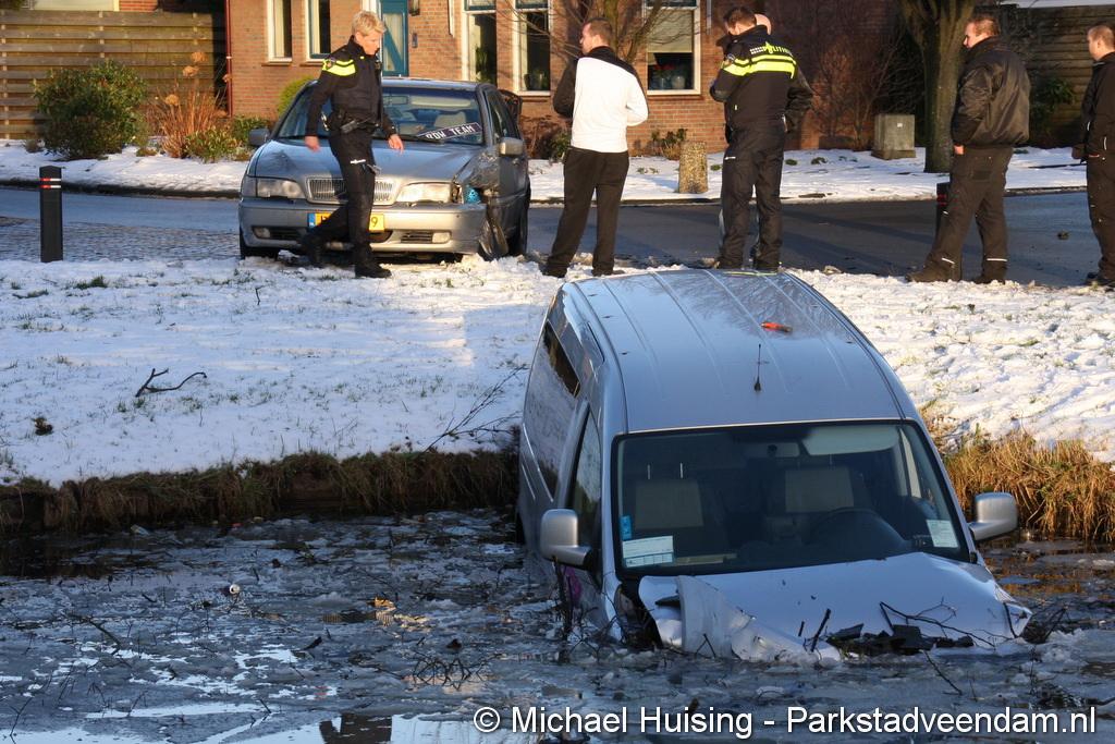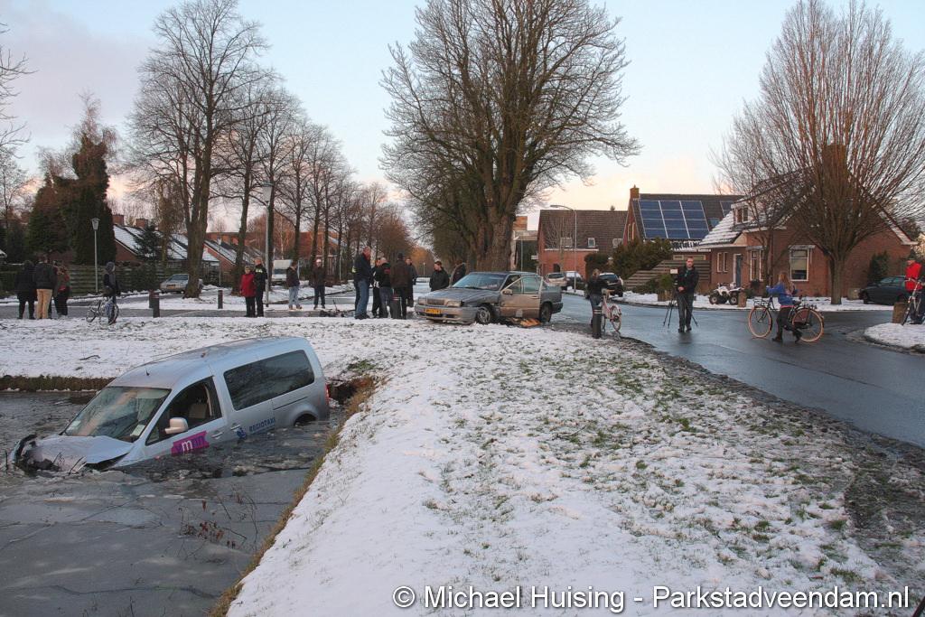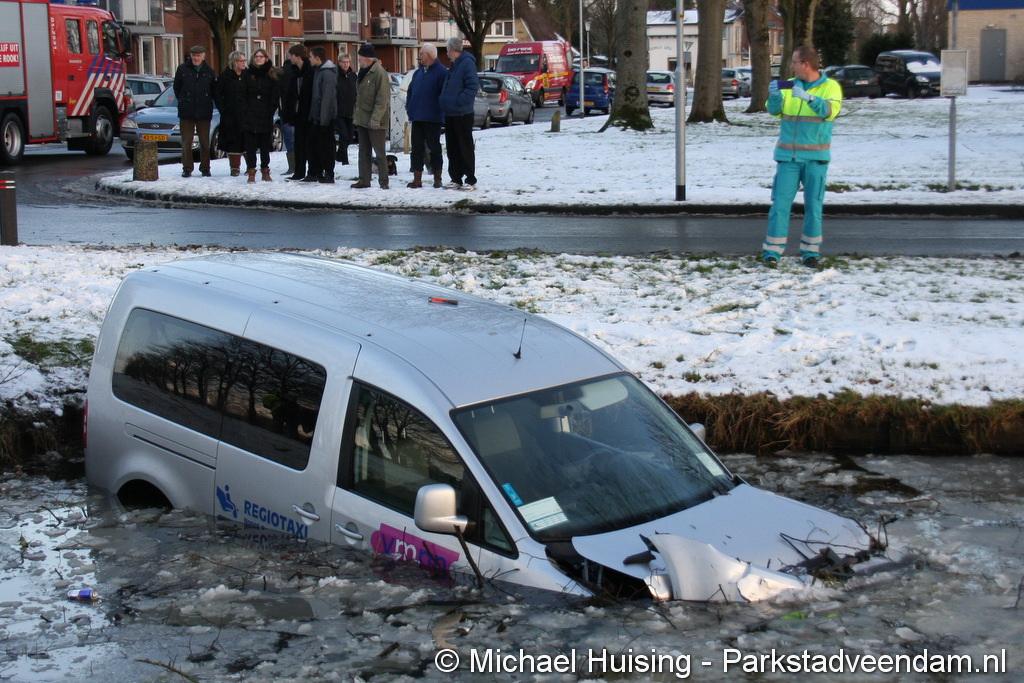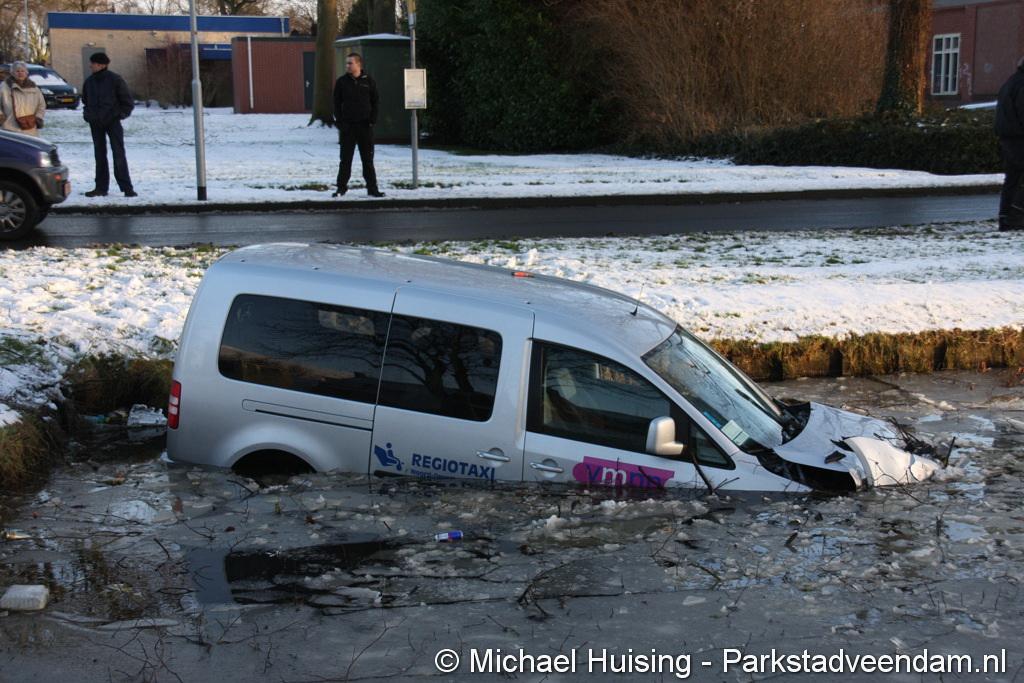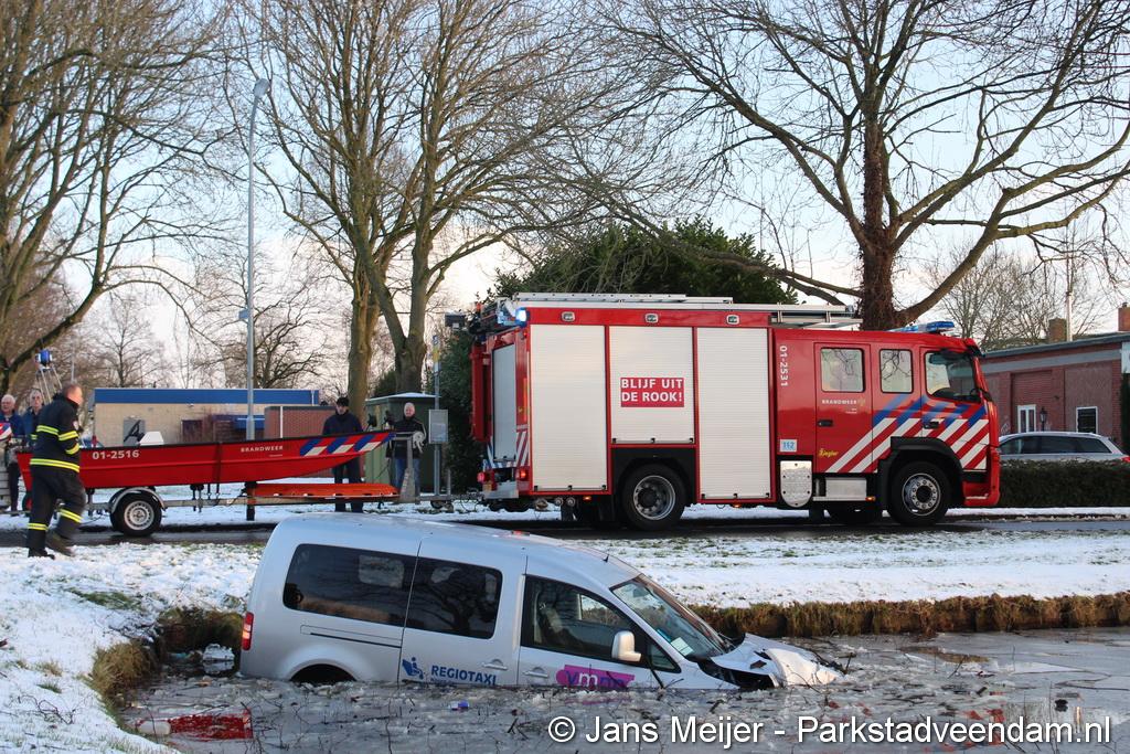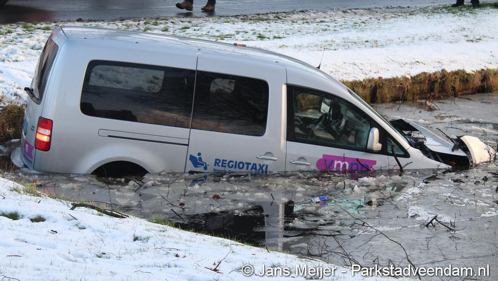 WILDERVANK - Bij een aanrijding op de kruising Van Delftstraat met de Mercuriuslaan is zaterdagmiddag een auto in het water beland. Vermoedelijk door een voorrangsfout kwamen twee auto’s met elkaar in botsing, waarna een auto van een taxibedrijf  in het water terecht kwam. De bestuurder van de taxi, is met hulp van de inzittenden van het ander betrokken voertuig, zelf uit de auto gekomen.