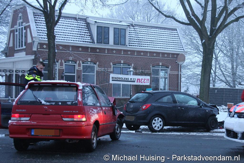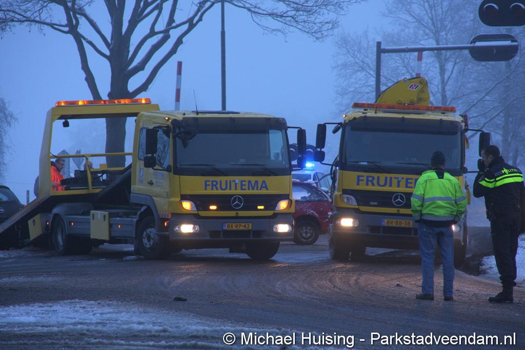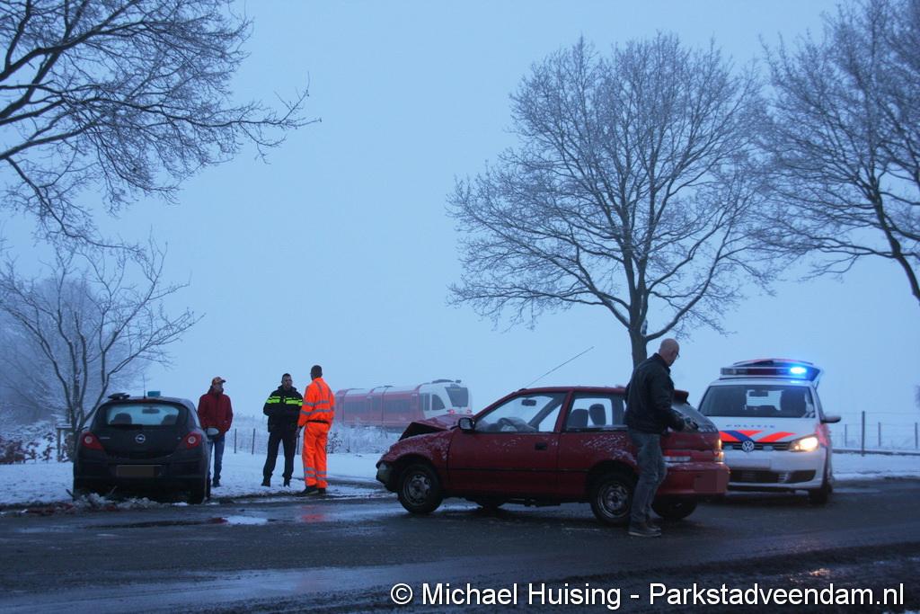EGYPTENEINDE – Vrijdagmorgen is een auto in de slip geraakt in de bocht van de t-splitsing Egypteneinde / Oosterweg ter hoogte van de spoorwegovergang. Hierdoor ramde de bestuurder een tegenligger. Beide bestuurders kwamen met de schrik vrij. De auto van de tegenligger is zwaar beschadigd.