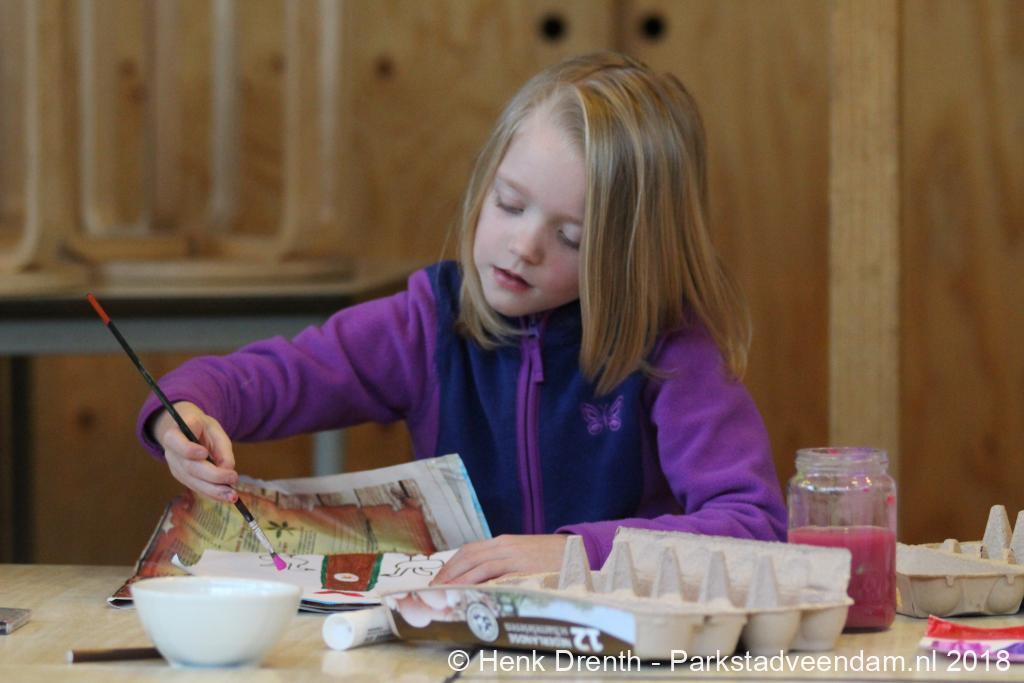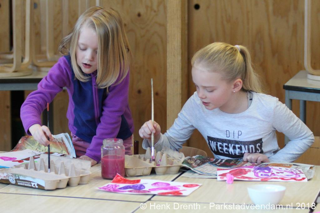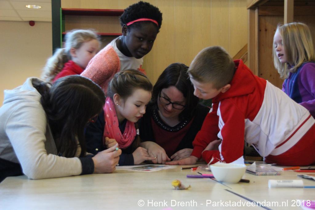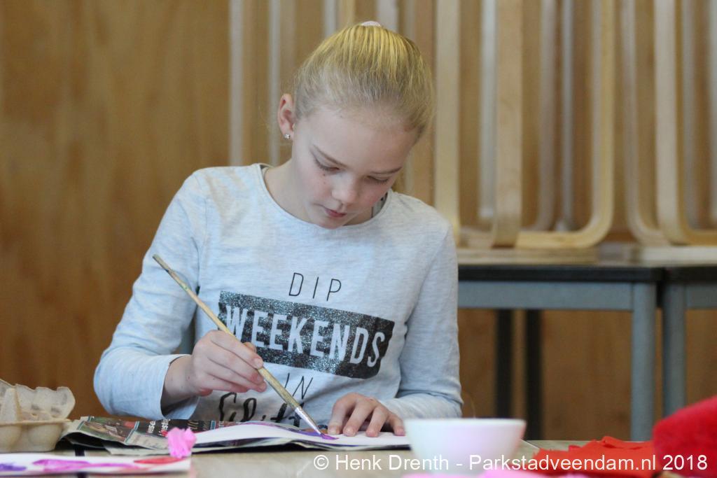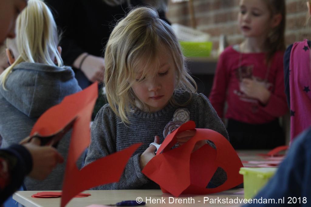 Ongeveer 34 kinderen zijn aan het knutselen geweest. En er kwamen ook nog wat kinderen bij. ’t Haimstee heeft 130 leerlingen met acht leerkrachten.