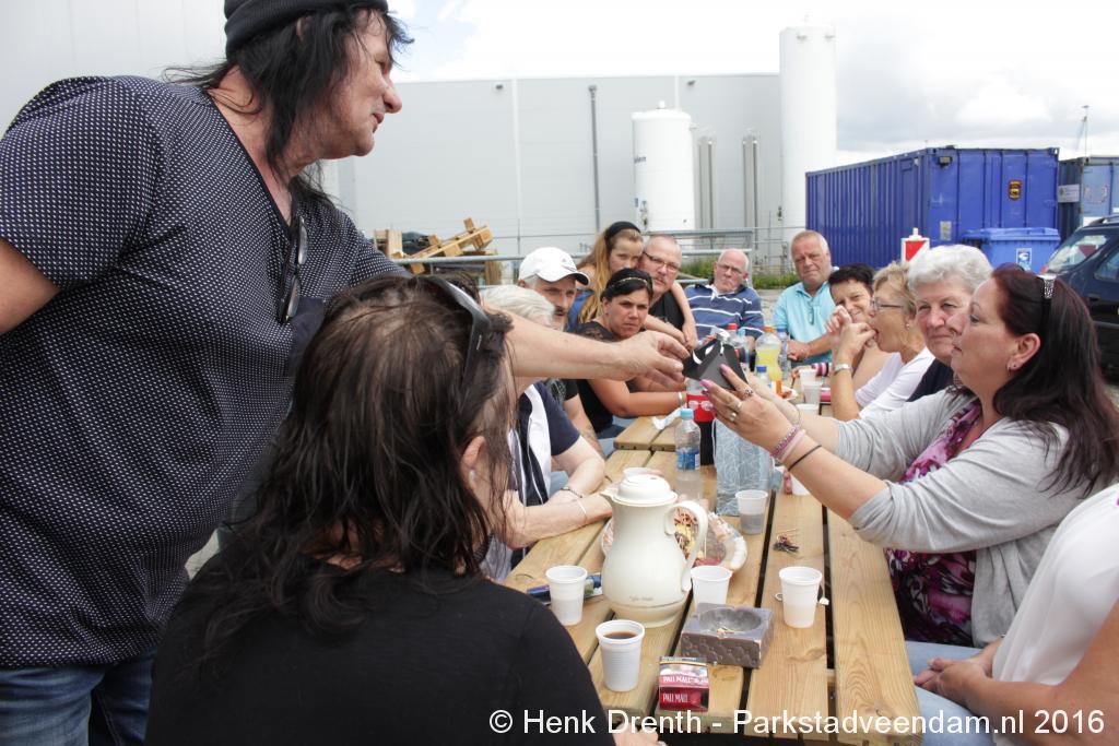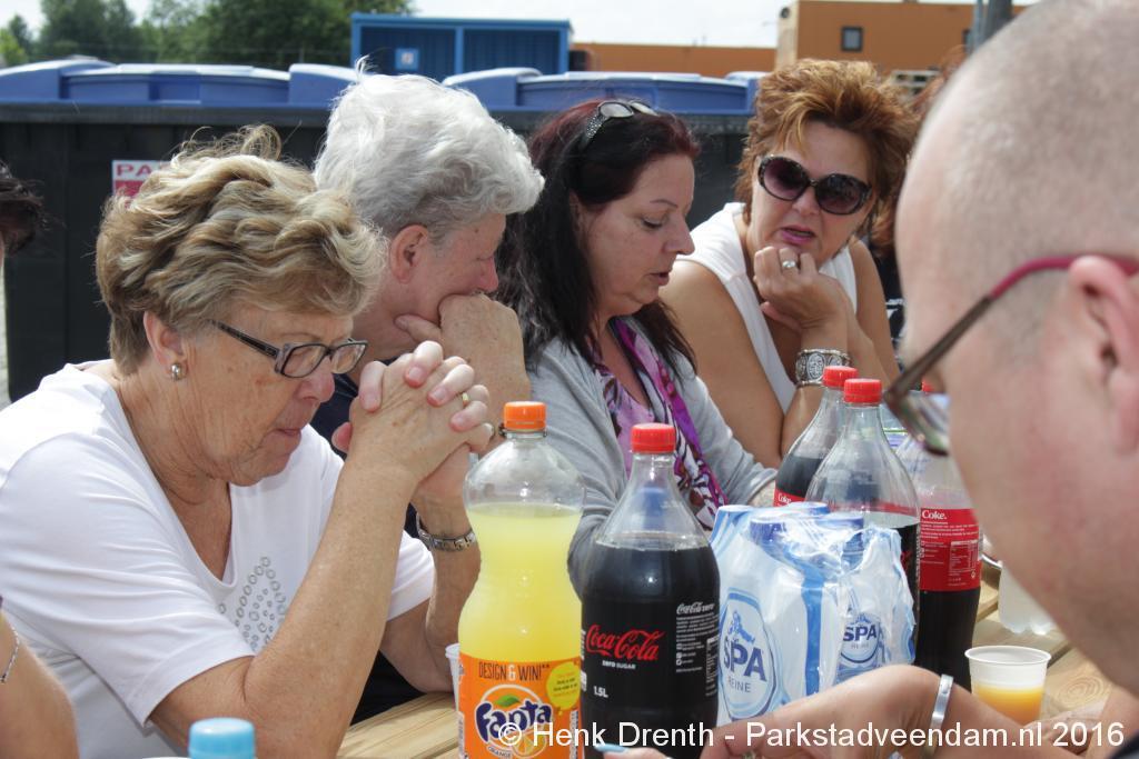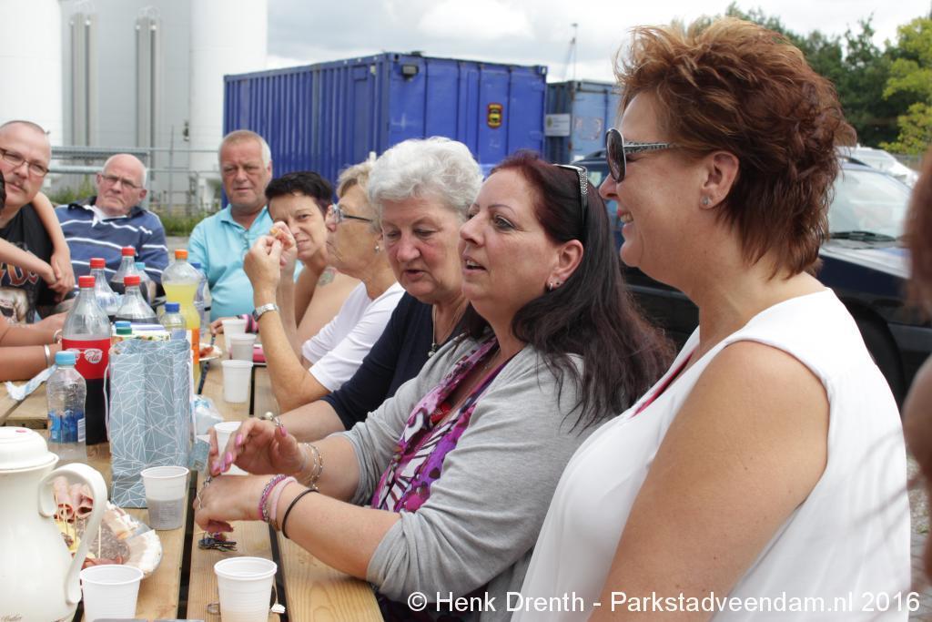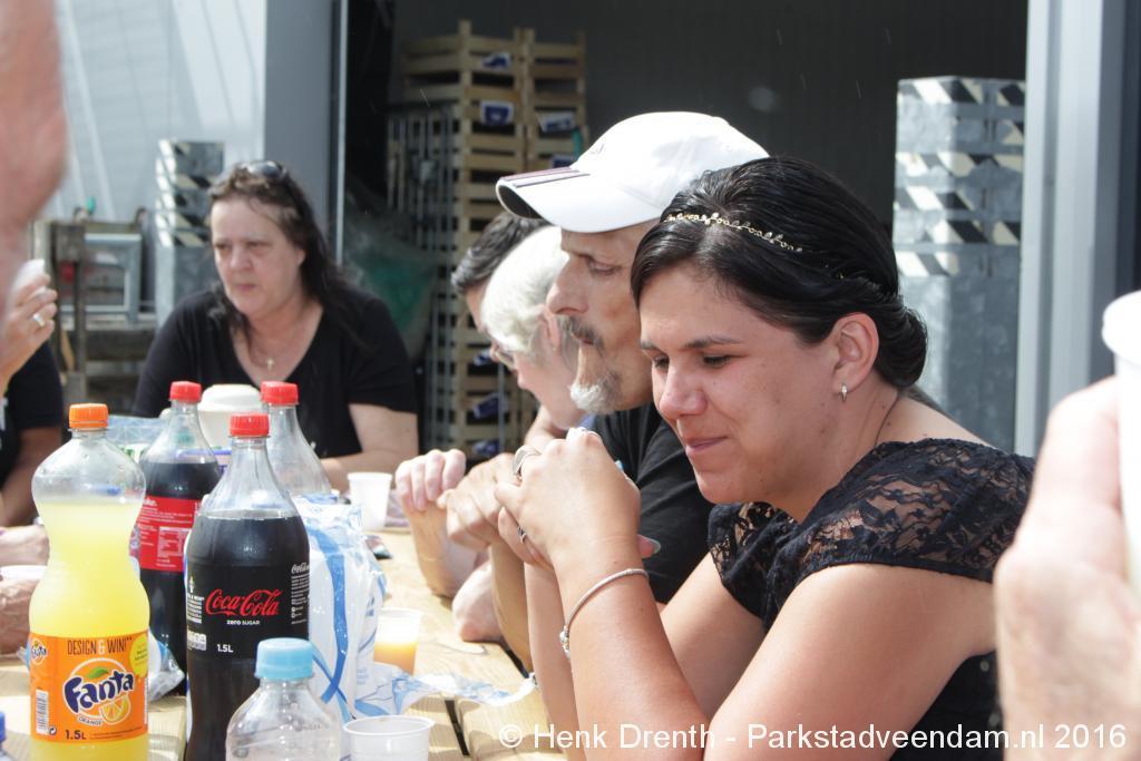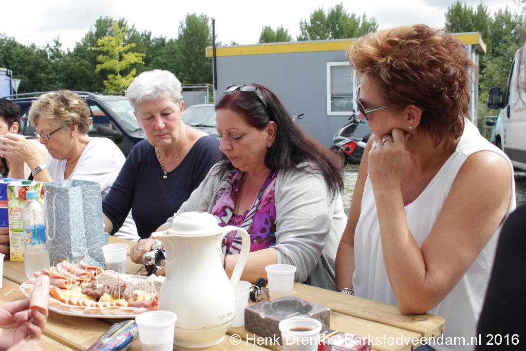 Voor Trijnie is het een nieuwe uitdaging, maar gemakkelijk was het niet om afscheid te nemen van “haar kindje”. Ze vroeg de vrijwilligers om er goed voor te zorgen. Dick Helwich overhandigde Trijnie onder aanwezigheid van alle 10 vrijwilligers een mooi cadeau. Er stonden lekkere hapjes en drinken op de tafels. En de weergoden waren goedgezind met het buiten kunnen zitten.