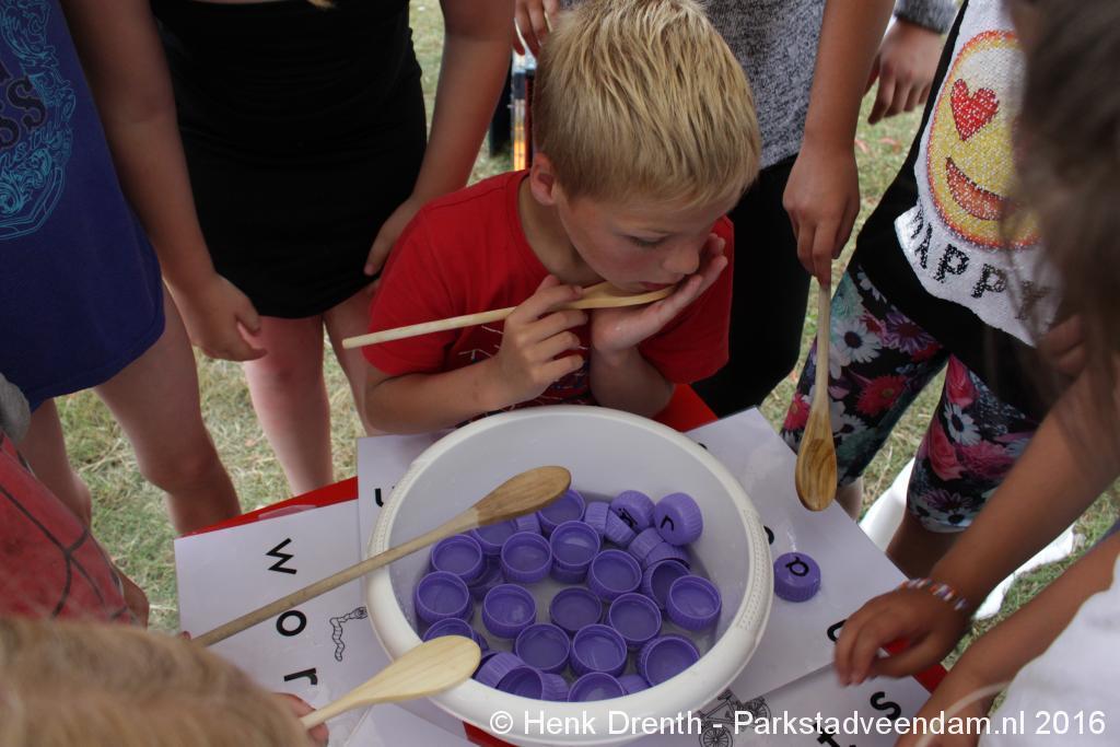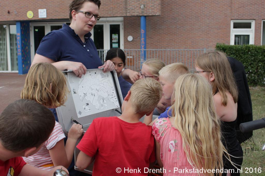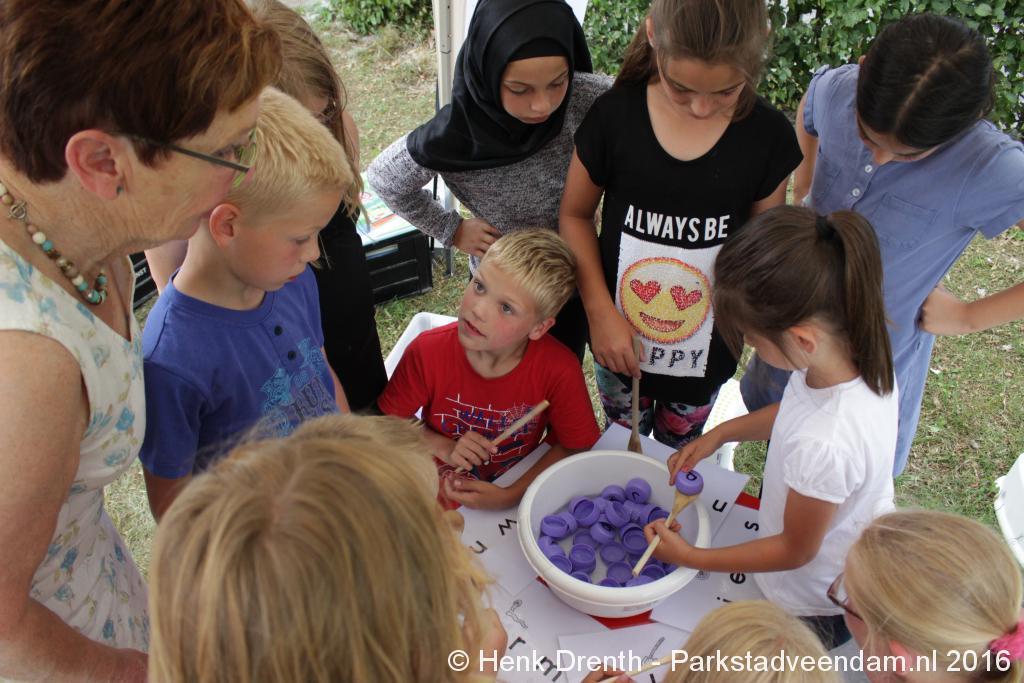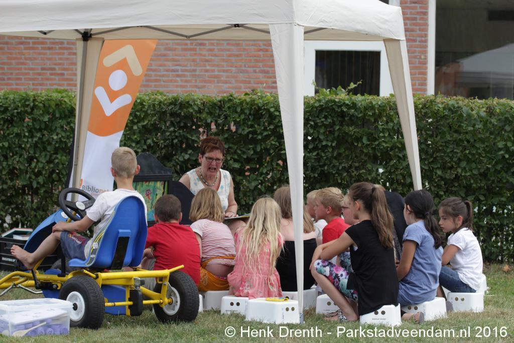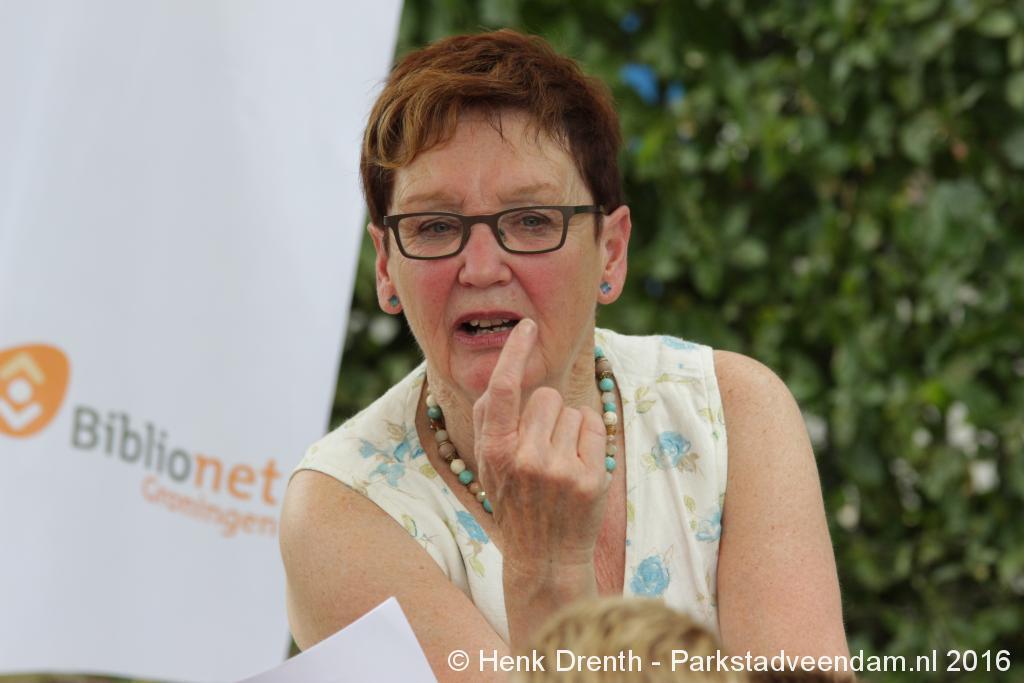 Wil de Jong had haar voorleeskoffer meegenomen. Ze las op heel beeldende wijze voor aan de kinderen, die aan haar lippen gekluisterd zaten. Jolanda roept op om in de zomervakantie in de tent te komen op de woensdagavond van half 7 tot 8 uur. Wil kan super voorlezen en er worden spelletjes gespeeld, zoals lettervissen uit een bak water waarmee woorden kunnen worden gemaakt.
