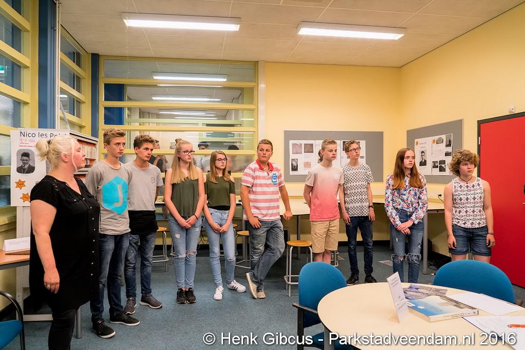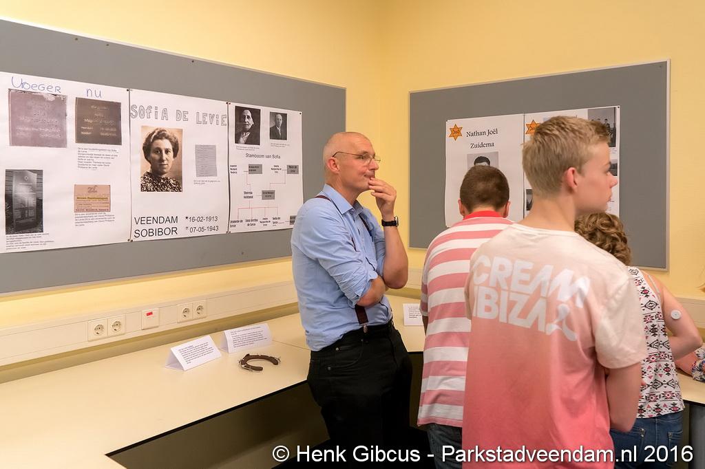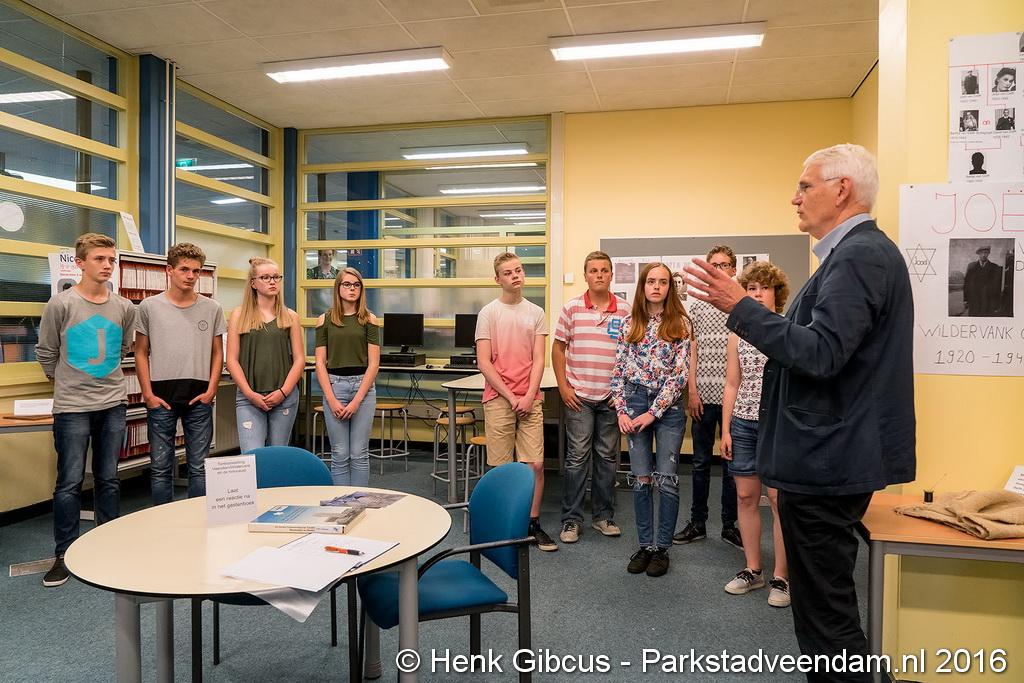 EXPOSITIE - In de mediatheek van scholengemeenschap Winkler Prins, locatie Pinksterstraat is donderdagmiddag de tentoonstelling ''De holocaust in Veendam/Wildervank'' officieel geopend door Jan Nijborg, lid van de centrale directie van de school.