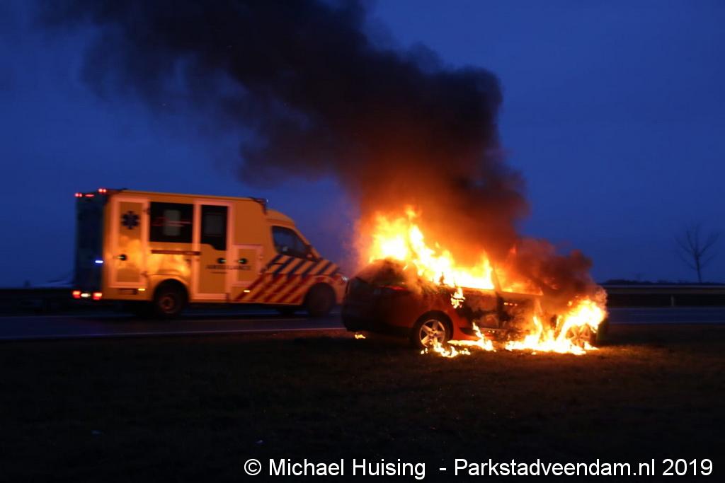 Donderdagmiddag rond half vijf is er brand uitgebroken in een auto die over de N33 reed ter hoogte van Wildervank. De auto stond bij aankomst van de brandweer nagenoeg volledig in brand. Met water en schuim was de brand desondanks snel onder contole.