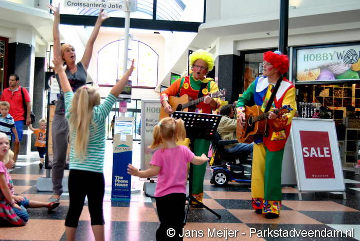 Door het centrum heen toonden de verschillende clowns elk hun eigen genre. Een jongleerclown leek tijdelijk het circus te hebben ingeruild voor de Promenade. In de Winkler Prins Passage gaven twee muzikale clowns hun vrolijke noot. Twee steltloopclowns waren in het centrum beslist niet te missen.