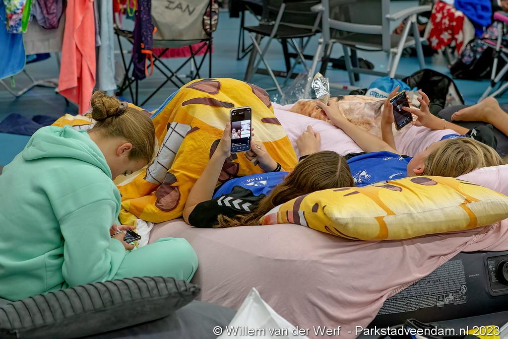 De eerste deelnemers werden op vrijdagavond al door Z&PC Bubble verwelkomt in het Indoorcentrum van Veendam, de rest volgde vandaag (zaterdag) in alle vroegte. In totaal zijn dat dit jaar 515 zwemmers van 32 verenigingen uit heel Nederland en Duitsland. Zij “kamperen” samen met hun begeleiders het hele weekend in de sportzalen die aan het zwembad grenzen. En dat is wat dit toernooi uniek maakt: want naast een sportief evenement, staat gezelligheid en elkaar ontmoeten ook hoog ik het vaandel. Elk jaar staat er daarom op zaterdagavond een disco in het subtropisch zwembad op het programma.