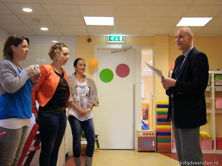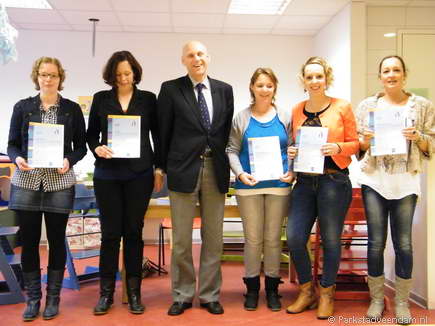 CERTIFICAAT - Afgelopen week hebben alle leidsters van Kinderdagverblijf Bamba hun VVE-Piramide opleiding van CITO positief afgesloten. Wethouder Bert Wierenga reikte de certificaten officieel uit aan de aanwezige leidsters.