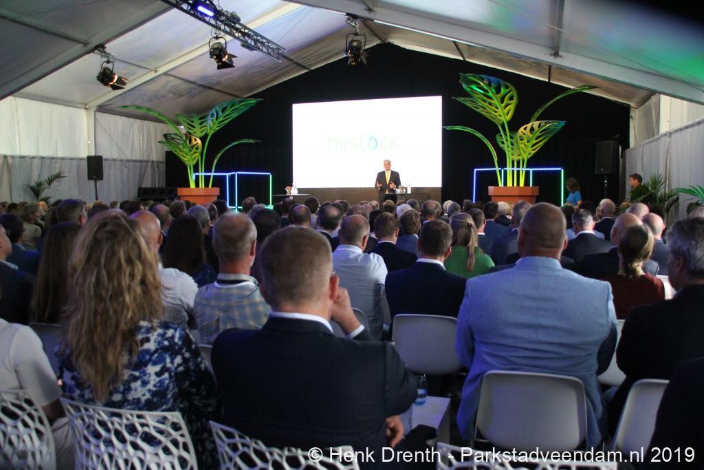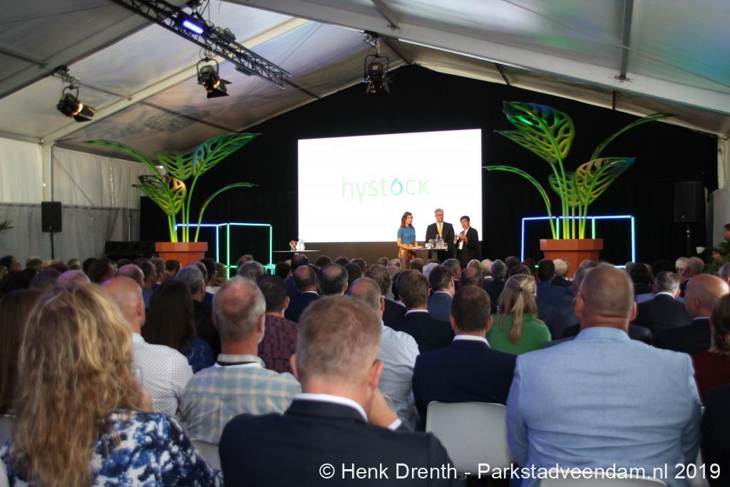 Koning Willem-Alexander onderstreepte het belang van de waterstoffabriek. Hij rijdt momenteel elektrisch. Maar zijn eerstvolgende auto zal op waterstof rijden. HyStock moet de opmaat zijn naar een groene waterstofeconomie die zich diep in Noord-Nederland gaat wortelen. Wanneer de productie in de nabije toekomst toeneemt wordt waterstof grootschalig in de zoutcavernes opgeslagen.