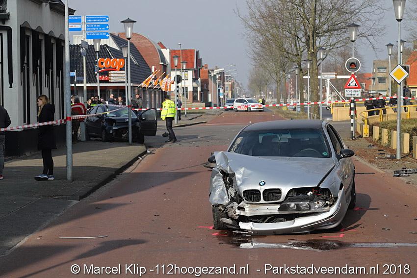 Bij een verkeersongeval op de kruising van de Apollolaan met de Poststraat in Wildervank zijn zondagmiddag twee personen gewond geraakt. Op de beruchte kruising kwamen twee voertuigen met elkaar in botsing.