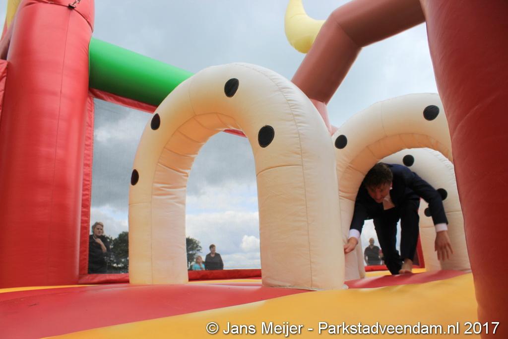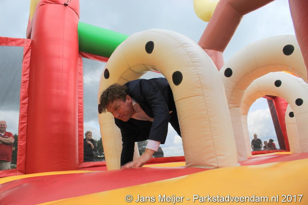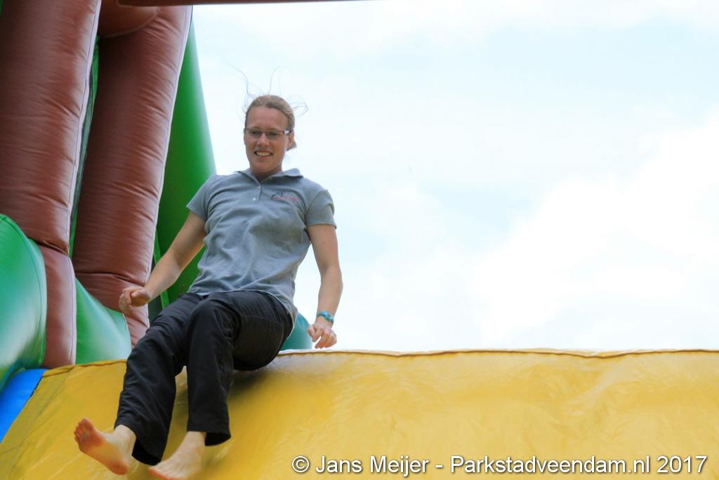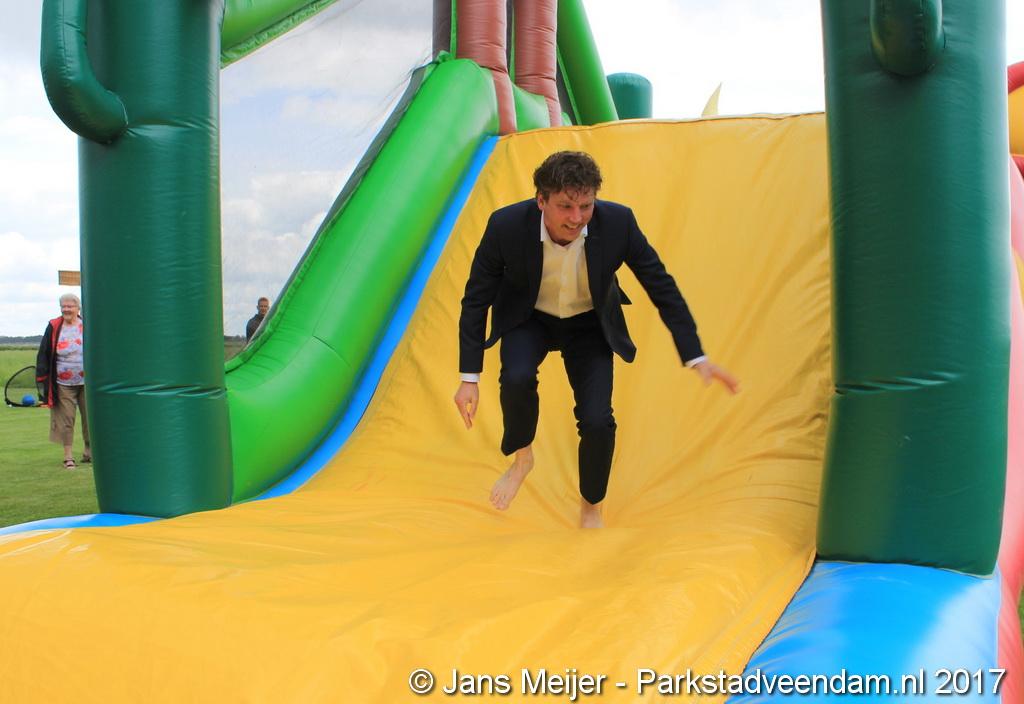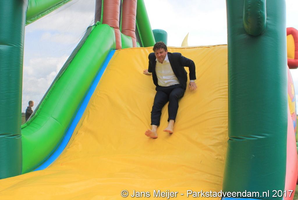 Henk Jan Schmaal ging ook de stormbaan op en dat gaf mooie beelden, maar ook de kinderen genoten. Ze werden ook nog eens getrakteerd op fruit en drinken. Fysiotherapeut Heleen Spelde-Fransens was blij met de toeloop en deze super mooie middag.