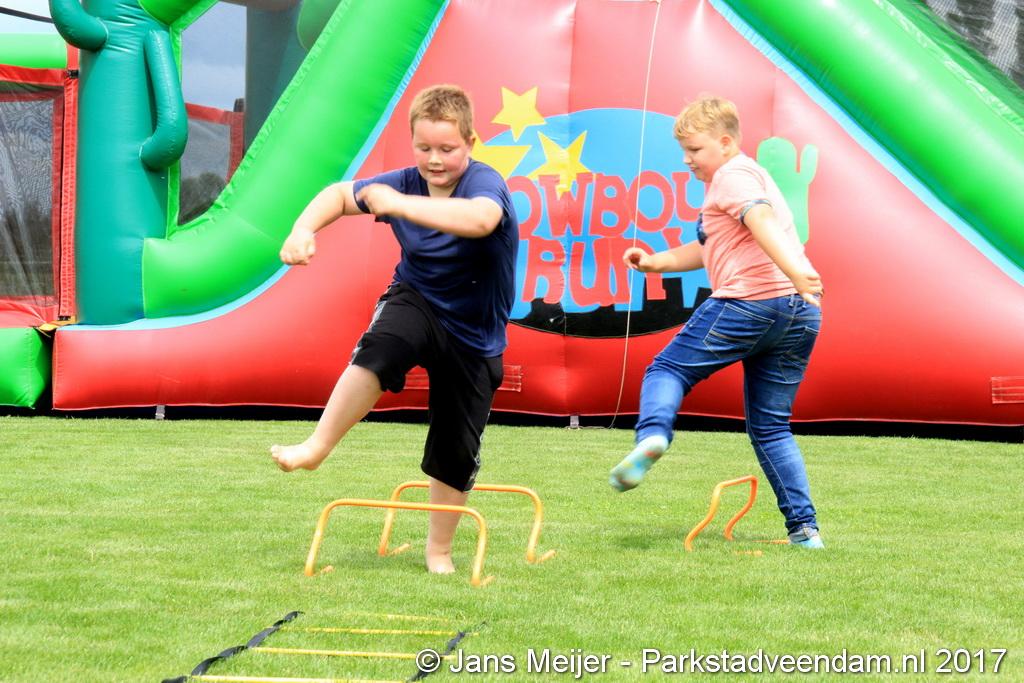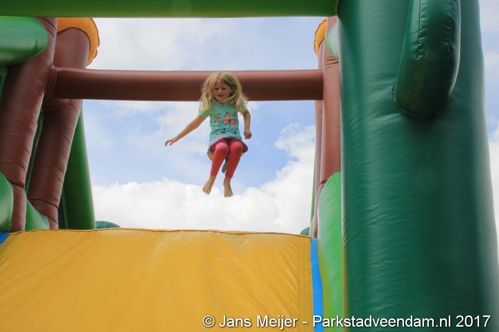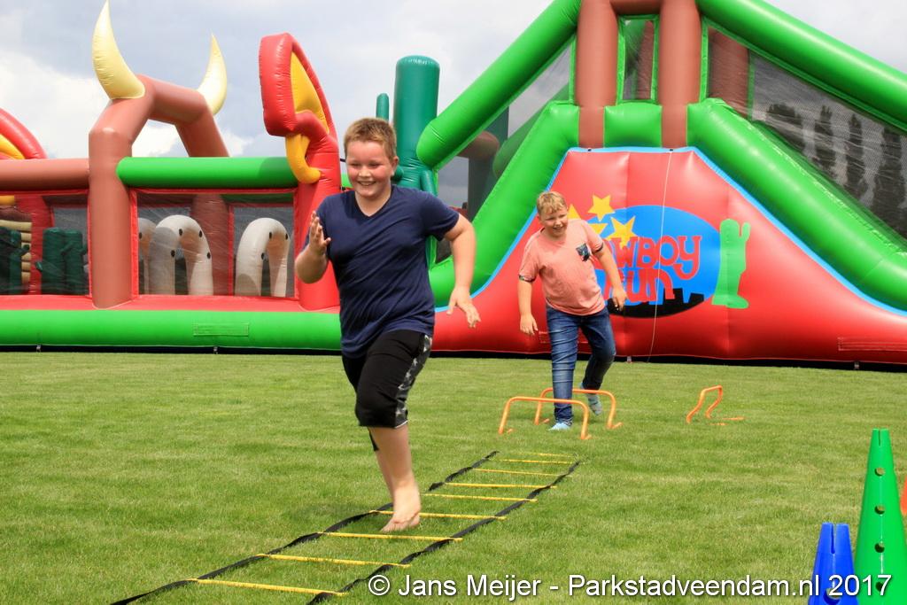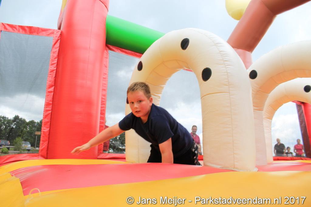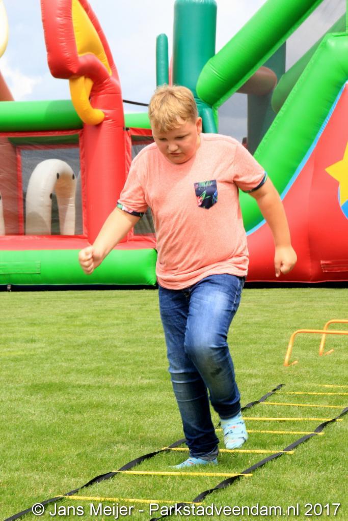 Henk Jan Schmaal ging ook de stormbaan op en dat gaf mooie beelden, maar ook de kinderen genoten. Ze werden ook nog eens getrakteerd op fruit en drinken. Fysiotherapeut Heleen Spelde-Fransens was blij met de toeloop en deze super mooie middag.