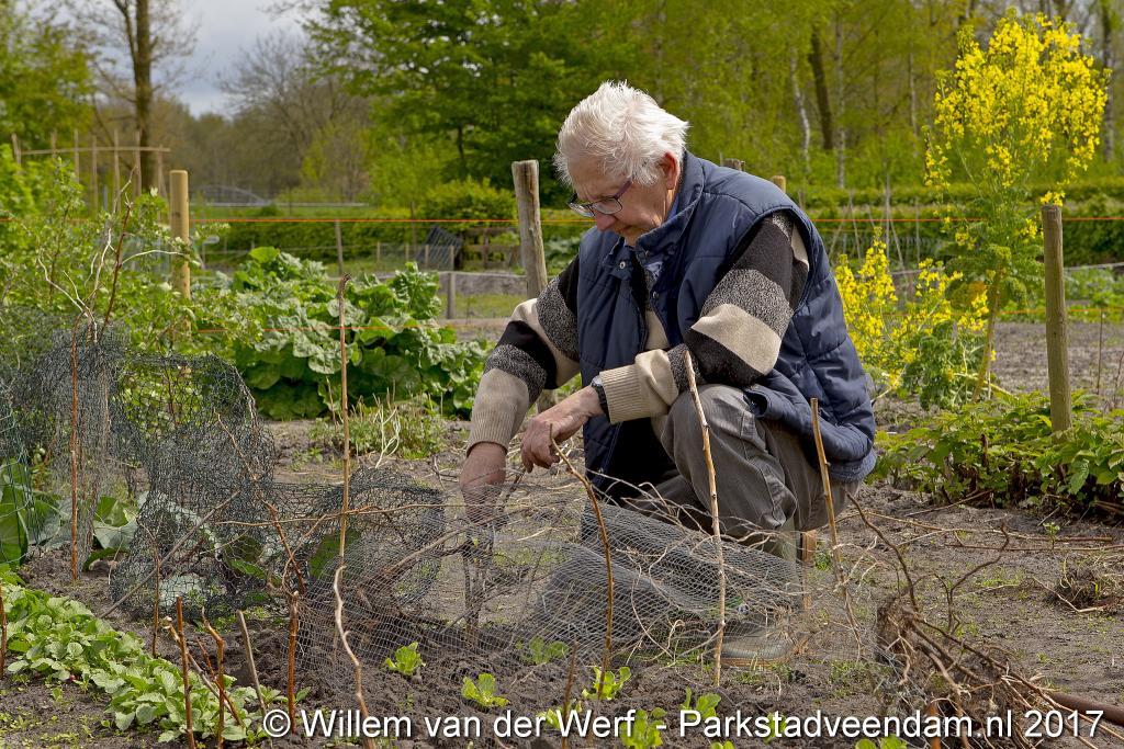 Renate Broersma staat voor haar tuinhuisje. Zij heeft sinds twee jaar een tuin van 2 are (200m²) en verbouwt veel groentes en bloemen zoals siererwtjes, aardbeien en zinnia’s. Ook heeft ze een paar fruitboompjes – appel en nectarines. In haar kasje staan verschillende soorten tomaten en pepers en wordt het seizoen verlengd door veel al in het vroege voorjaar te zaaien. Ze geniet van de kleurenpracht van de tuin, de opbrengst én de rust, vogels en zelfs af en toe een eekhoorntje. Jen is een Thaise. Ze is bijna elke dag wel 2 uur op de tuin te vinden. Ze kweekt groentes en allerlei soorten pepers, die ze thuis in gerechten gebruikt. Zomers is de tuin een lust voor het oog door de veelheid aan soorten. Ze kan lekker koken. Voor het oogstfeest van de vereniging maakte ze schillende lekkere hapjes. Henk Rave en Ger Medema en hebben al jaren een tuin in Borgerswold. Henk verbouwt de meest voorkomende groentes. Hij is waarschijnlijk de enige die schorseneren op het programma heeft. Ook witlof verbouwen ze. De wortels worden ingekuild om een heerlijke witlof te verkrijgen. “Dit heeft tenminste smaak,” glundert Rave. Ook staan aardappels op het plantschema. Een vroeg soort – Doré, een middensoort de Surprises en een late soort. Tuinbuur Ger houdt het op Lekkerlanders, verschillende soorten kool en zomer- en winterwortelen. Bij een volgende tuin komen we zowaar een aspergebed tegen! Ook niet alledaags. Wim Lamein is aan zijn 3e seizoen bezig. Hij is meer een “van alles wat” tuinder. Bij de voorzitter zelf ligt de tuin erbij als een voorbeeld! Hij heeft wat fruitboompjes staan, reuze aardbeien, frambozen en kiwi’s. Ook het lavendeltuintje valt op. In zijn kasje kweekt hij tuinboontjes op en échte bruine bonen voor de soep – de Groninger hardschil.