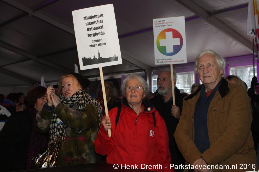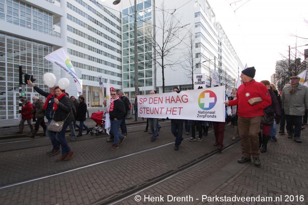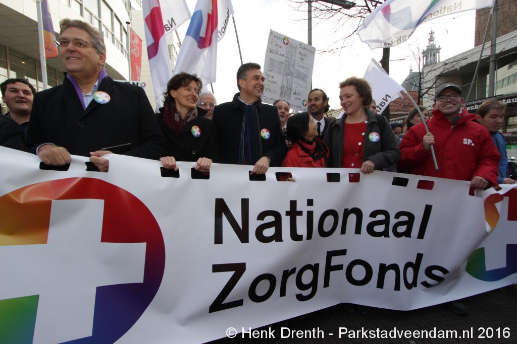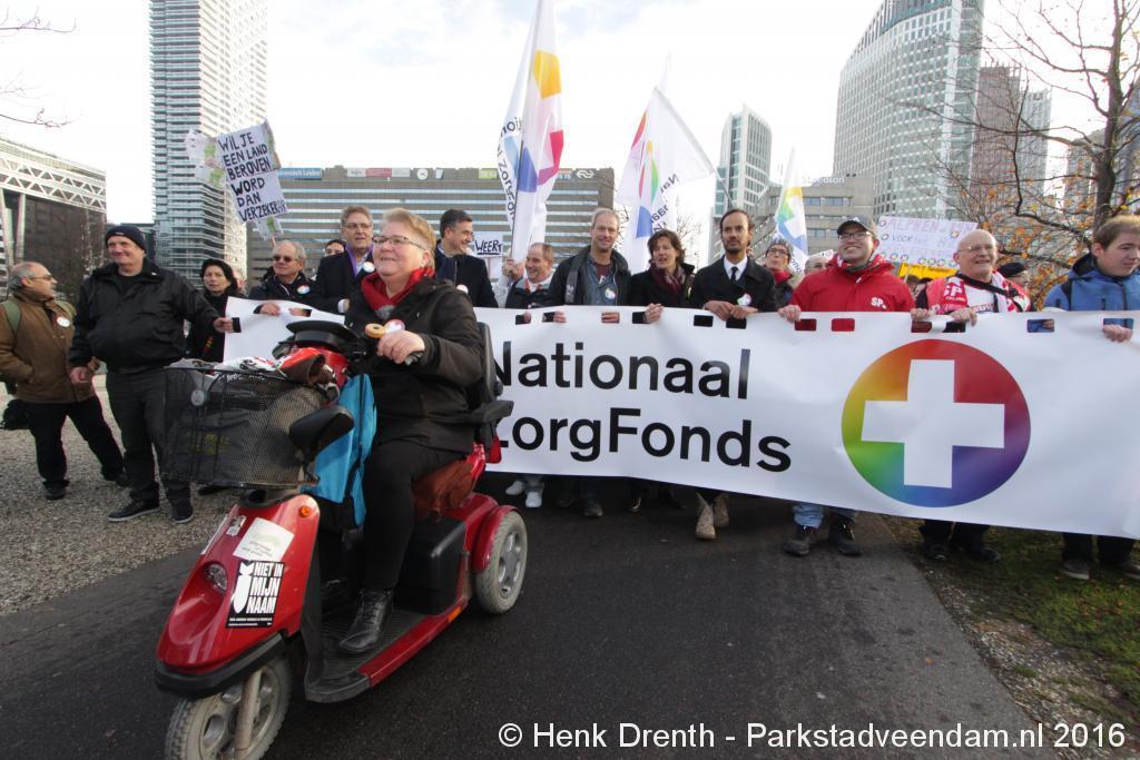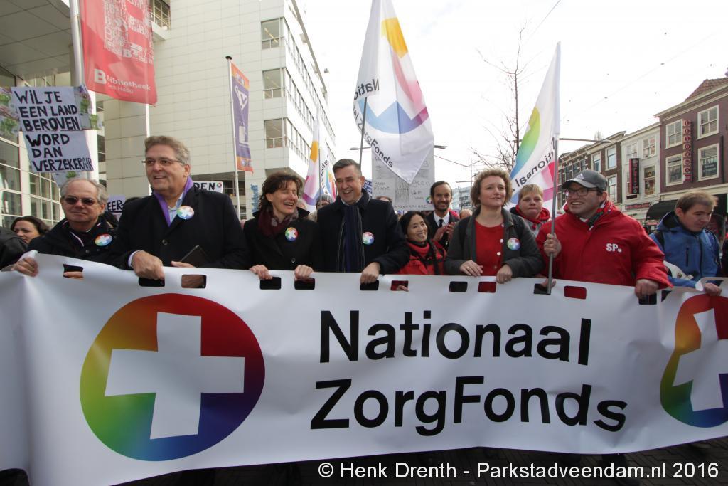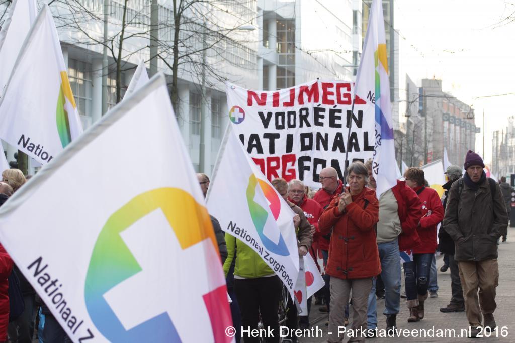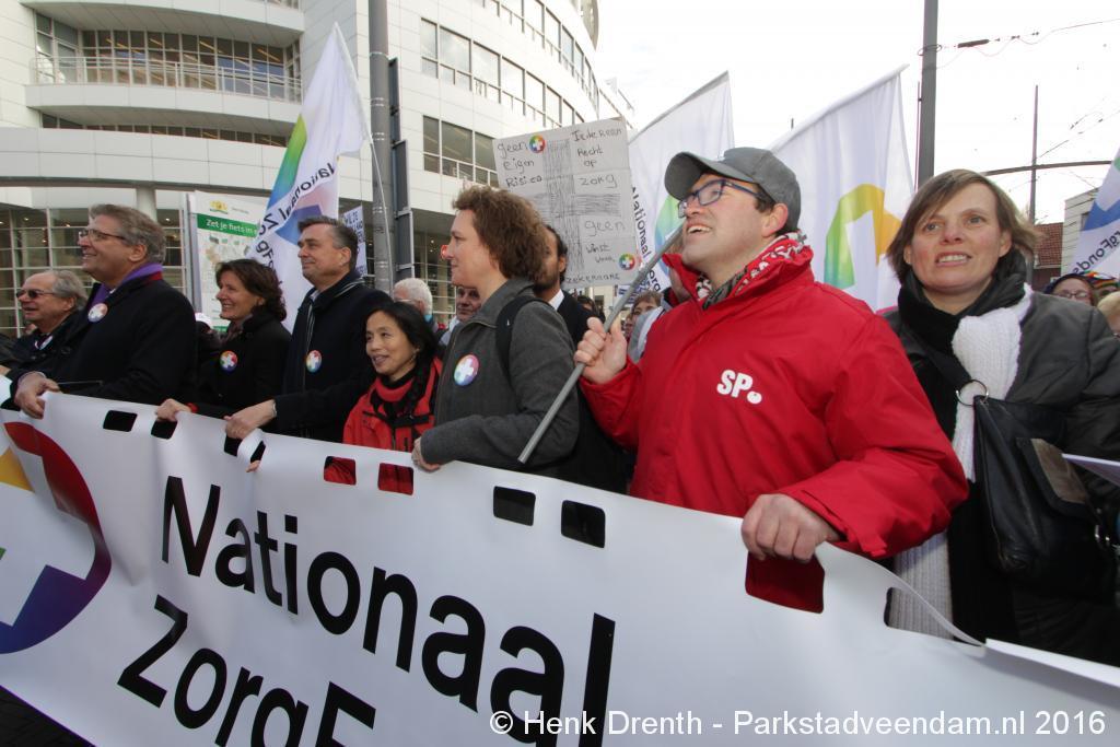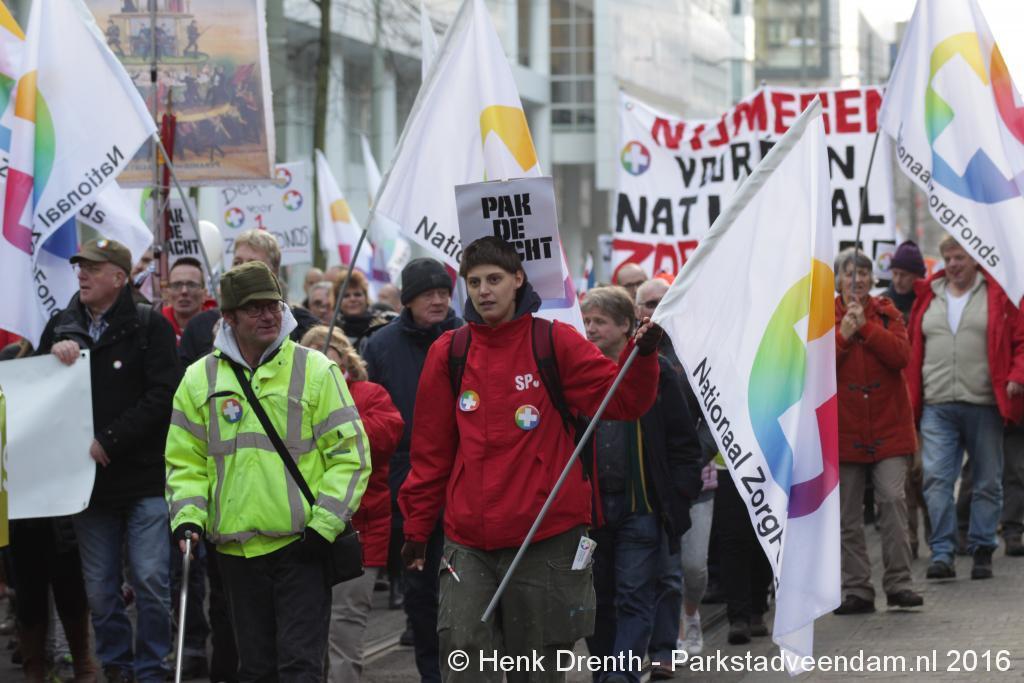 Uit Veendam waren Harrie Schoonewille, Han Landsbergen en Sita van der Veen van de SP Fractie naar Den Haag afgereisd. Sita kreeg in haar originele verpleegsterstenue, net als tijdens de Red de Zorg demonstratie in 2015, veel aandacht van het publiek en van fotografen. Ze is werkzaam in de palliatieve en terminale zorg met begeleiding in de nachtdienst. Als ervaringsdeskundige wil ze zich gaan inzetten voor de zorg in het algemeen. Ze neemt deel aan de Nationale ZorgFonds actie omdat ze vindt dat de marktwerking uit de zorg weg moet. Ze staat er vierkant achter. Als zorgverlener ziet ze teveel schrijnende gevallen van mensen die zorg gaan mijden. Sita vindt het belachelijk dat er meer dan 100 miljoen euro naar reclames gaan, geld waarvan zij vindt dat het naar mensen toe moet die zorg nodig hebben. Ook de eigen bijdrage vindt ze te zot voor woorden. Mensen met een uitkering kunnen niet eens de 385 euro opbrengen. Anderen kunnen zich maar weinig of niets meer permitteren. Zo wordt de tweedeling alleen maar groter gemaakt. Tandartsen klagen dat de slechte gebitten weer terug zijn.