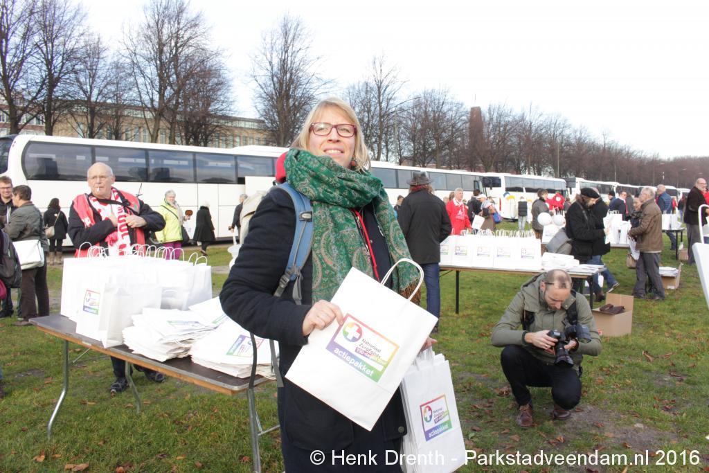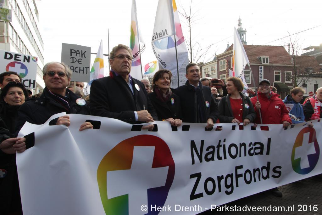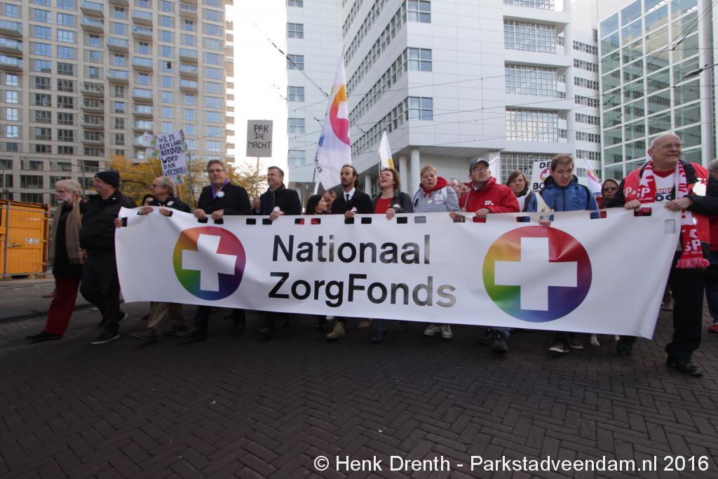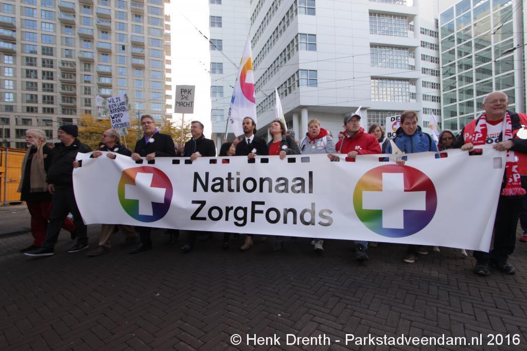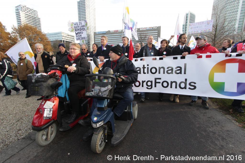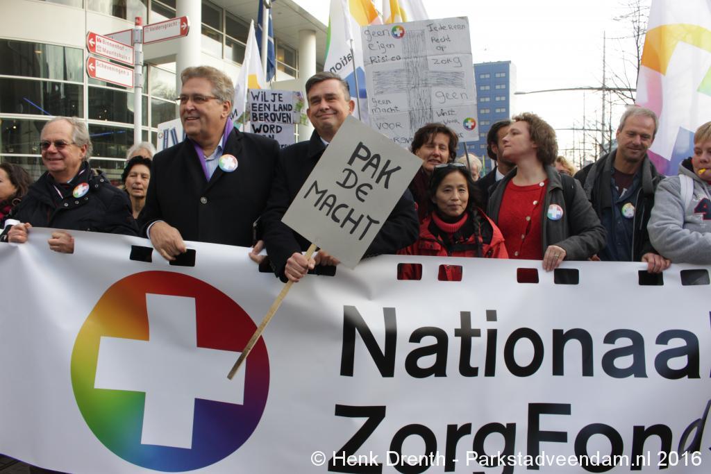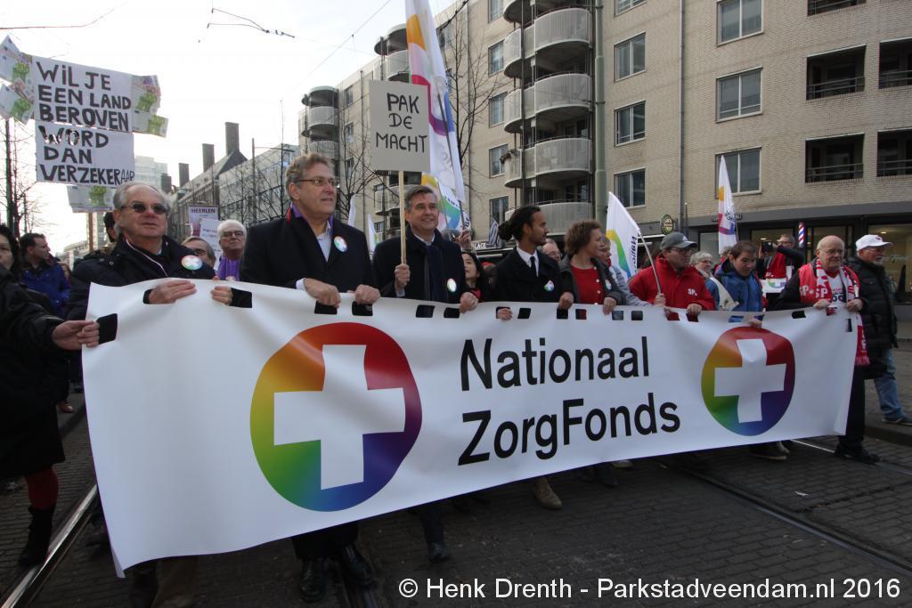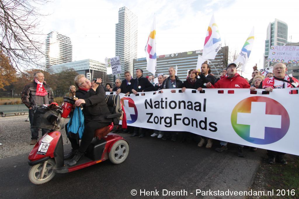 Uit Veendam waren Harrie Schoonewille, Han Landsbergen en Sita van der Veen van de SP Fractie naar Den Haag afgereisd. Sita kreeg in haar originele verpleegsterstenue, net als tijdens de Red de Zorg demonstratie in 2015, veel aandacht van het publiek en van fotografen. Ze is werkzaam in de palliatieve en terminale zorg met begeleiding in de nachtdienst. Als ervaringsdeskundige wil ze zich gaan inzetten voor de zorg in het algemeen. Ze neemt deel aan de Nationale ZorgFonds actie omdat ze vindt dat de marktwerking uit de zorg weg moet. Ze staat er vierkant achter. Als zorgverlener ziet ze teveel schrijnende gevallen van mensen die zorg gaan mijden. Sita vindt het belachelijk dat er meer dan 100 miljoen euro naar reclames gaan, geld waarvan zij vindt dat het naar mensen toe moet die zorg nodig hebben. Ook de eigen bijdrage vindt ze te zot voor woorden. Mensen met een uitkering kunnen niet eens de 385 euro opbrengen. Anderen kunnen zich maar weinig of niets meer permitteren. Zo wordt de tweedeling alleen maar groter gemaakt. Tandartsen klagen dat de slechte gebitten weer terug zijn.