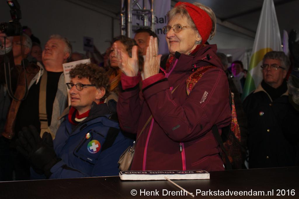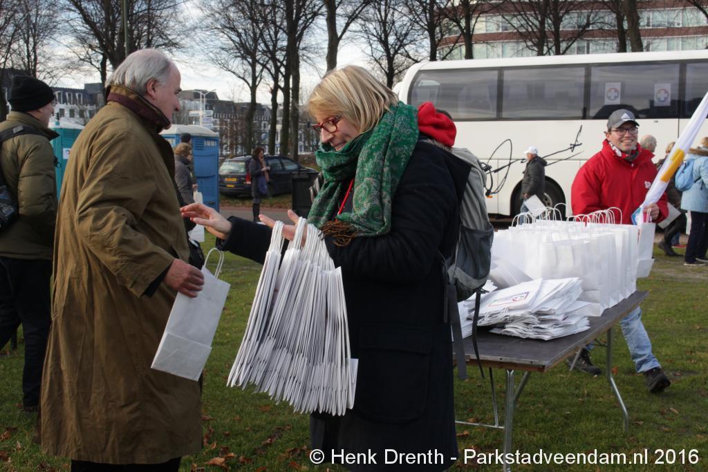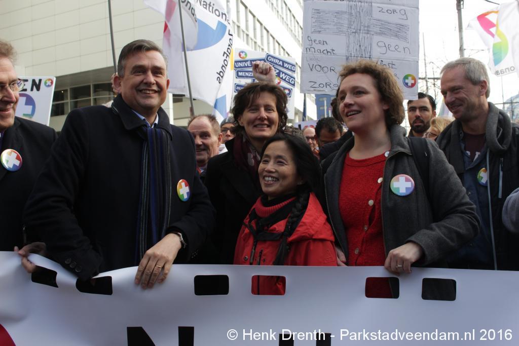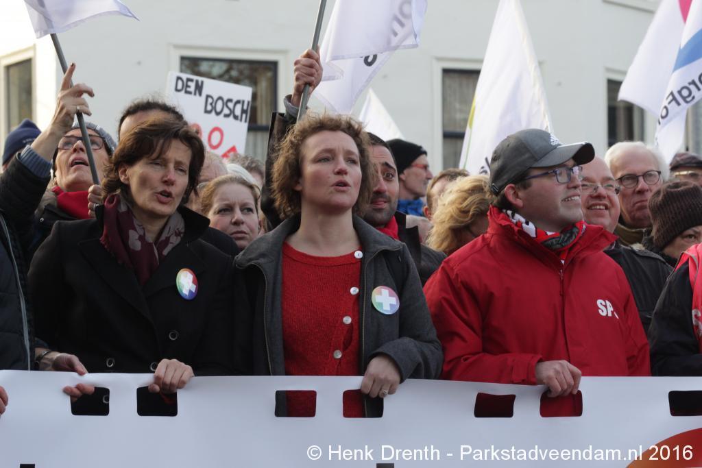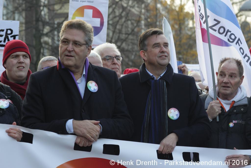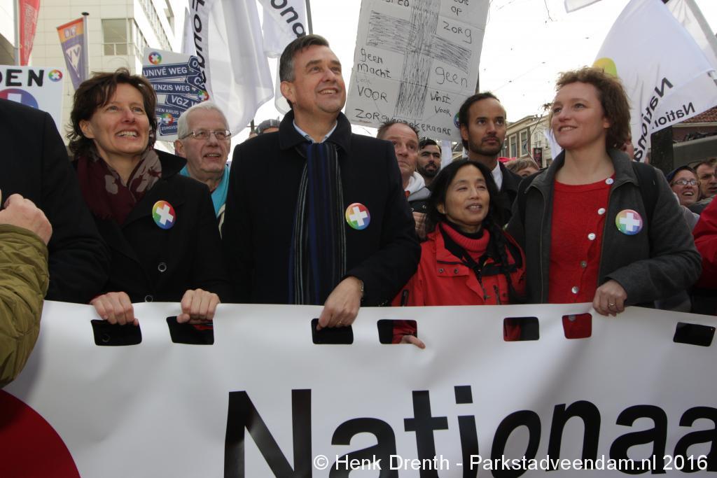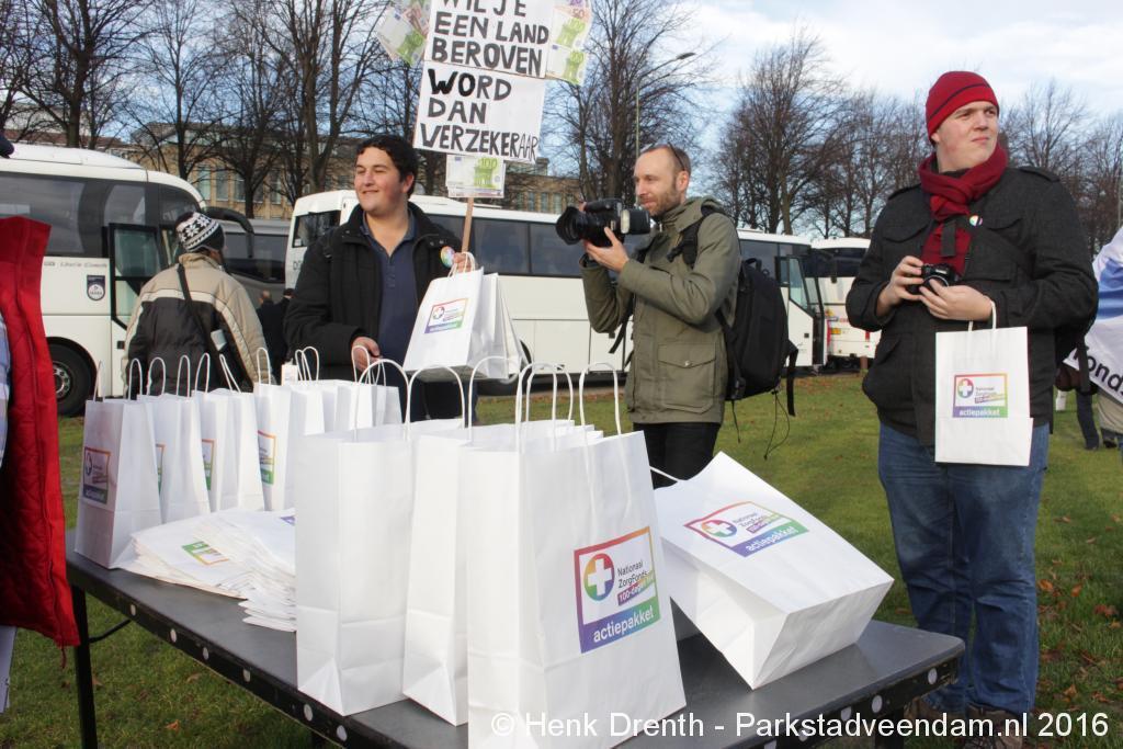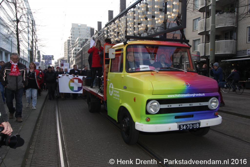 Uit Veendam waren Harrie Schoonewille, Han Landsbergen en Sita van der Veen van de SP Fractie naar Den Haag afgereisd. Sita kreeg in haar originele verpleegsterstenue, net als tijdens de Red de Zorg demonstratie in 2015, veel aandacht van het publiek en van fotografen. Ze is werkzaam in de palliatieve en terminale zorg met begeleiding in de nachtdienst. Als ervaringsdeskundige wil ze zich gaan inzetten voor de zorg in het algemeen. Ze neemt deel aan de Nationale ZorgFonds actie omdat ze vindt dat de marktwerking uit de zorg weg moet. Ze staat er vierkant achter. Als zorgverlener ziet ze teveel schrijnende gevallen van mensen die zorg gaan mijden. Sita vindt het belachelijk dat er meer dan 100 miljoen euro naar reclames gaan, geld waarvan zij vindt dat het naar mensen toe moet die zorg nodig hebben. Ook de eigen bijdrage vindt ze te zot voor woorden. Mensen met een uitkering kunnen niet eens de 385 euro opbrengen. Anderen kunnen zich maar weinig of niets meer permitteren. Zo wordt de tweedeling alleen maar groter gemaakt. Tandartsen klagen dat de slechte gebitten weer terug zijn.