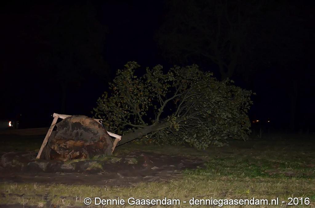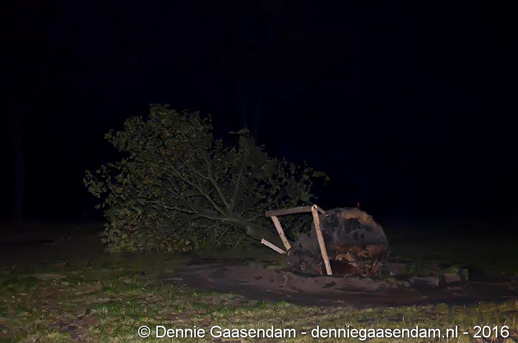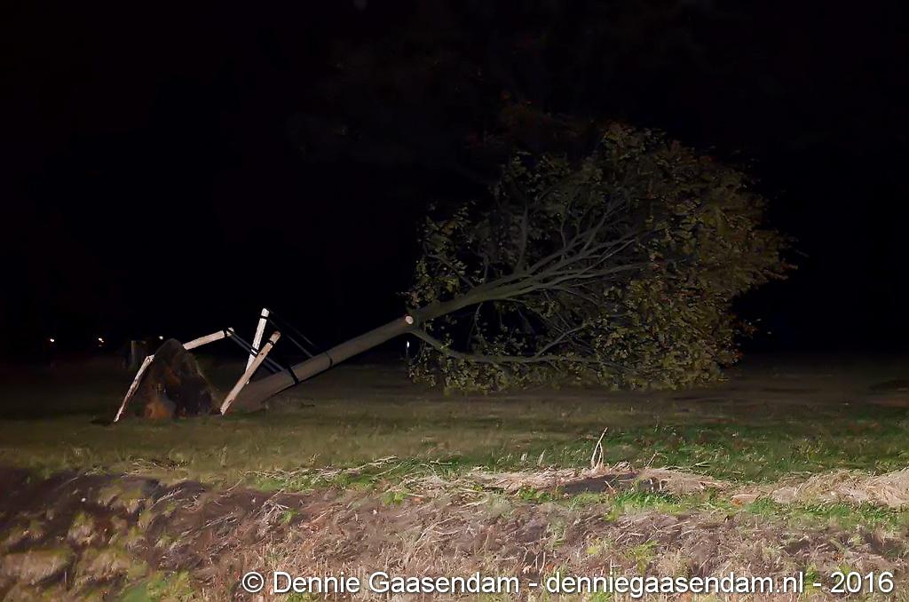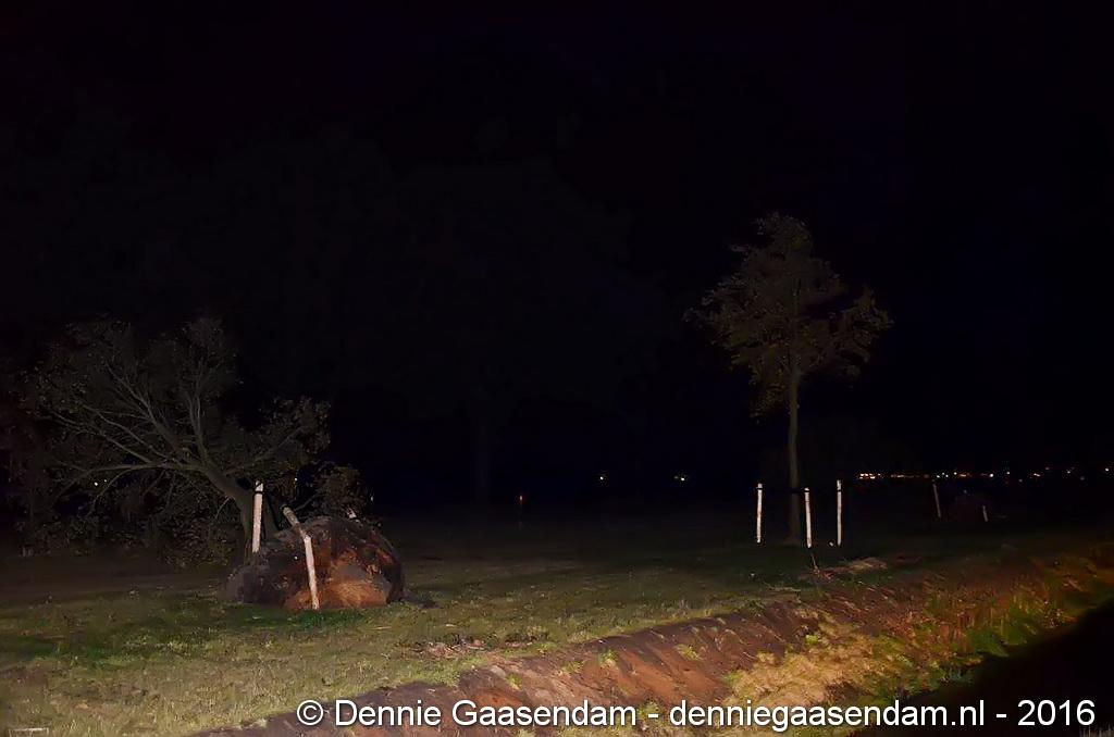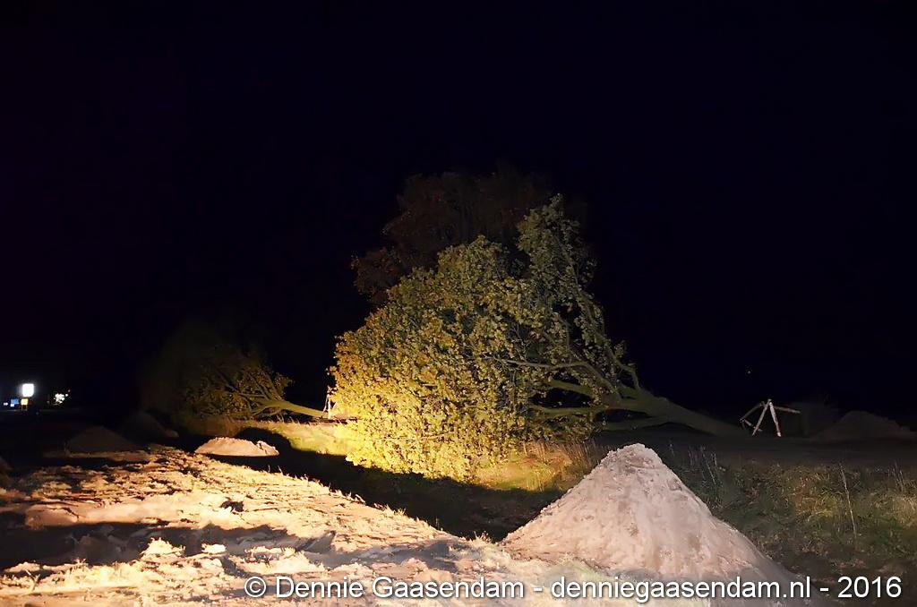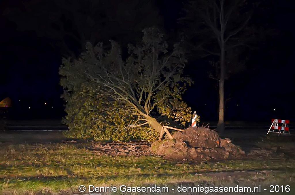 De N366 tussen Veendam en Nieuwe Pekela is vanaf vorige week woensdag volledig afgesloten. Anderhalf week is er nodig om grote en kleine bomen te verplanten. In de namiddag toen de storm ook boven de Provincie Groningen zijn hoogtepunt bereikte zijn bijna alle bomen die de afgelopen week zijn verplant omgewaaid. De palen die de bomen recht moet houden zijn afgeknapt als lucifershoutjes.