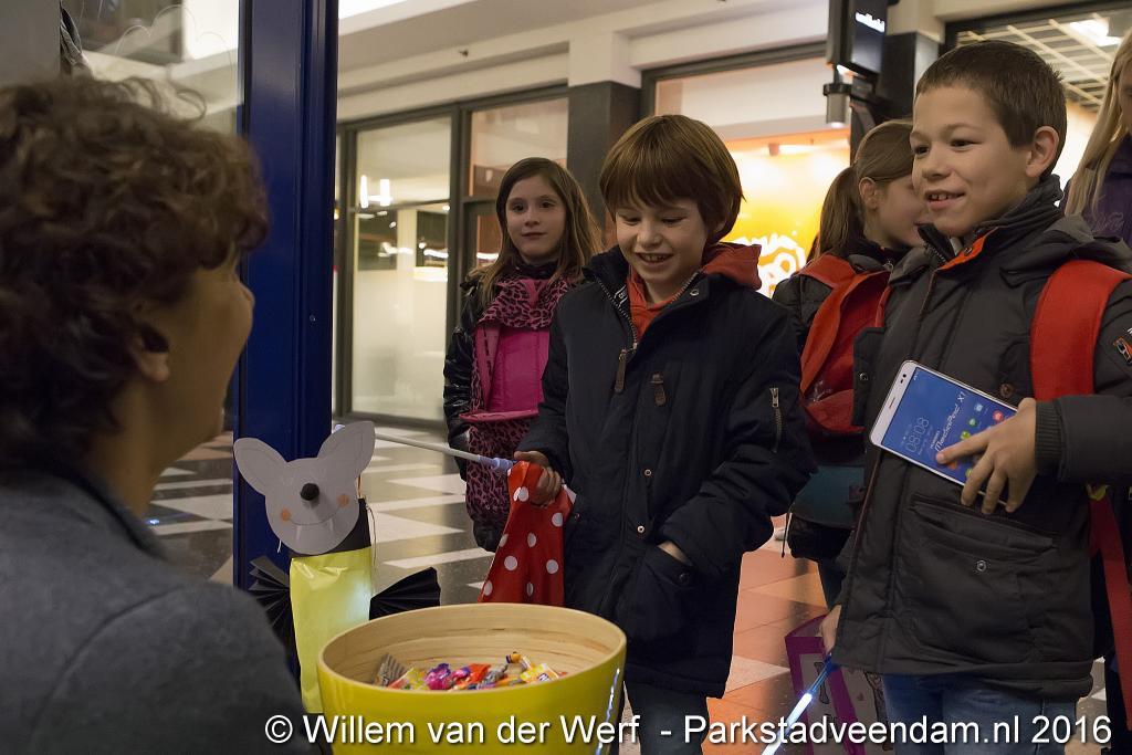 Sinterklaas is druk met handjes schudden en de Pieten delen pepernoten uit.