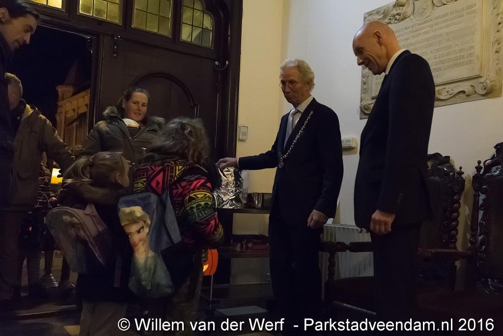 Niet alleen een mega Sinterklaasintocht in Veendam, maar het is ook mega druk zo te zien. Sinterklaas heeft 213 pieten meegenomen zo verteld hij aan Meneer Mark. Langs het water staan honderden kinderen en grote mensen.