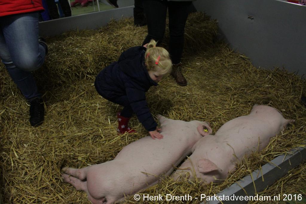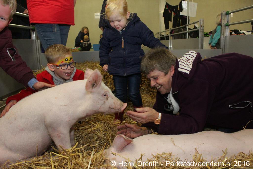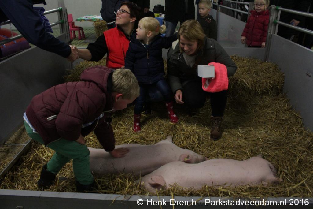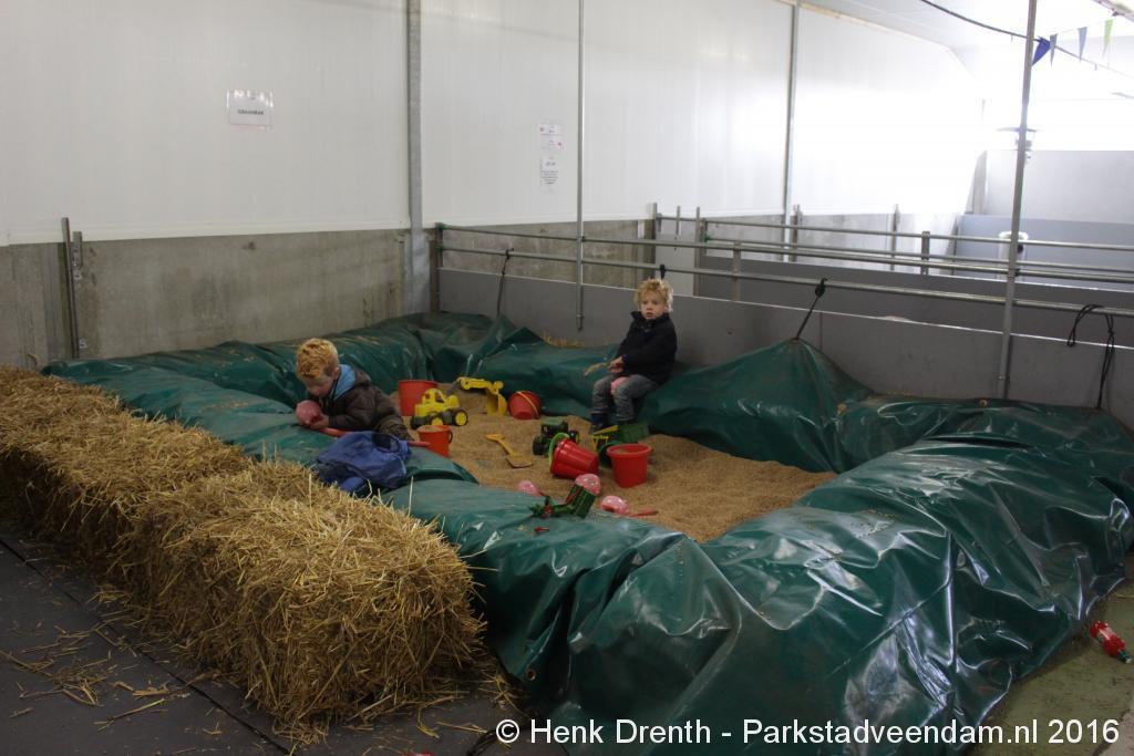 Aan de kinderen was ook gedacht. Ze konden zich vermaken met een springkussen en met spelletjes. Veel aandacht kregen de knuffelvarkentjes Rose en Pip. Behalve varkensstal is het ook een akkerbouwbedrijf met 250 hectare, waarop eigen maïs als voer voor de varkens wordt verbouwd.