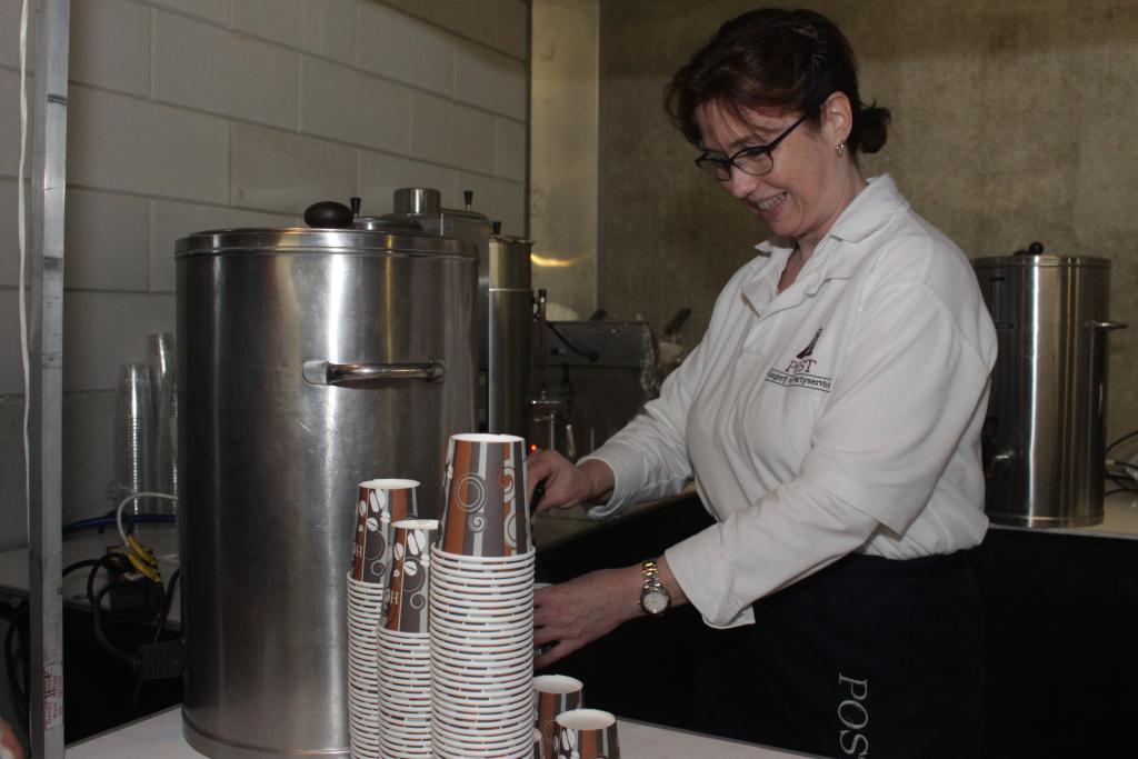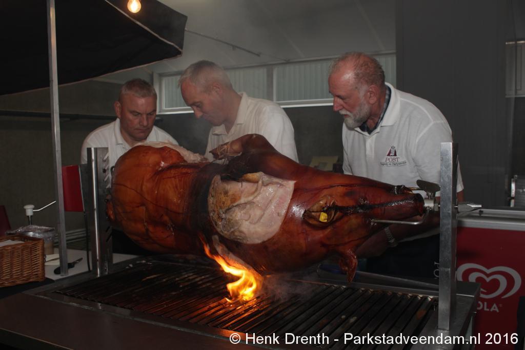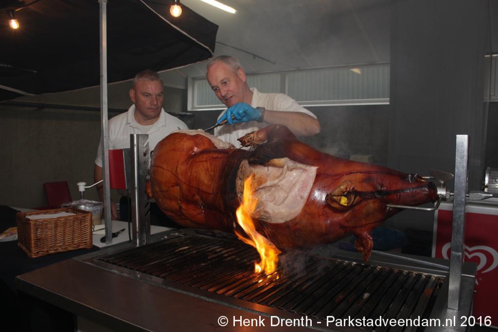 In een grote ruimte van een nog in te richten stal waren stoelen en tafels geplaatst om na de uitgebreide rondgang van de catering te genieten dat tiptop was geregeld. Er was koffie, thee, chocolademelk met gebak, keus uit verschillende belegde broodjes en smakelijke soepen. Lekkere hapjes werd regelmatig rondgebracht, en ontlopen was bijkans onmogelijk. Voor de speenvarken aan ‘t spit stonden mensen in de rij.