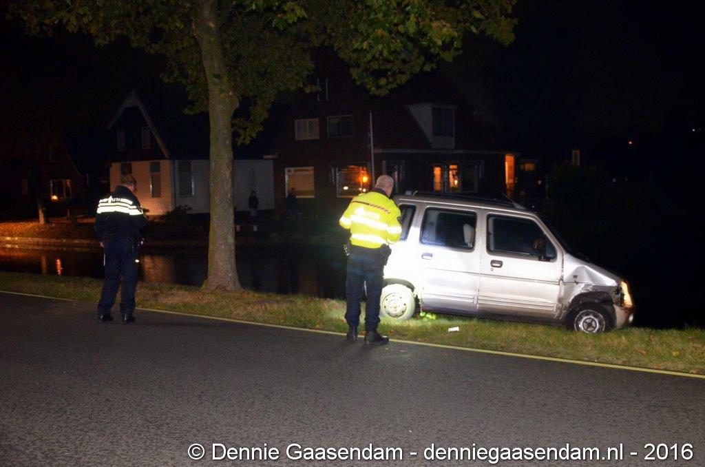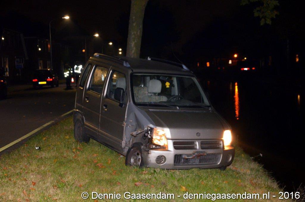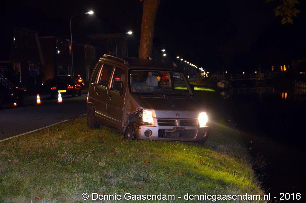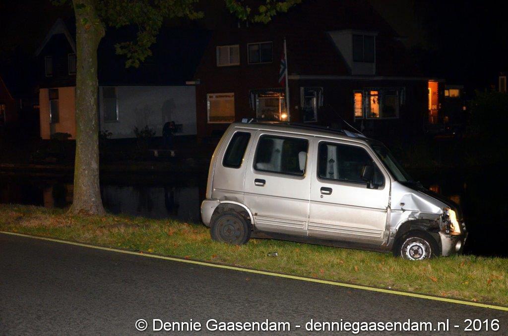 De auto kwam in de berm, raakte een boom en kwam vlak voor het Oosterdiep tot stilstand. Volgens getuigen ging de bestuurder van de auto er daarna vandoor. De politie bevestigt dat deze persoon even later meegenomen is naar het politiebureau. De Verkeers Ongevallen Analyse heeft ter plaatse een onderzoek ingesteld. De weg is enige tijd afgesloten geweest. De auto moest worden afgesleept. Niemand raakte gewond.