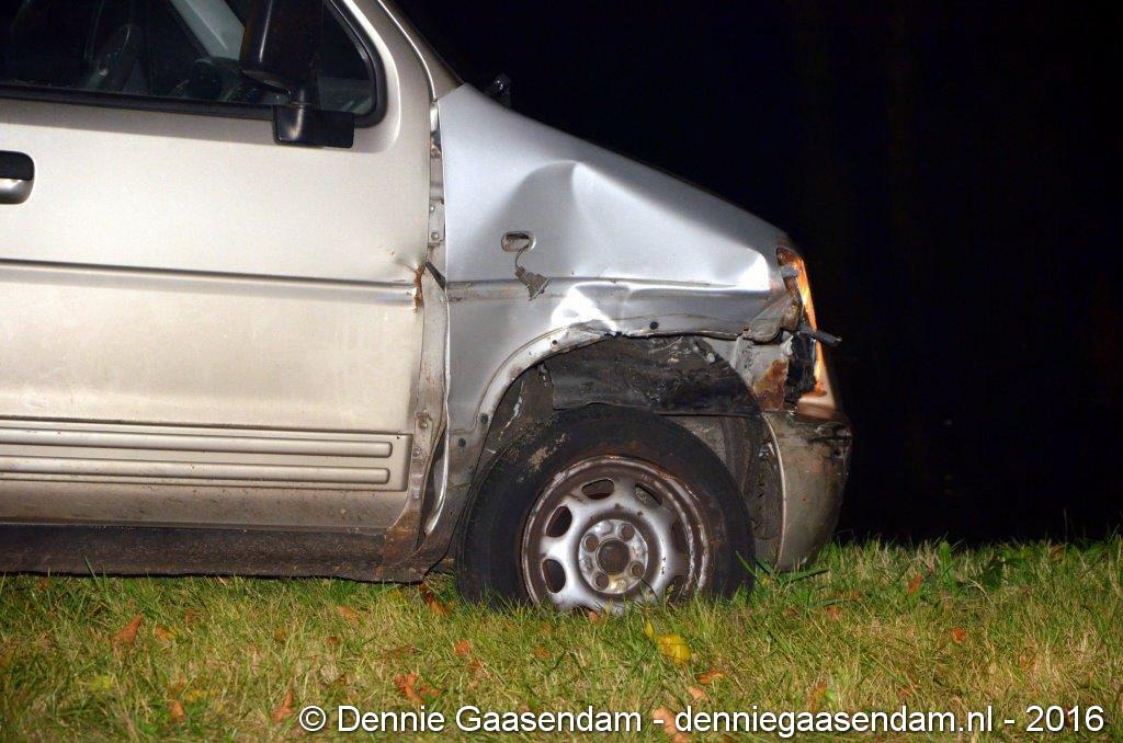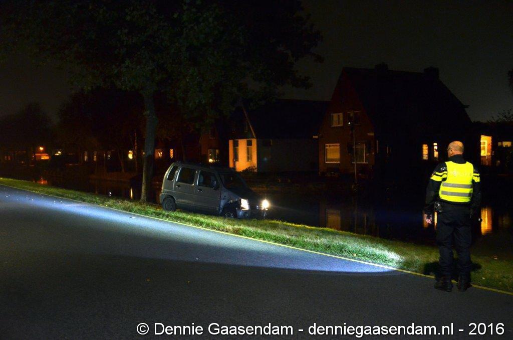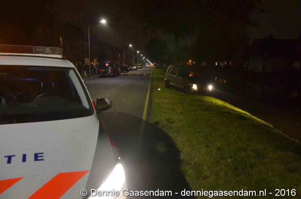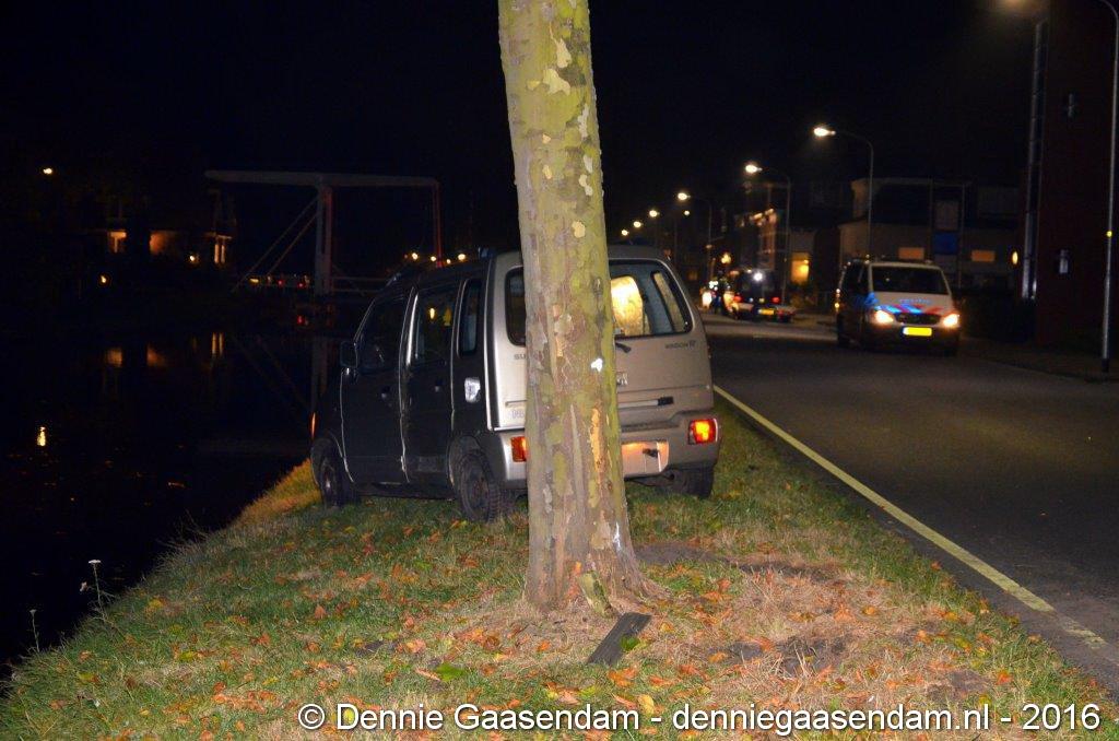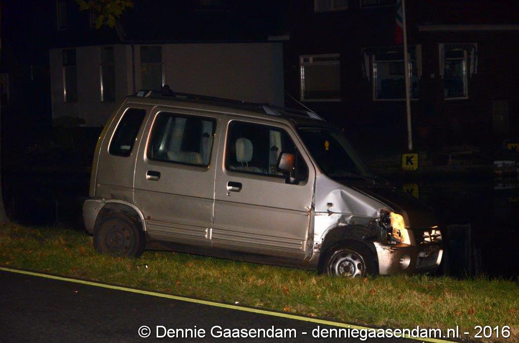 De auto kwam in de berm, raakte een boom en kwam vlak voor het Oosterdiep tot stilstand. Volgens getuigen ging de bestuurder van de auto er daarna vandoor. De politie bevestigt dat deze persoon even later meegenomen is naar het politiebureau. De Verkeers Ongevallen Analyse heeft ter plaatse een onderzoek ingesteld. De weg is enige tijd afgesloten geweest. De auto moest worden afgesleept. Niemand raakte gewond.