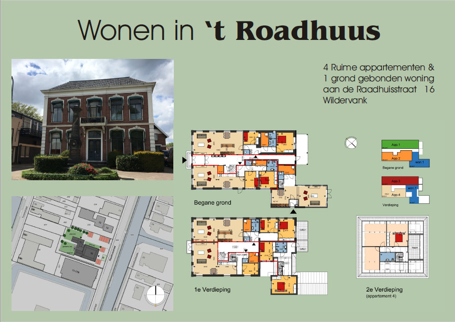 De gemeente heeft het monumentale pand verkocht aan ontwikkelaar Anno van der Meer. Er worden vier ruime appartementen en 1 grondgebonden woning in het pand gerealiseerd, zowel huur- als koopappartementen. Voor interesse in een appartement kan contact worden opgenomen met Ommeland Makelaardij.