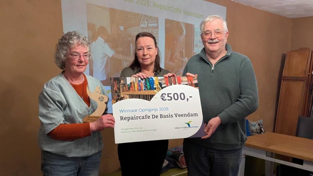 Het Repair Café Veendam heeft vorige week de Opnijprijs 2026 gewonnen, een Groningse prijs voor circulaire buurtinitiatieven. De prijs wordt jaarlijks uitgereikt door de Natuur en Milieufederatie Groningen aan projecten die zich op een bijzondere manier inzetten voor hergebruik, reparatie en duurzaamheid.