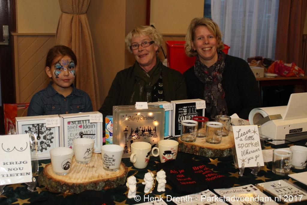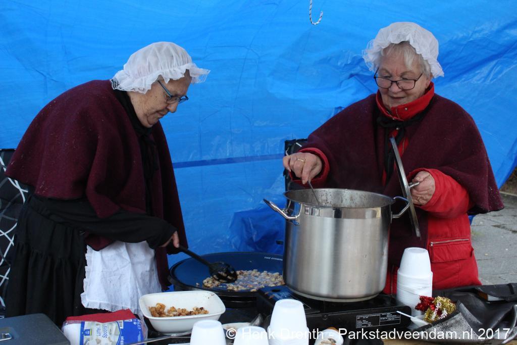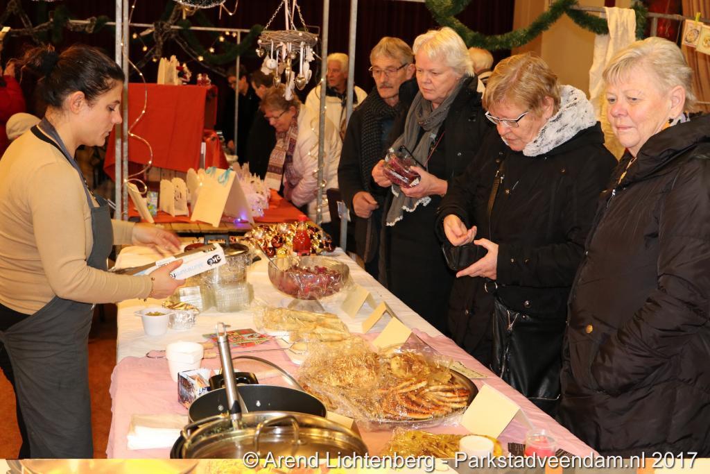 Bij 27 kraampjes was er een verscheidenheid aan waren te vinden met eigengemaakte lekkernijen, snuisterijen en bloem- en kerststukken. Ook hadden ondernemers van het winkelcentrum hun stands met waren geplaatst. De glühwein werd naast de chocolademelk geschonken. Erwtensoep en kapucijners met spek smaakte als vanouds goed. Kabab en pertuwe waren ook zelfgemaakt. Net als de kniepertjes en de spekdikken. Het was een lekker allegaartje.