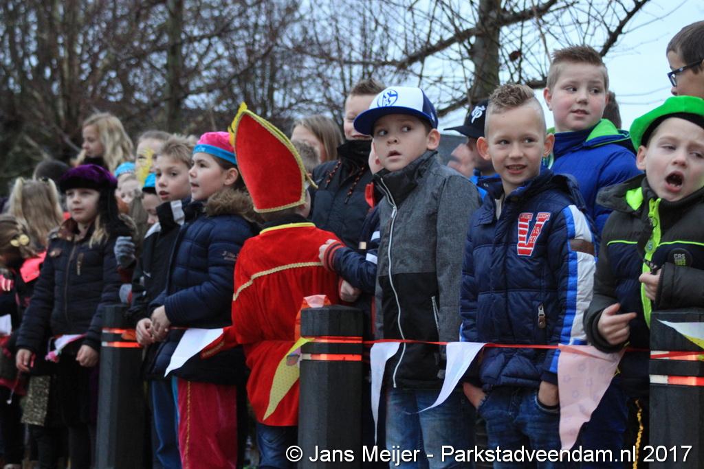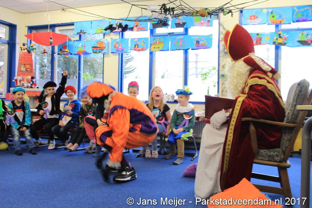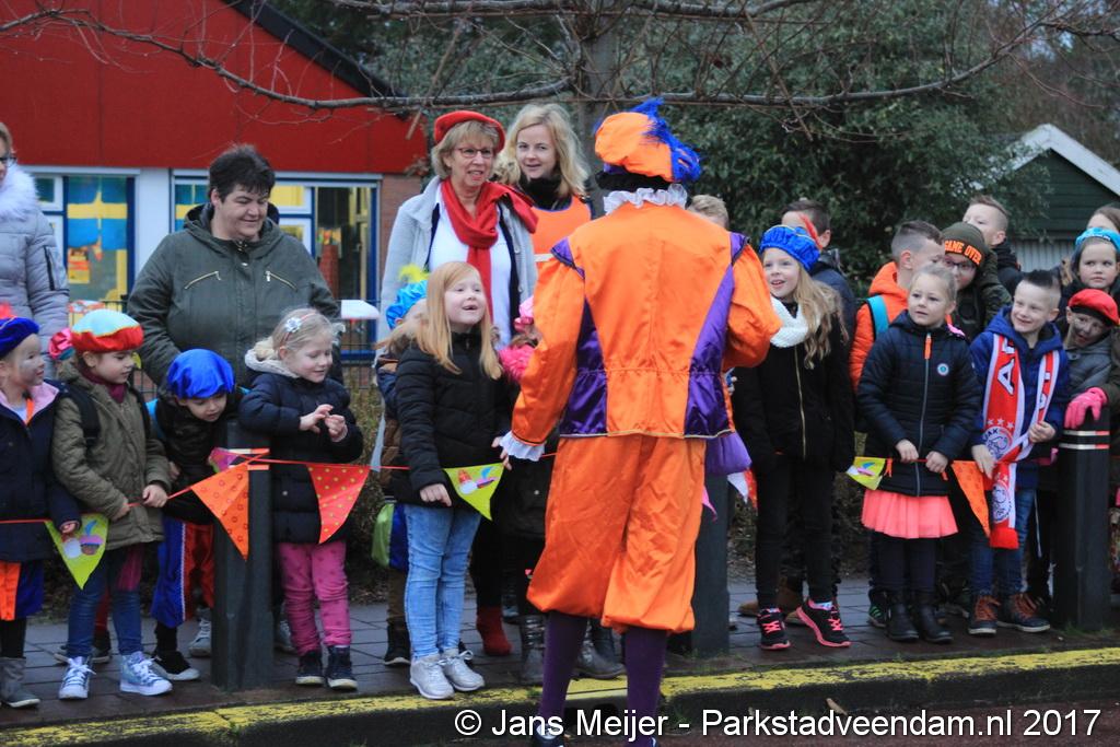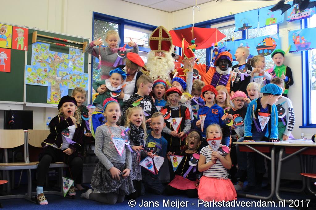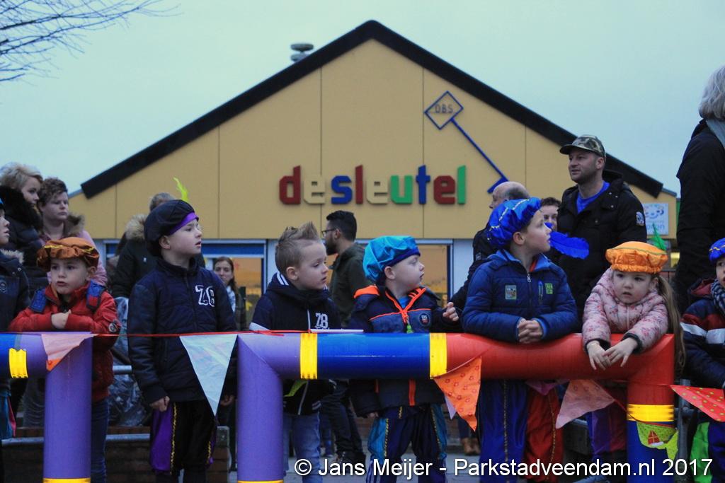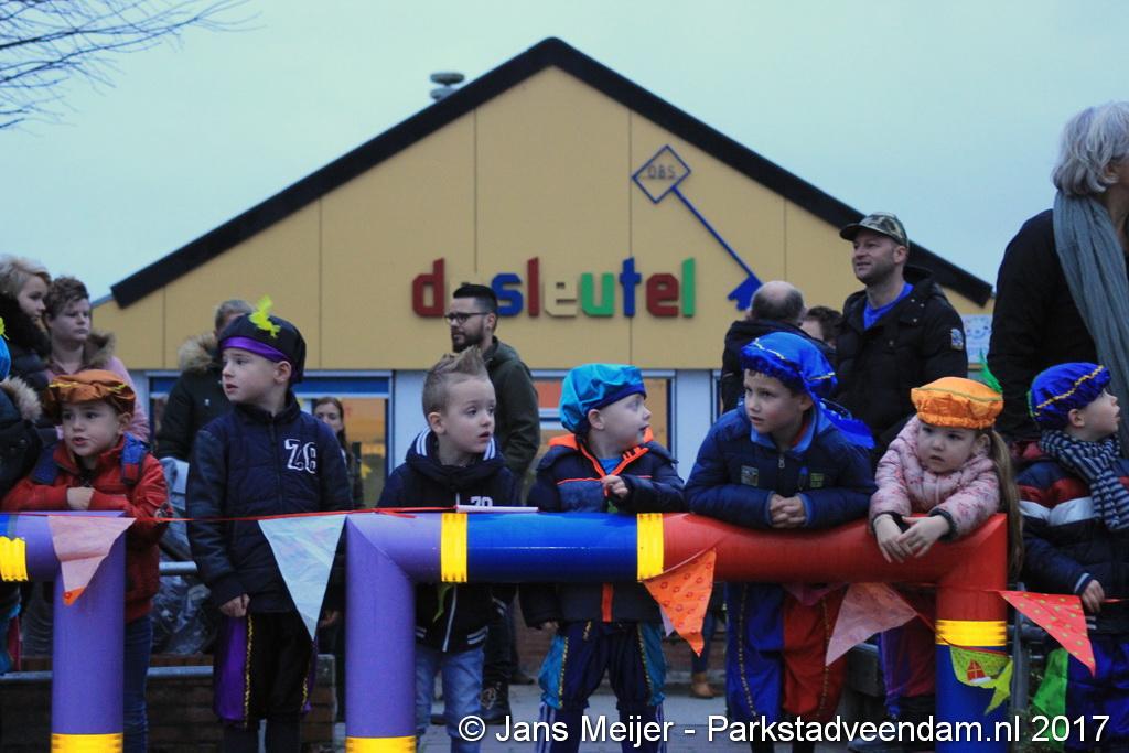 Niet op zijn paard Amerigo maar met de boot kwam Sinterklaas en zijn Zwarte Pieten naar De Sleutel voor zijn jaarlijkse bezoek aan de leerlingen die uit volle borst op het schoolplein Sinterklaas toezongen.