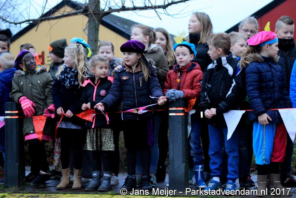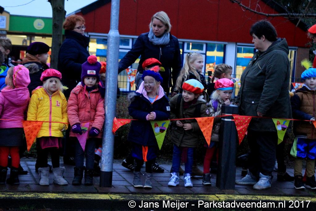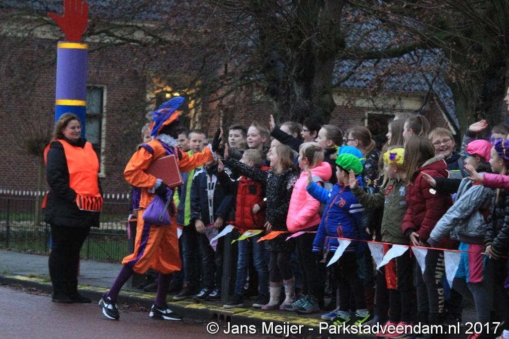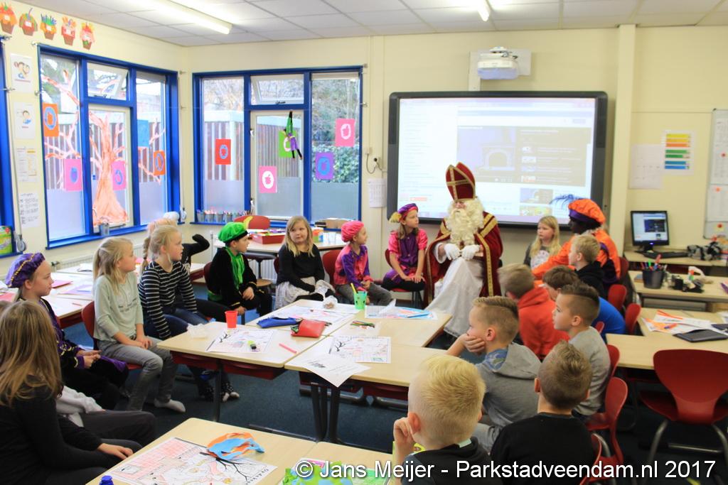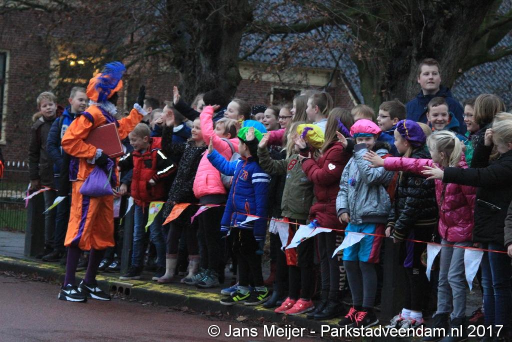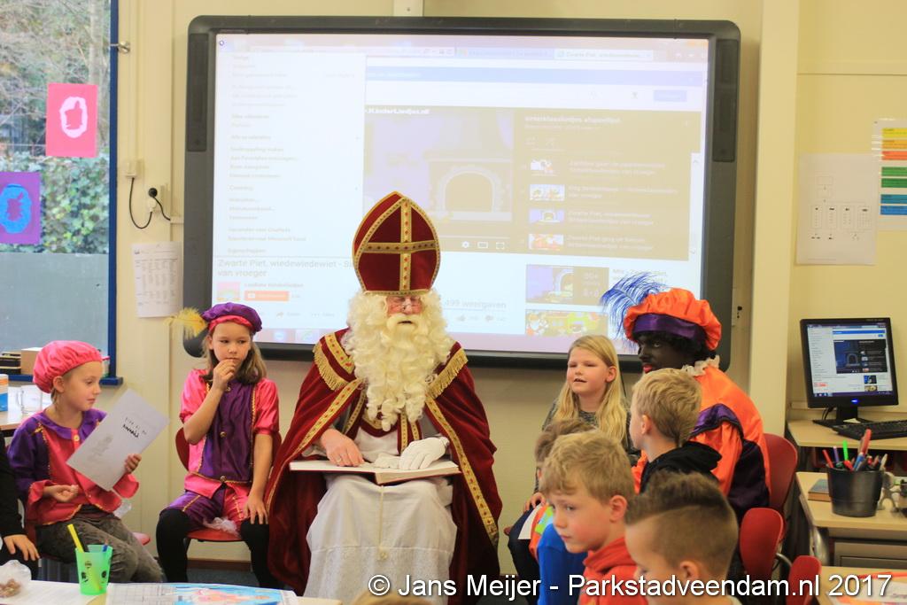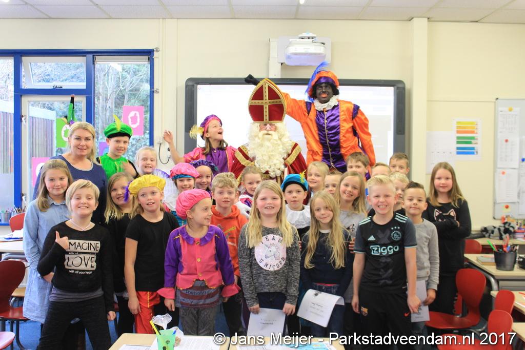 Niet op zijn paard Amerigo maar met de boot kwam Sinterklaas en zijn Zwarte Pieten naar De Sleutel voor zijn jaarlijkse bezoek aan de leerlingen die uit volle borst op het schoolplein Sinterklaas toezongen.