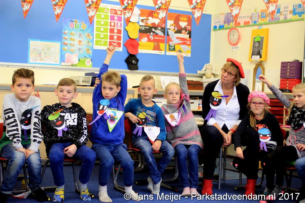 Na een welkomstwoord door de directeur ging hij alle klassen langs om met de kinderen zijn verjaardag te vieren. Het werd een groot spektakel zoals de foto´s van Jans Meijer laten zien.