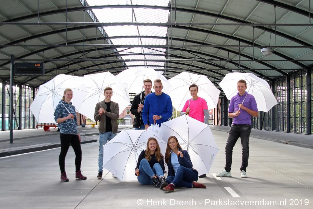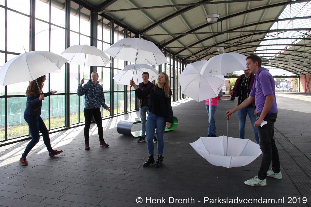 Het team met de studenten Bart, Rolf, Stefan, Isabelle, Femke, Sander, Christel en Andreas hadden op de melodie van ‘Het is een nacht’ van Guus Meeuwes een eigen tekst geschreven voor een flashmob op het busstation van Veendam. Het lied hebben ze zelf met gitaarbegeleiding op CD gezet en deze mocht over de stationspeakers klinken. Op de muziek werd voor de reizigers als onverwachte gebeurtenis een dans uitgevoerd.