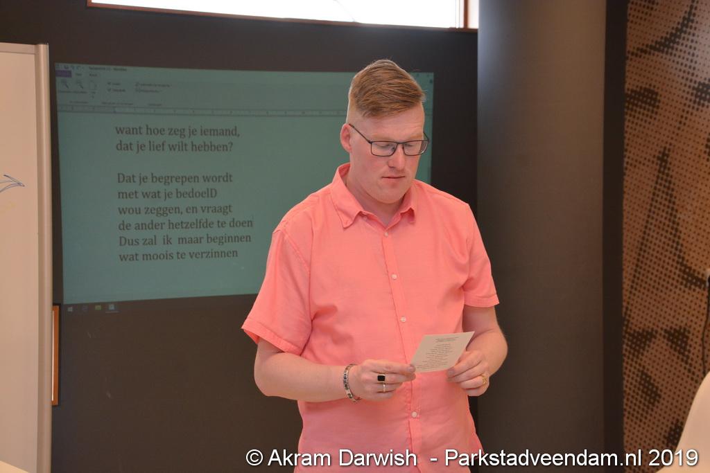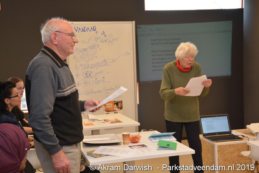 Dichters van Poëzie Noord (voortgekomen uit Poëzie Veendam) hebben gedichten voorgedragen. Het idee om in de week van de alfabetisering samen met Poëzie Noord iets met poëzie te doen was van de Bibliotheek. Zij waren gevraagd erbij te zijn om mensen door taal met elkaar te verbinden. Mensen van het Taalhuis hebben zelf ‘elfjes’ voorgedragen. Elfjes zijn gedichten van elf woorden.
