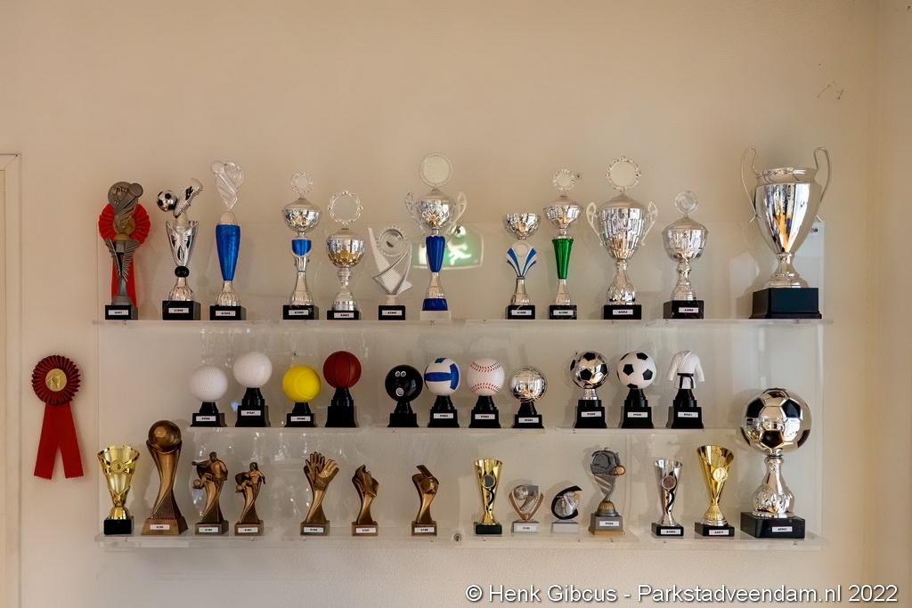 Sportprijzen als bekers, (glas)standaards, medailles, erelinten, wandborden, rozetten, sportbeelden in overvloed. Of het nou gaat om biljarten, golf, tennis, avond4daagse, viswedstrijd, een sporttoernooi, je kunt niet bedenken of er is wel een medaille, beker of erelint voor te vinden. De inscriptie en/of opdruk verzorgt EM Sporting|Bedrijfskleding allemaal zelf. Speciale machines staan hen ten dienste. “Het personaliseren van prijzen komt ook steeds meer voor,” vertelt Evelien met enige trots. “Wij kunnen daar uitstekend voor zorgen.”