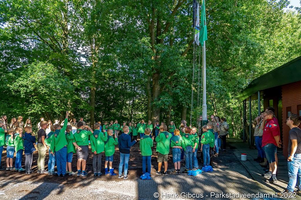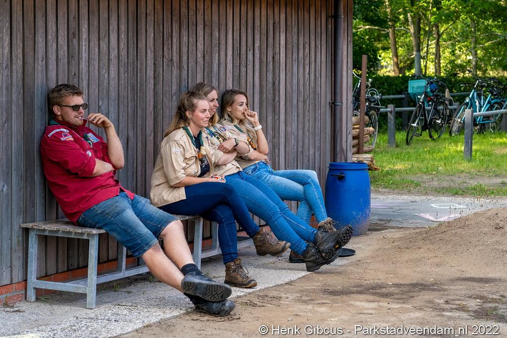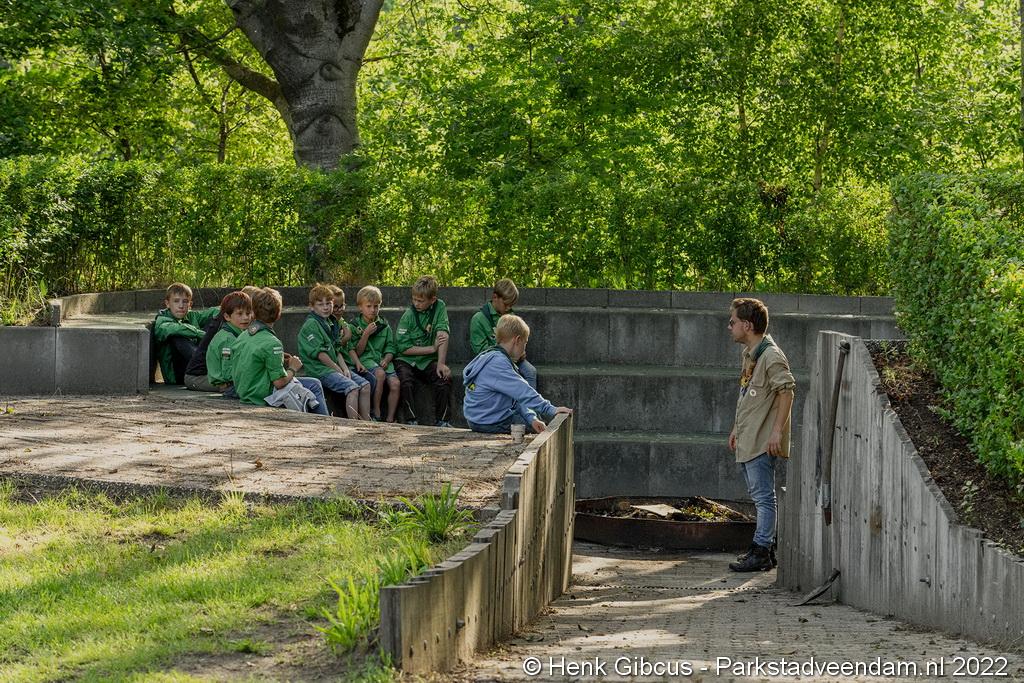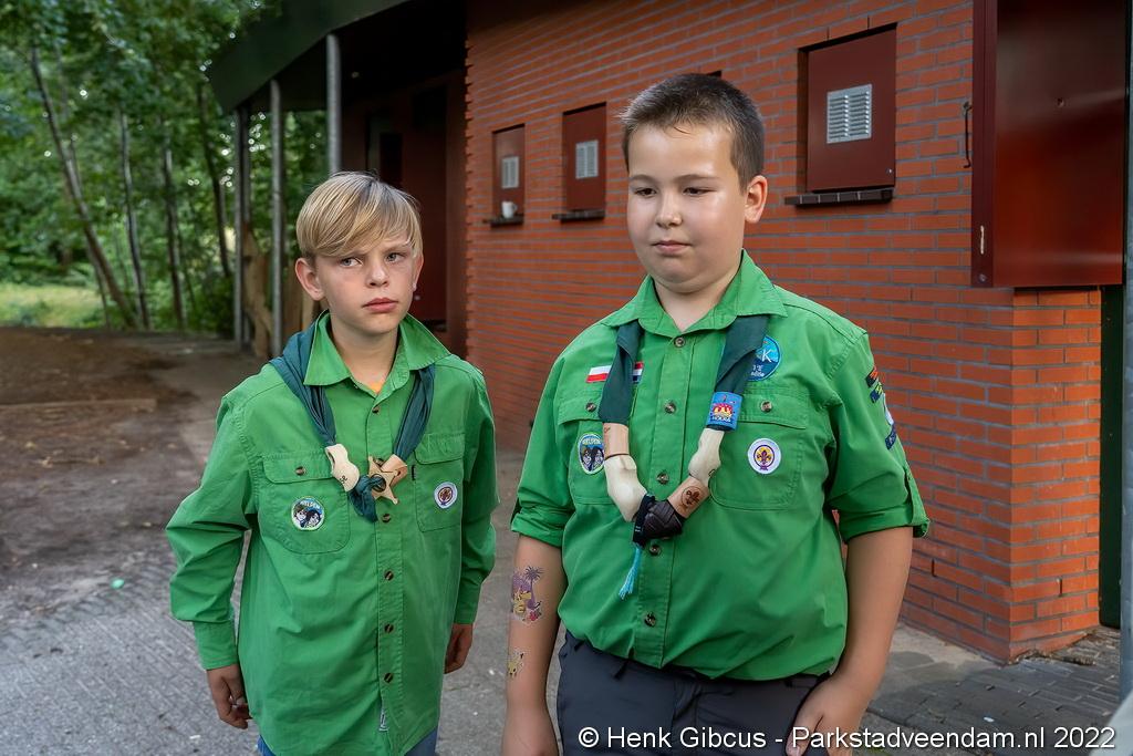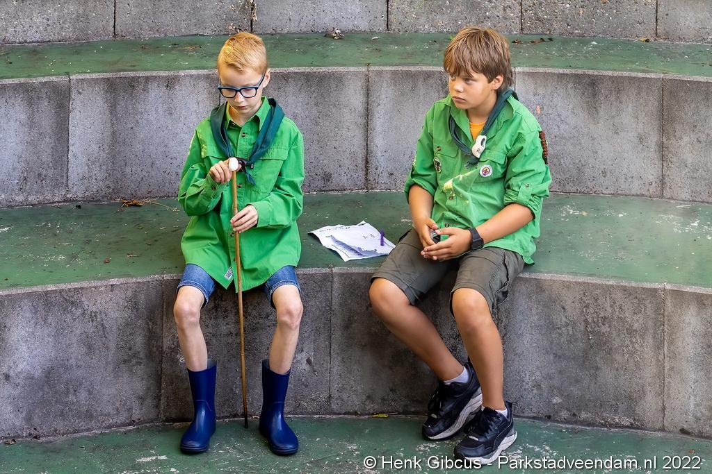 Lars, Harmen, Jesse en Alan hebben hun hike voltooid. Samen met de andere welpen van hun groep evalueren ze de tocht samen met hun begeleiders Reint, Xander en Lennard in de kampvuurkuil. Wat is goed gegaan en wat kon beter. De Marshmallows, die ze in het vuur mogen roosteren én opeten natuurlijk laten ze zich goed smaken. Wat resteert is het strijken van de vlag. Dit gaat net zo plechtig als het hijsen.