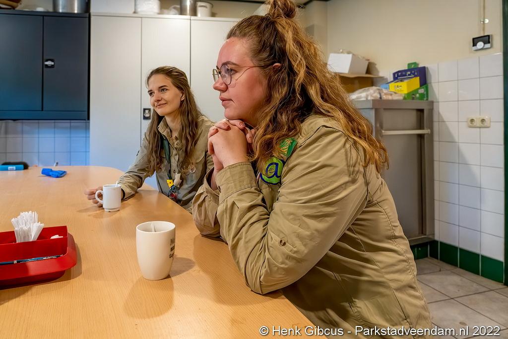 De scouts worden ingedeeld in verschillende kleinere afdelingen vertellen Anouck Heidema en Jessica Lamein, die namens het bestuur de communicatie verzorgen en met wie we in gesprek zijn. Het zijn: