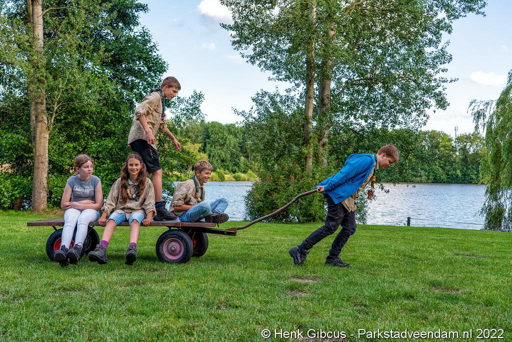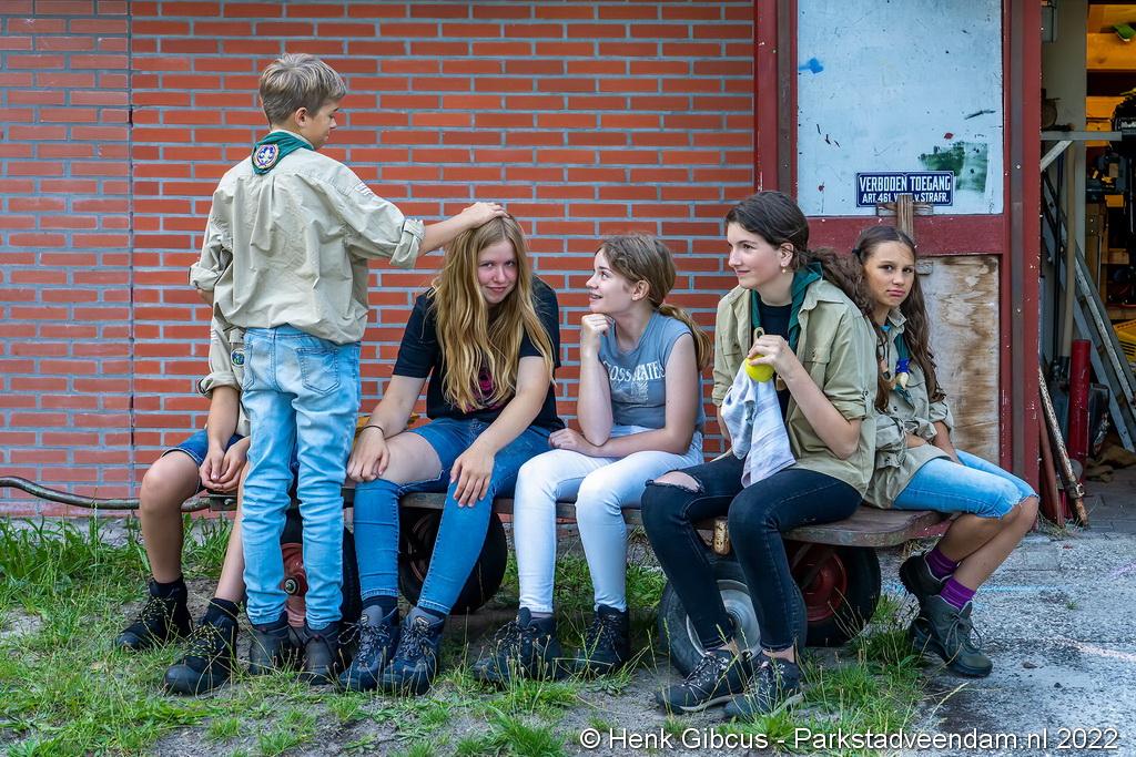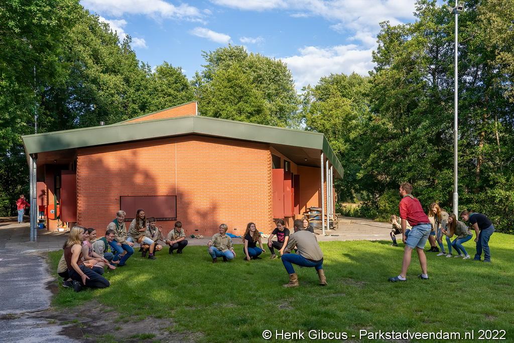 Borgerswold met hun eigen eiland en ’t Scouthuus is de plaats van handeling. Een uitermate geschikte locatie voor het buitenleven dat ze voorstaan. Jan Eerkes is al 75 jaar lid van de Scouting Veendam en nog altijd actief als barman zegt hierover: “Een goddelijk plekje!”