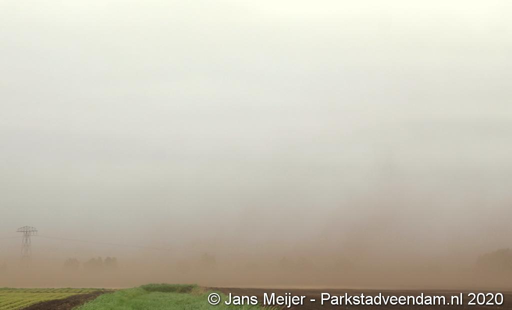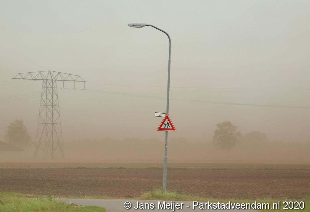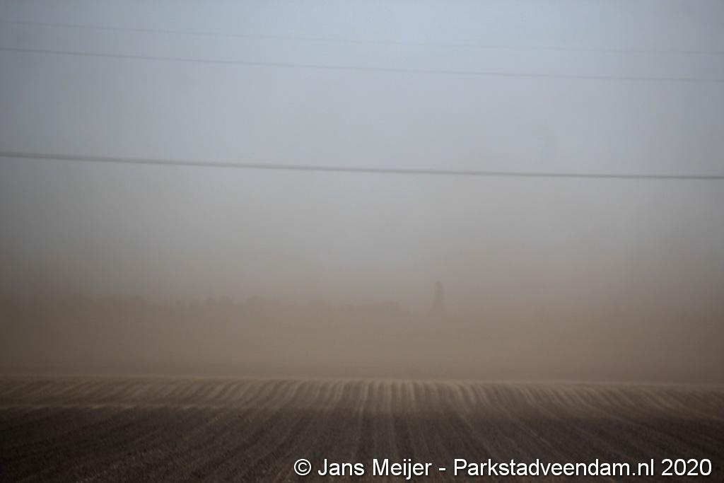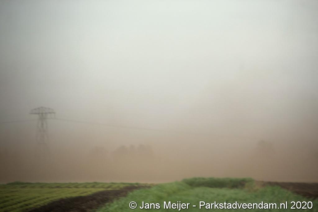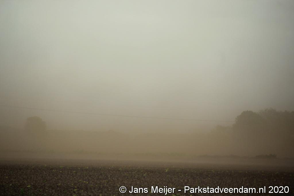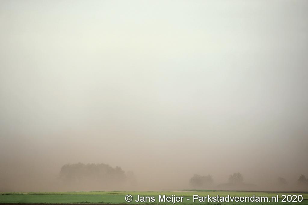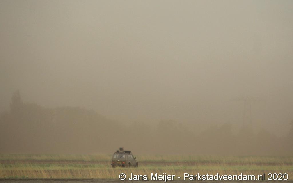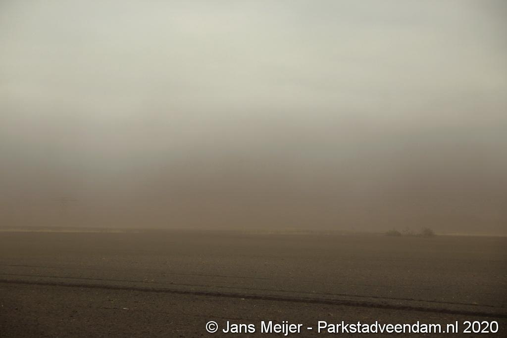 De zandwolken zorgden voor veel overlast zoals slecht zicht maar leverde ook mooi plaatjes op.
