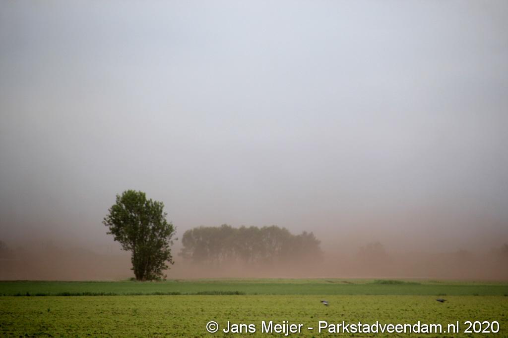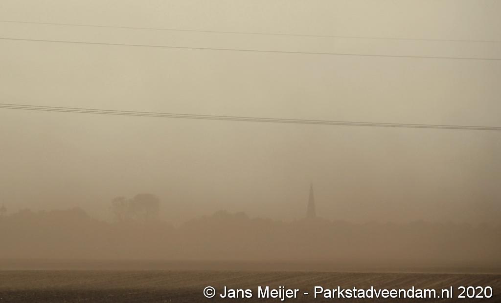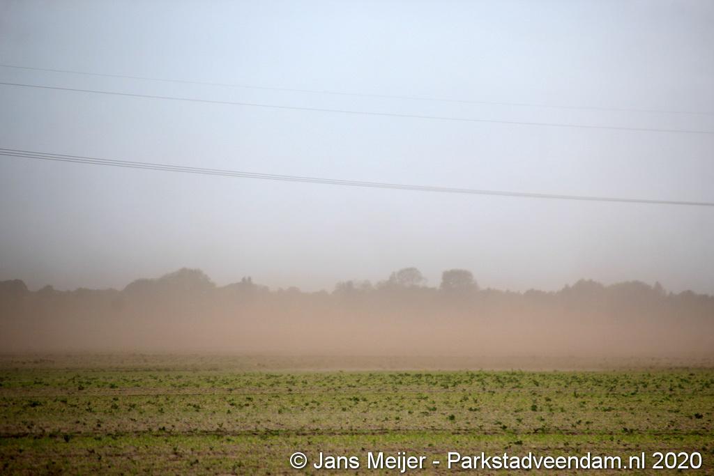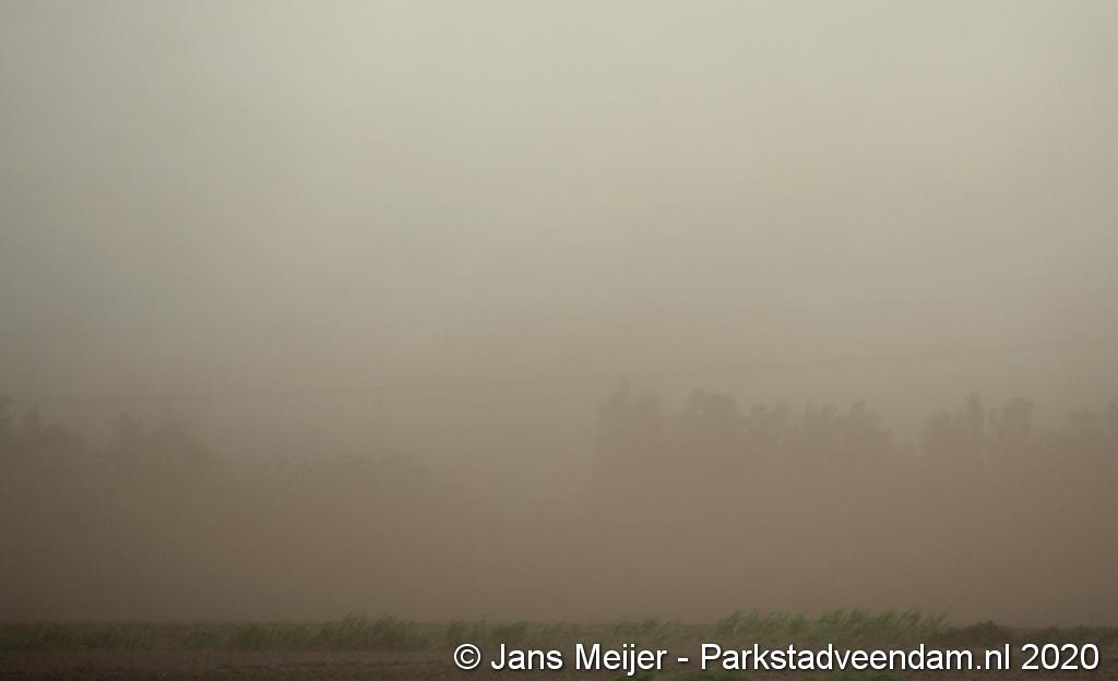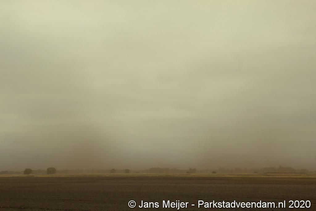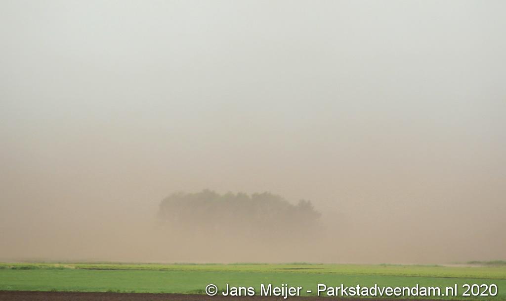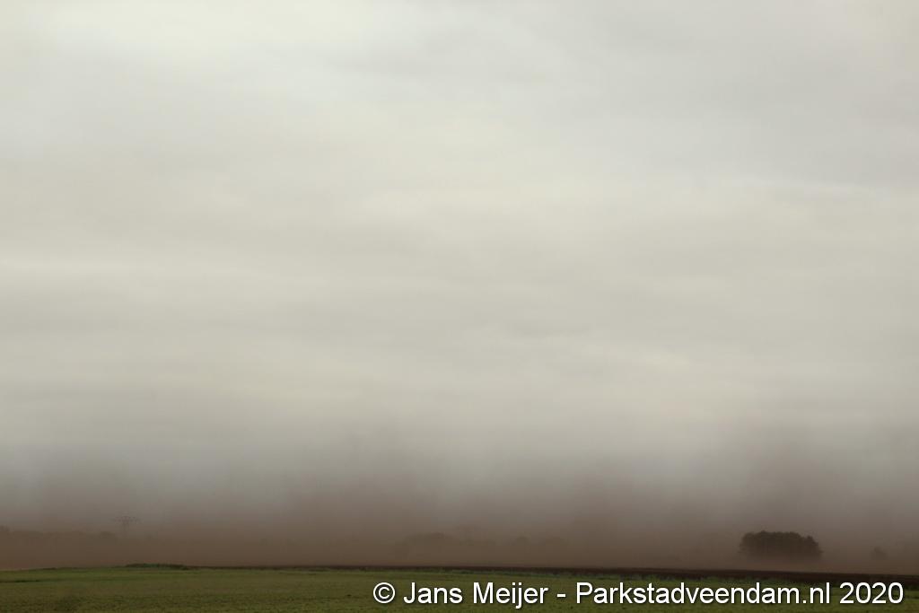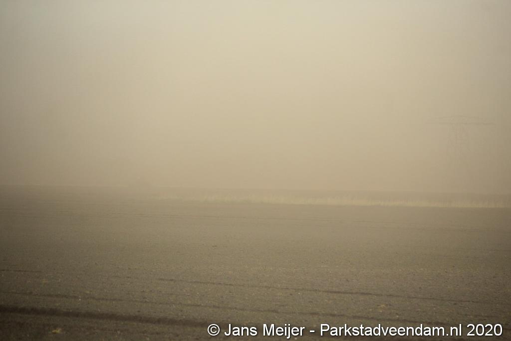 De zandwolken zorgden voor veel overlast zoals slecht zicht maar leverde ook mooi plaatjes op.