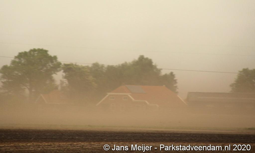 De harde wind zorgde zondag voor een zandstorm in Wildervanksterdallen.