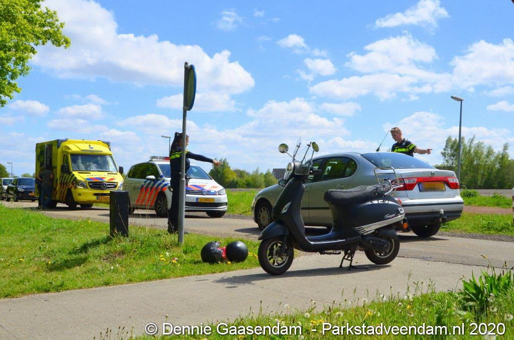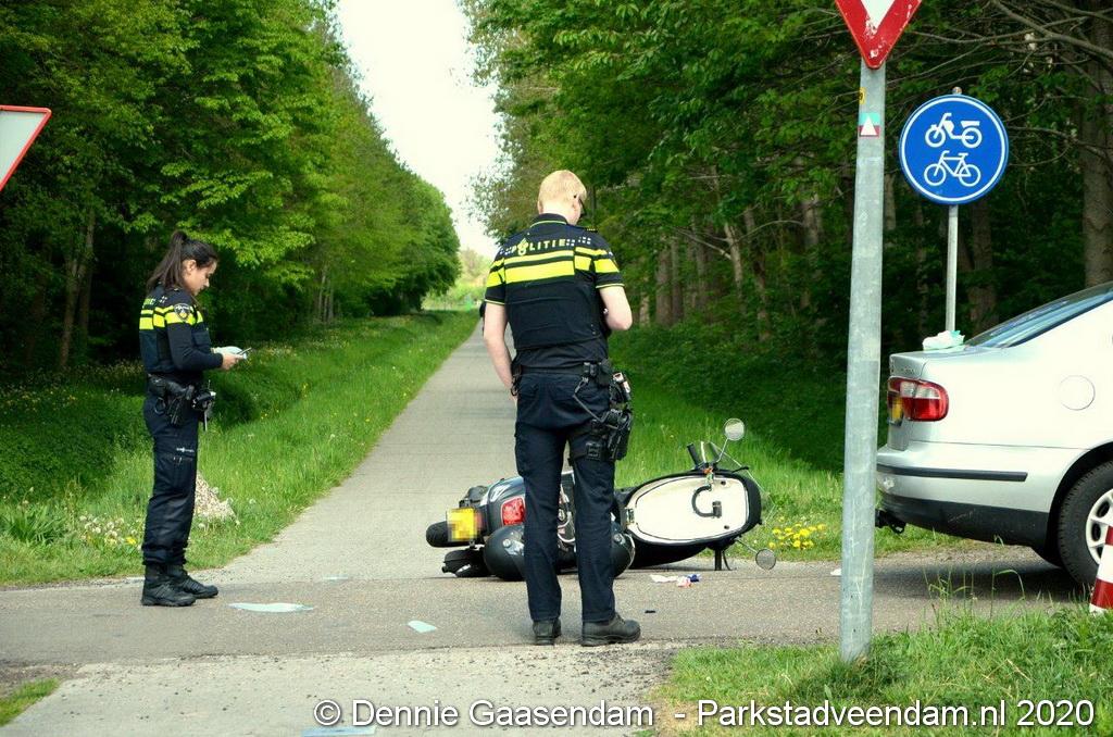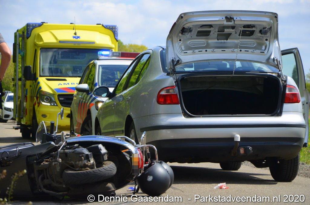 De vrouw werd door ambulancepersoneel onderzocht. Of vervoer naar het ziekenhuis noodzakelijk was is niet bekend. De politie noteerde de gegevens. Zowel de auto als de scooter raakten beschadigd. De auto moest worden afgesleept. De weg is enige tijd afgesloten geweest.