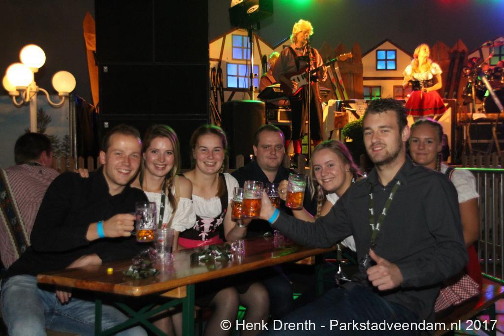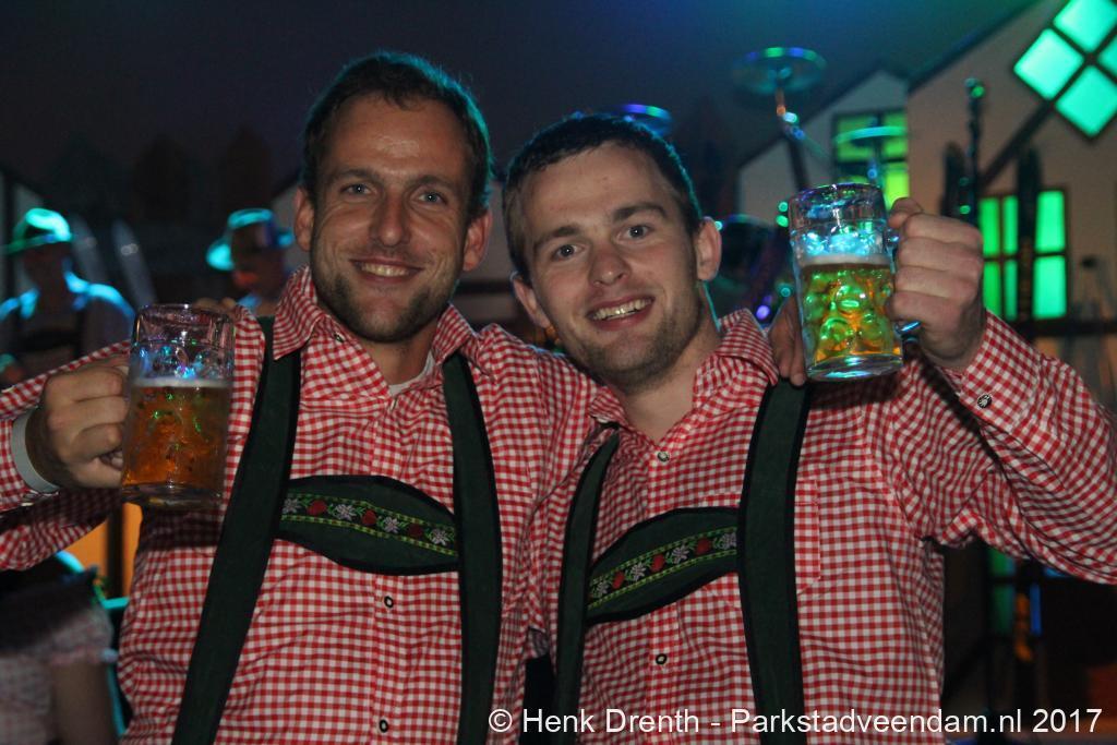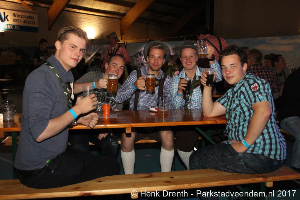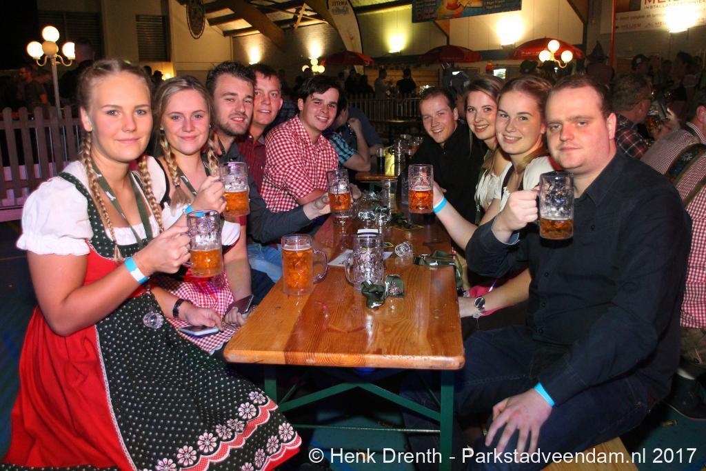 Een groep van 18 personen, bestaande uit vrienden, vriendinnen en collega’s van verschillende bedrijven en instellingen, had een van de lange biertafels gereserveerd. En allen Tiroler gekleed. Sommigen kennen elkaar nog van school, en anderen van Veendam 1884. “Een bij elkaar geraapt zootje”, aldus de ludieke omschrijving. Ook een Duitse vriend, Claus, was meegekomen. En hij had zijn zoon bij zich. “Het is beregezellig. Echt super”. Ze gaan naar meer leuke dingen toe, zoals carnaval vieren.